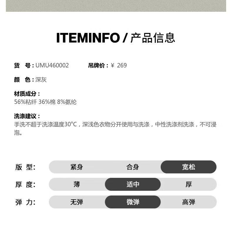 UR【Urban都市系列】2026春季新款男立领半开襟T恤UMU460002 深灰 XS