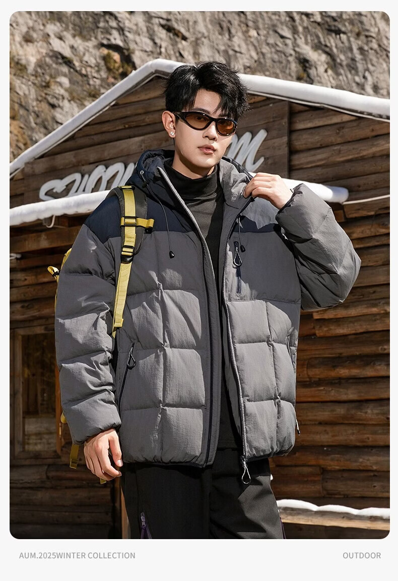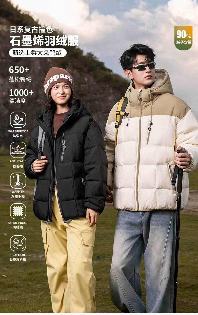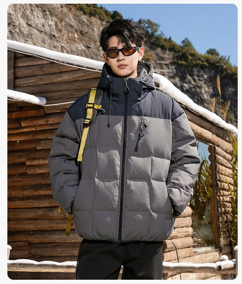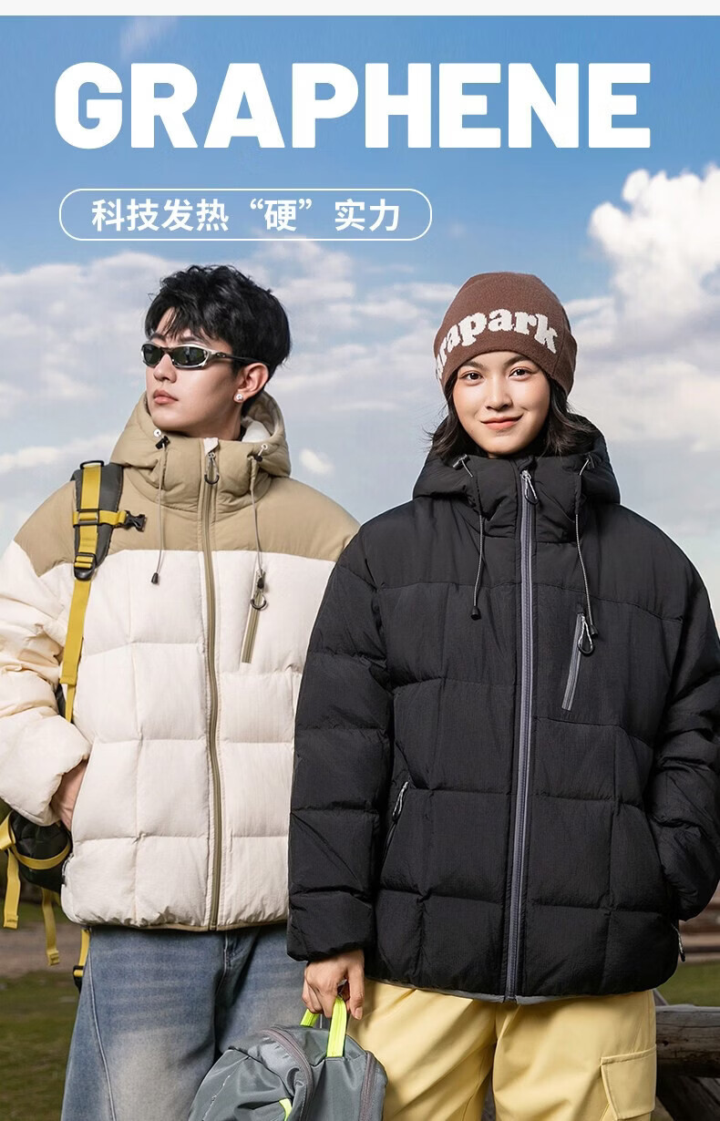 Snow Flying (SNOWFLYING) графеновый пуховик контрастного цвета для мужчин и женщин зимой, новая свободная теплая мужская куртка с утолщенным капюшоном, зимняя космическая серая - трехзащитная технология M одинаковый стиль для мужчин и женщин, рекомендуется 105-130 Цзинь Цзинь равен 0,5 кг