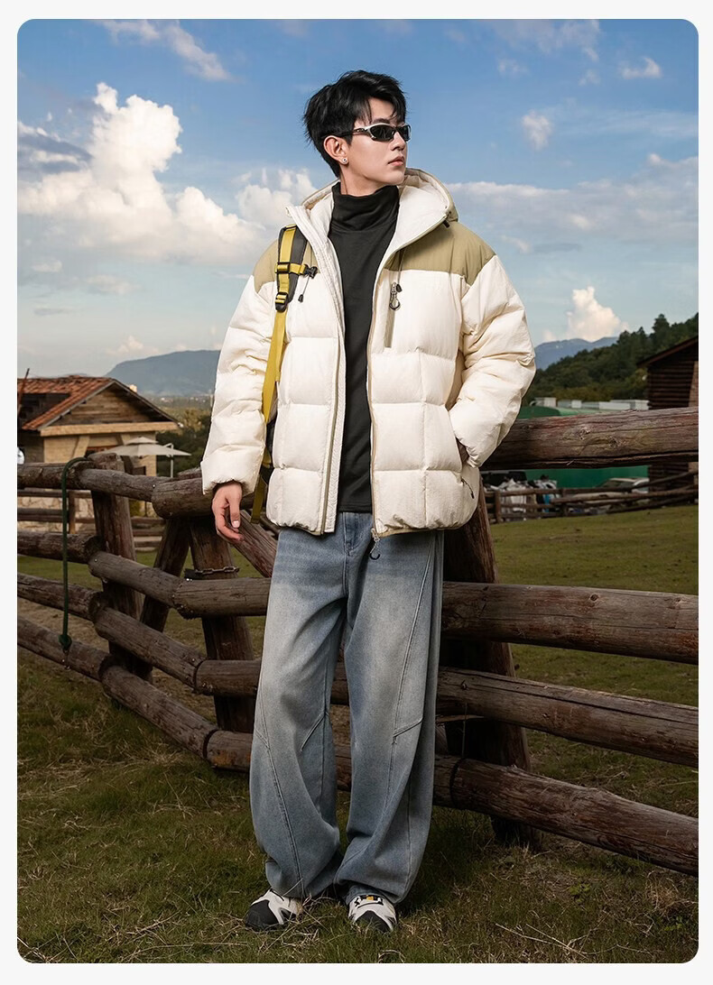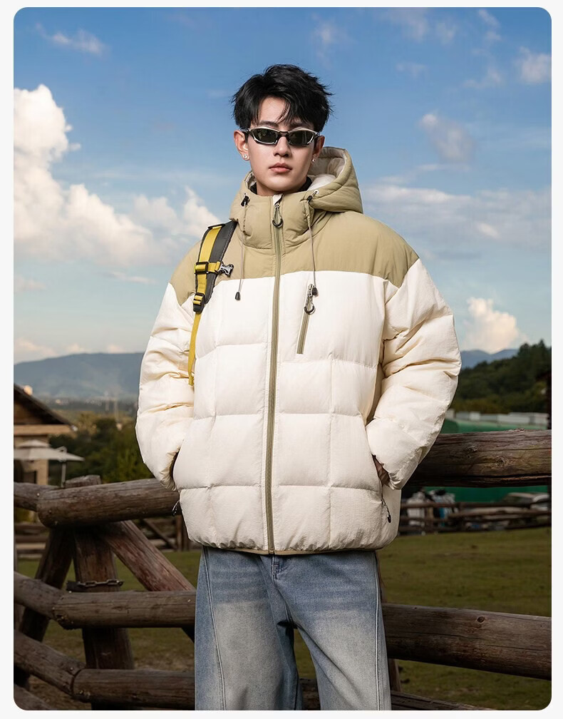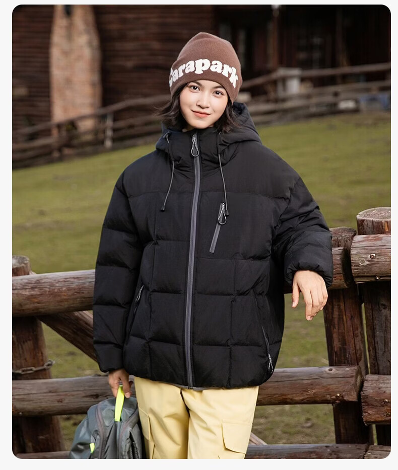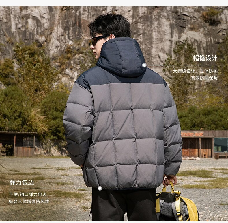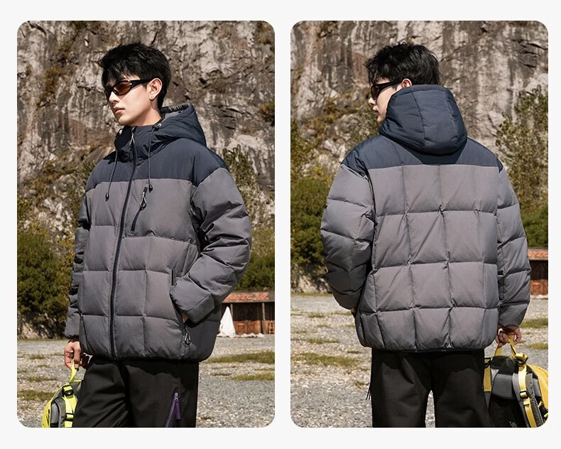 Snow Flying (SNOWFLYING) графеновый пуховик контрастного цвета для мужчин и женщин зимой, новая свободная теплая мужская куртка с утолщенным капюшоном, зимняя космическая серая - трехзащитная технология M одинаковый стиль для мужчин и женщин, рекомендуется 105-130 Цзинь Цзинь равен 0,5 кг