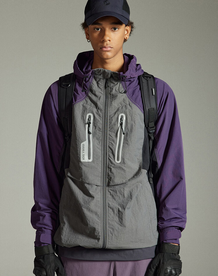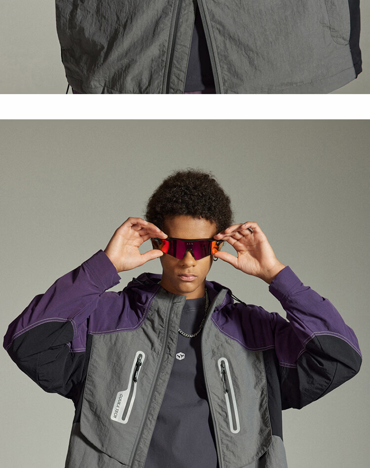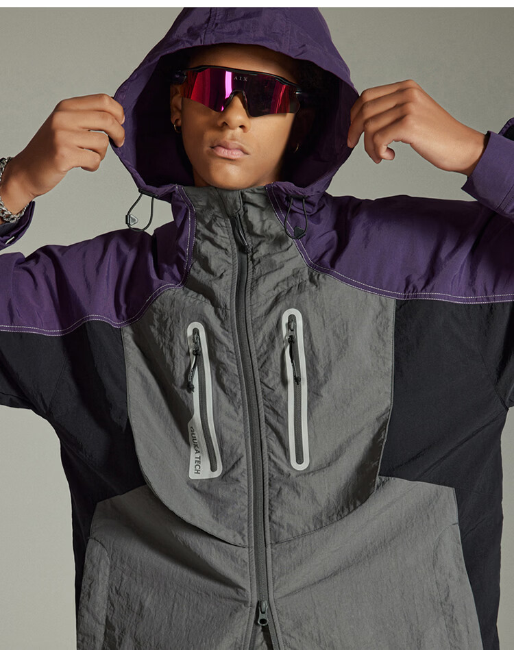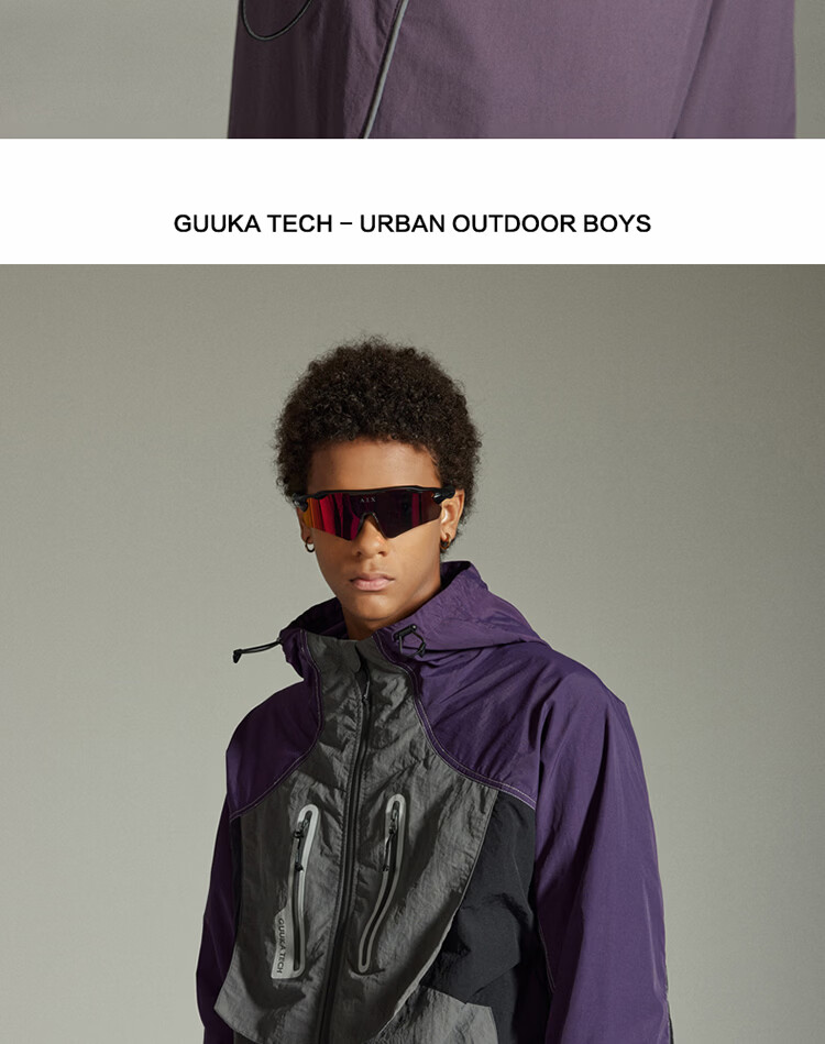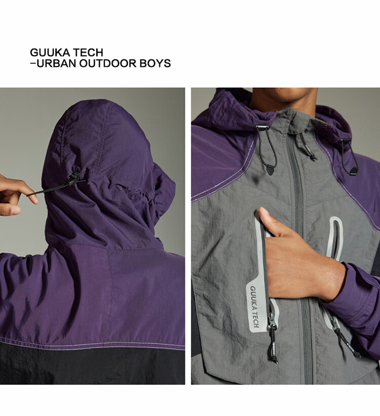 GUKA уличная быстросохнущая дышащая ветровка мужская новая весенняя стильная ретро контрастная цветовая гамма с капюшоном походная рабочая куртка универсальная фиолетовая M