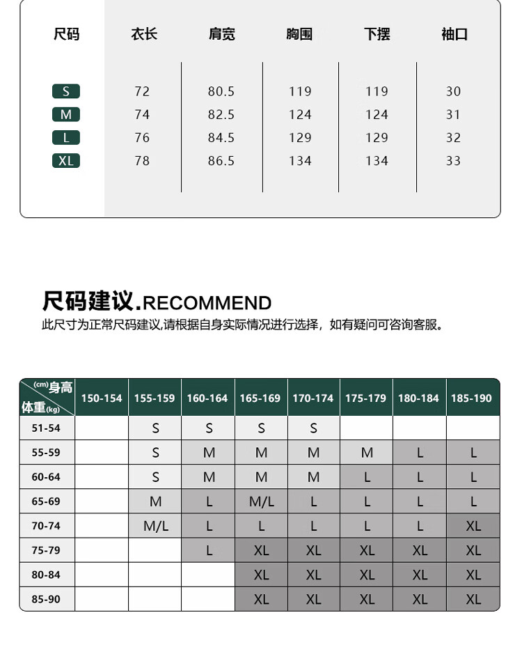 China (cm) 165 / 88-90 170 / 96-98 175 / 108-110 180 / 118-122 185 / 126-130