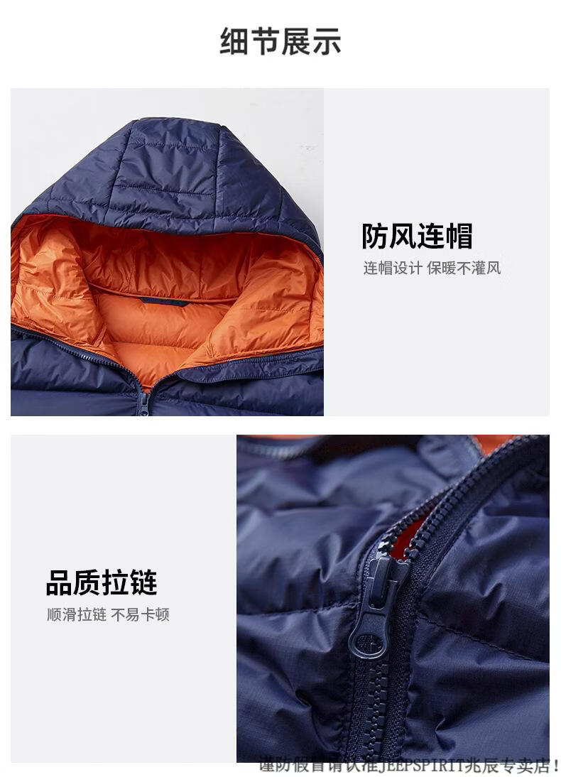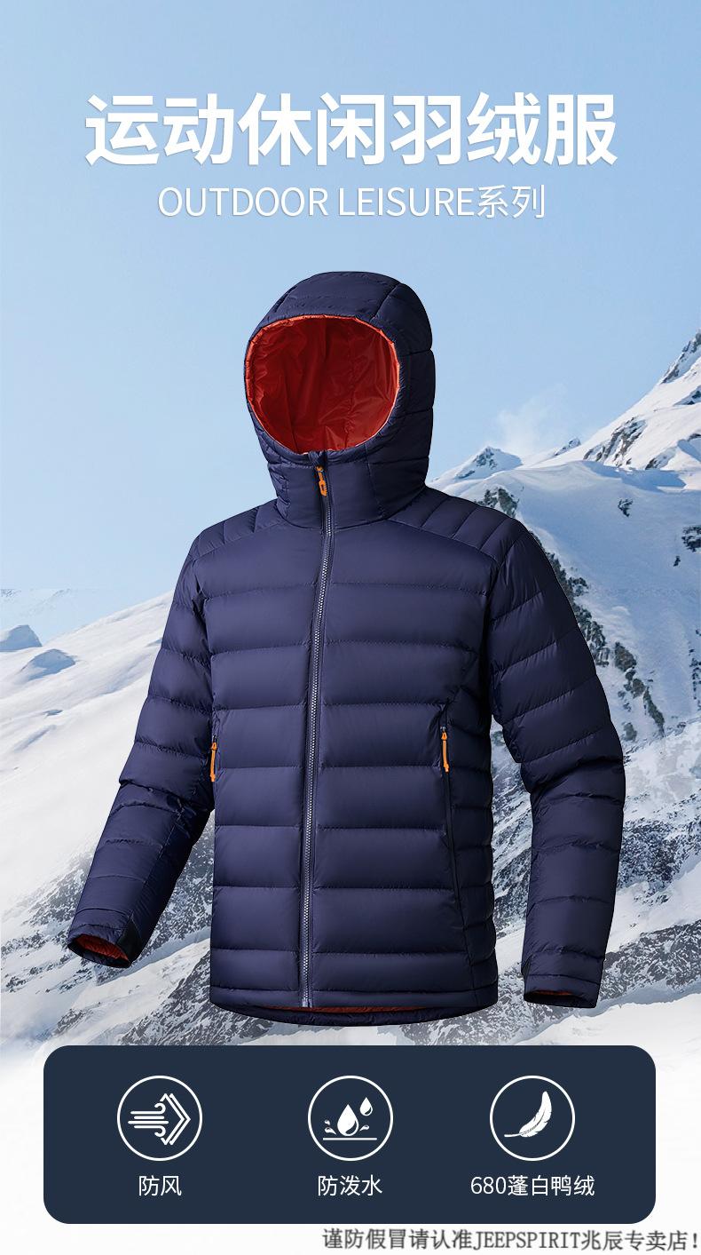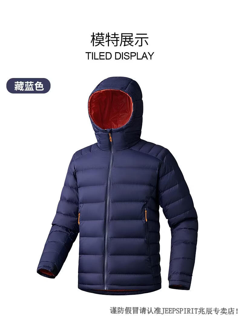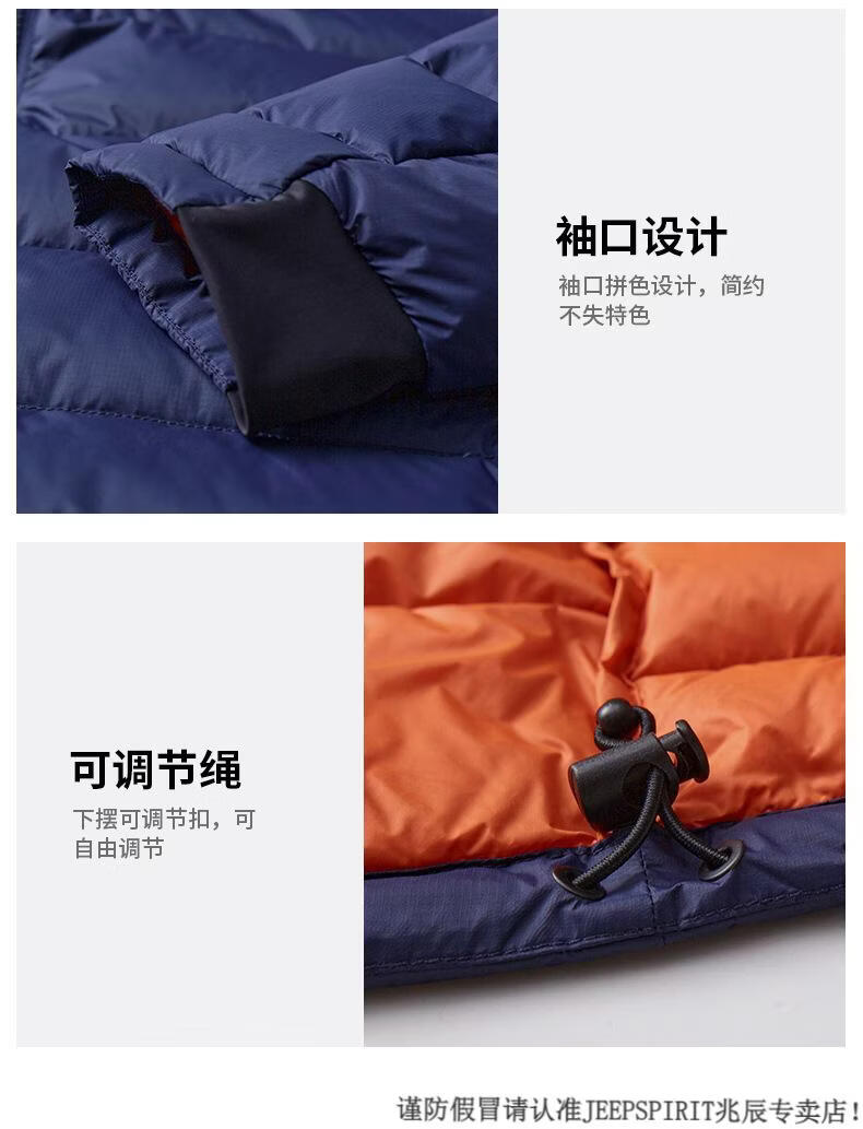 JEEP SPIRIT新款轻薄羽绒服男冬季户外连帽保暖90白鸭绒羽绒外套 藏蓝色 S
