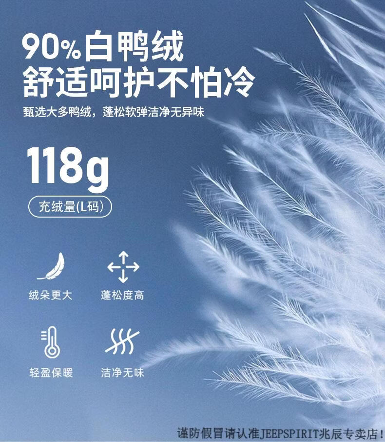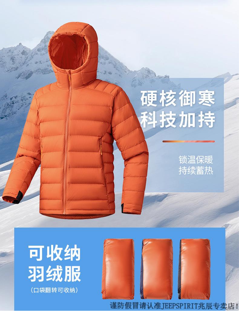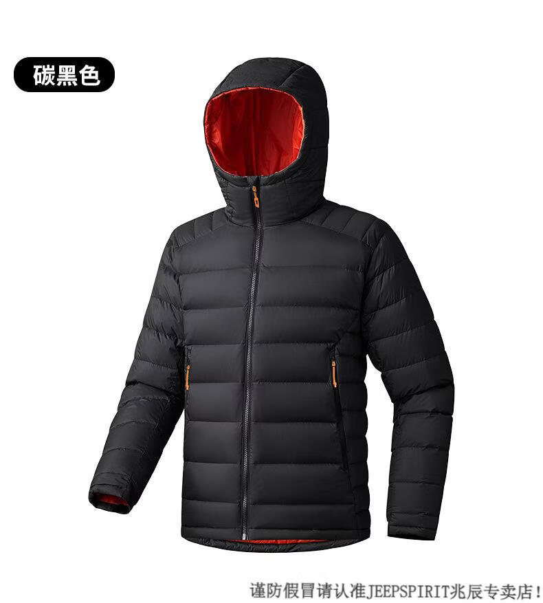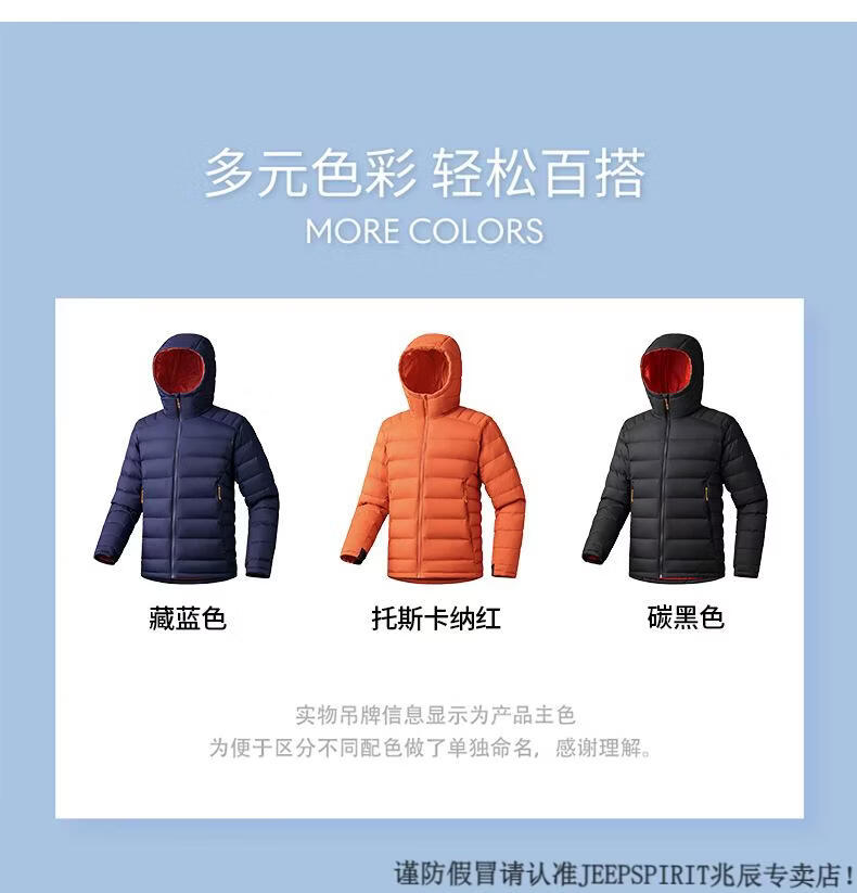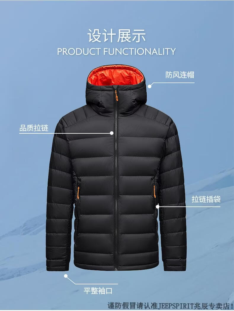 JEEP SPIRIT新款轻薄羽绒服男冬季户外连帽保暖90白鸭绒羽绒外套 藏蓝色 S