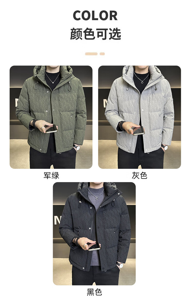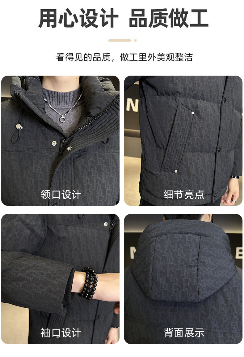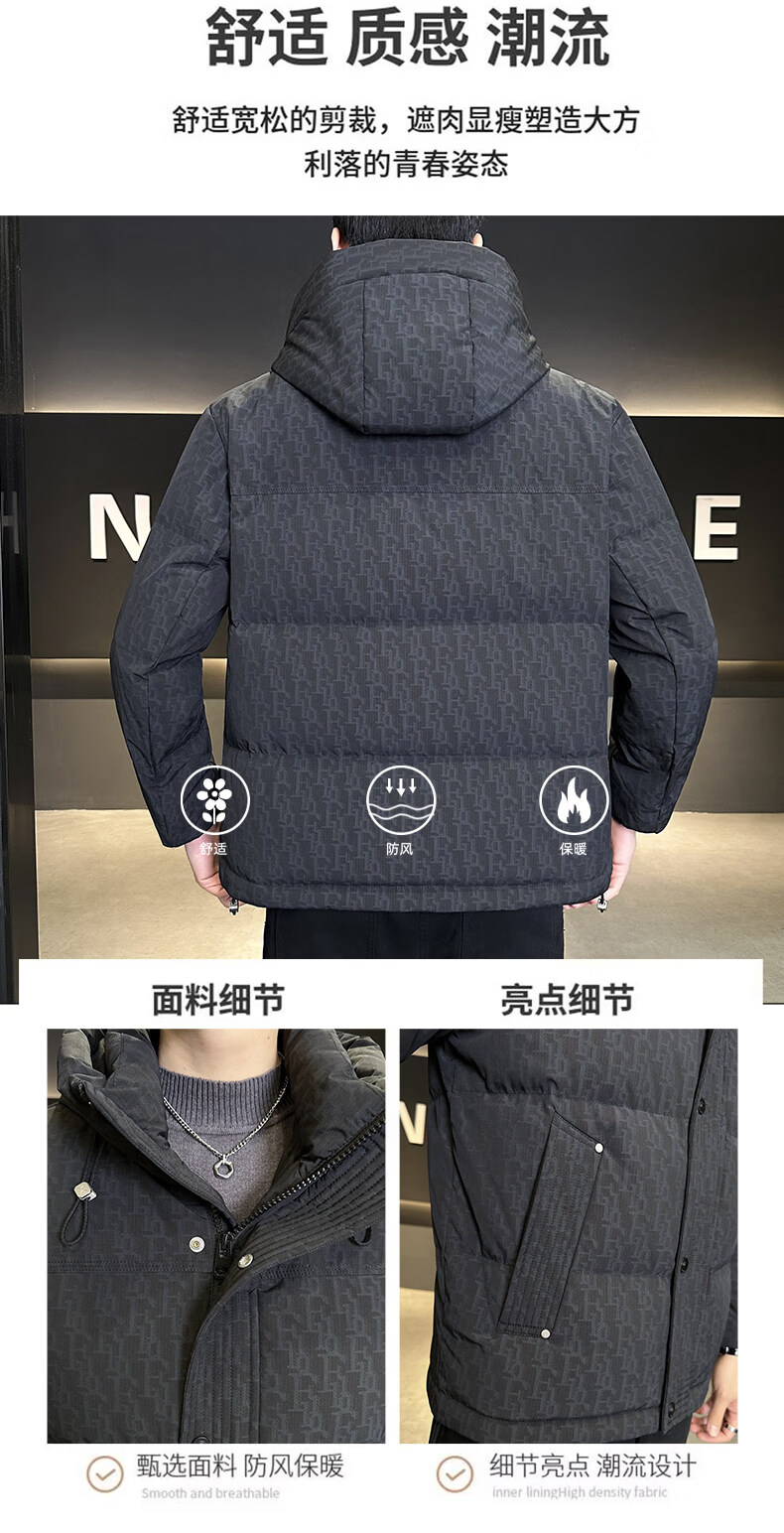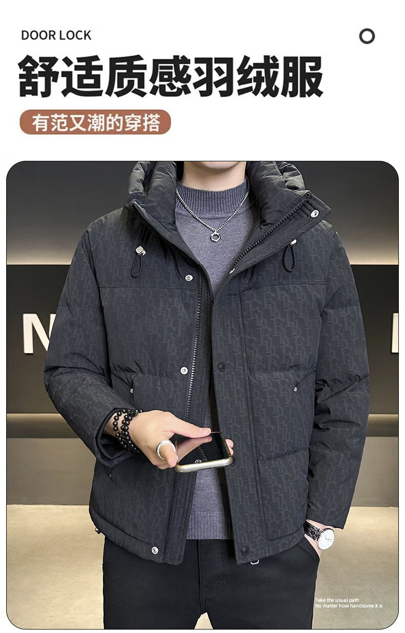 Мужской пуховик ROMON, зима 2025, новый, с капюшоном 90, белая подкладка на утином пуху, одежда для холодной погоды, тонкая утолщенная куртка черного цвета, M 100-120Jin Jin весит около 0,5 кг.