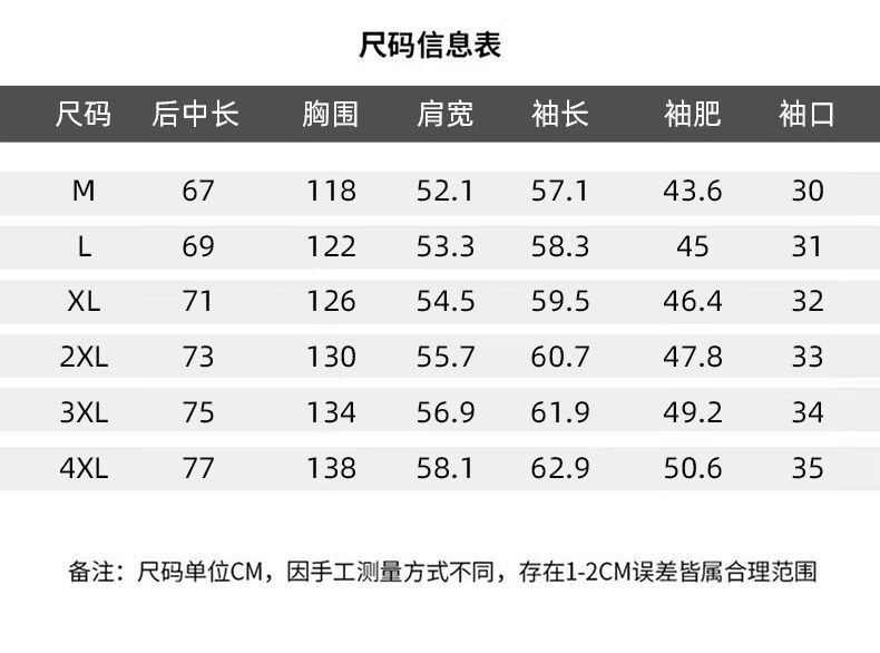 Size (cm) 42 44 46 48 50