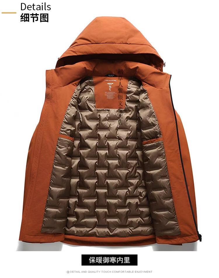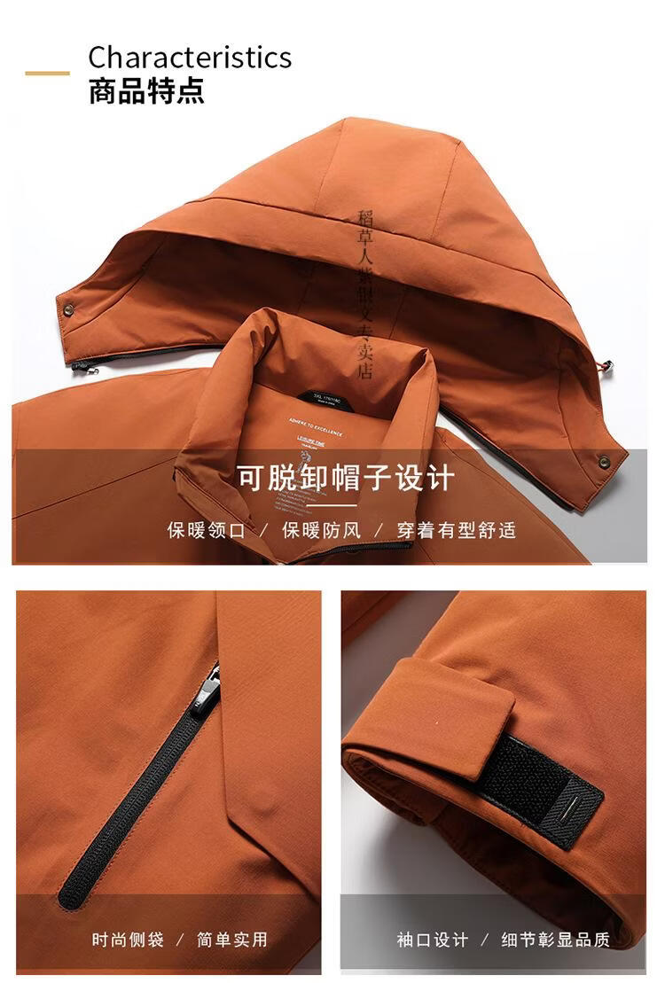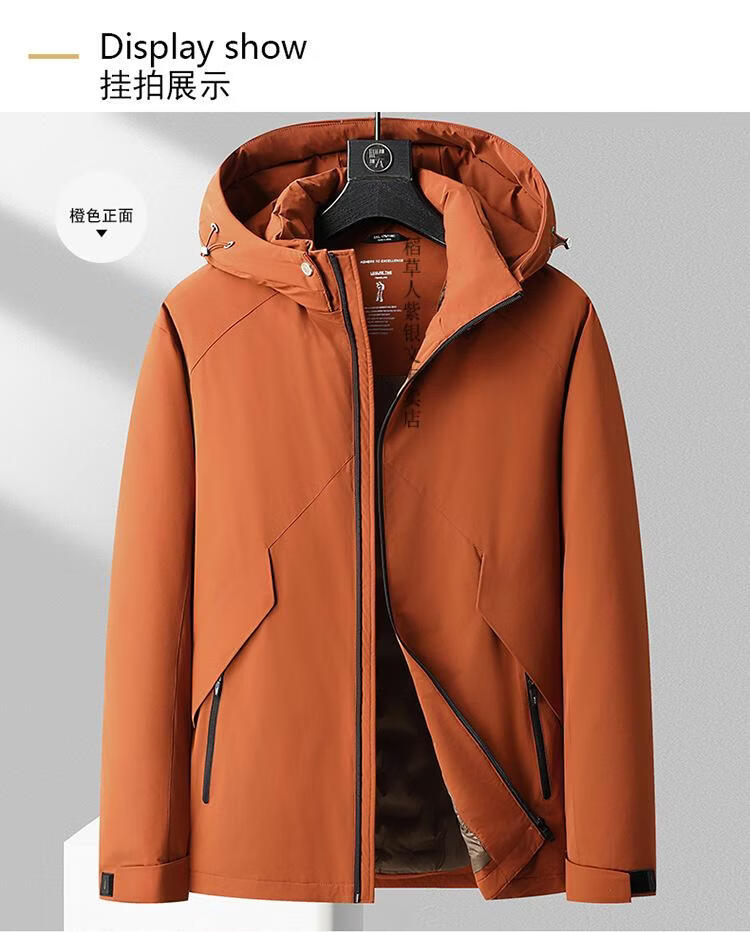 稻草人胖子哥2025年冬季新款男士加肥加大连帽羽绒服加厚外套保暖羽绒服 橙色 4XL