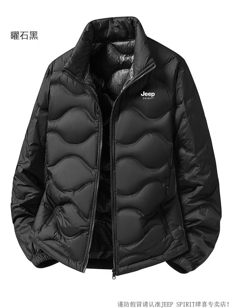 JEEP SPIRIT轻薄羽绒服男2025新款冬季防风立领加厚保暖内胆90白鸭绒外套 25188-曜石黑【90%白鸭绒】 S