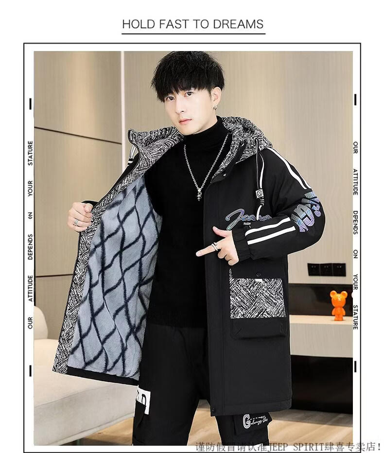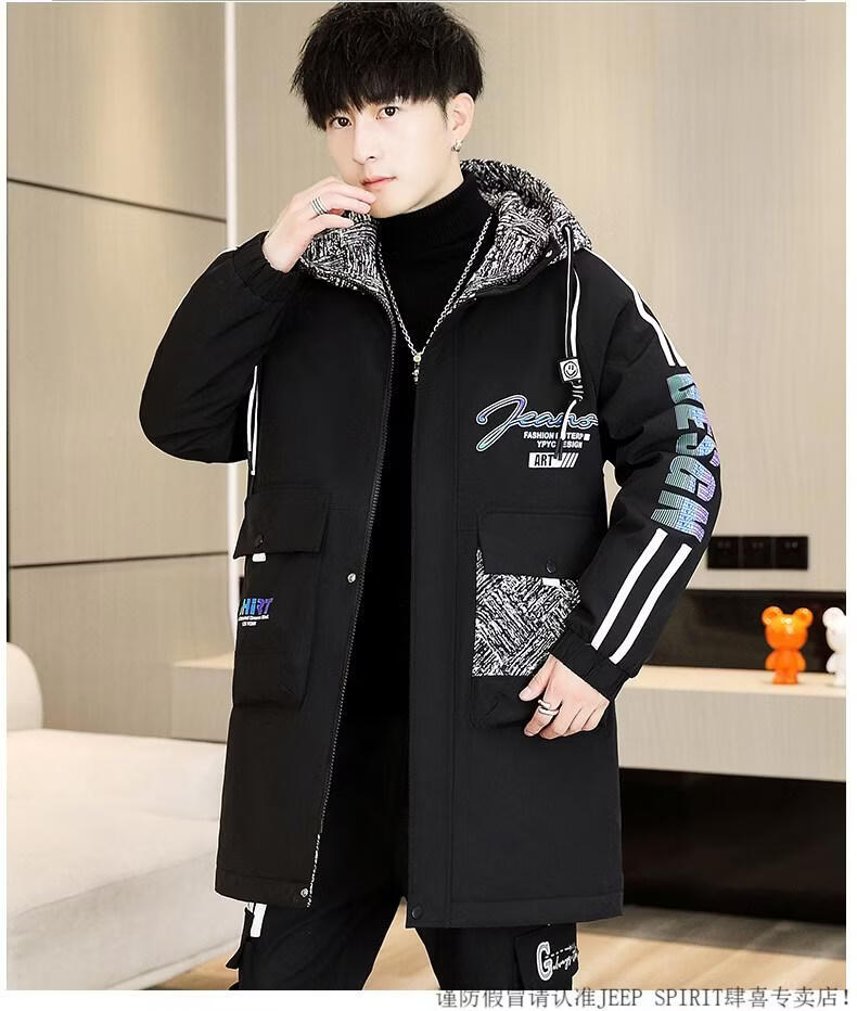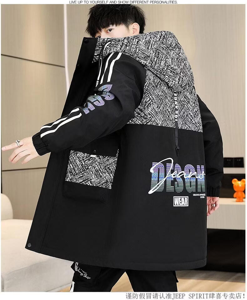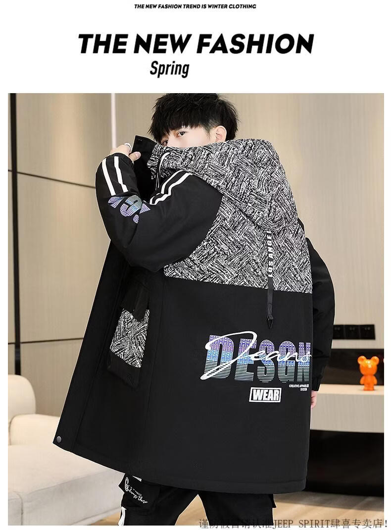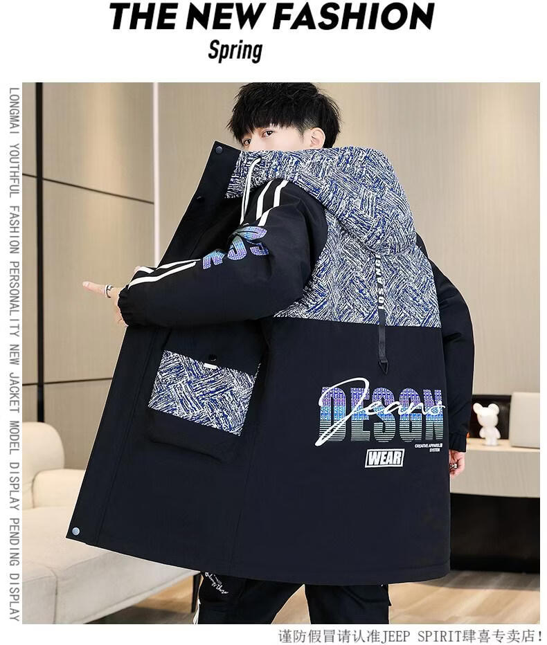 JEEP SPIRIT2025冬季新款加绒外套男中长款风衣帅气男装休闲棉衣派克服 88612S黑灰色【品质保证】 M 105斤以下