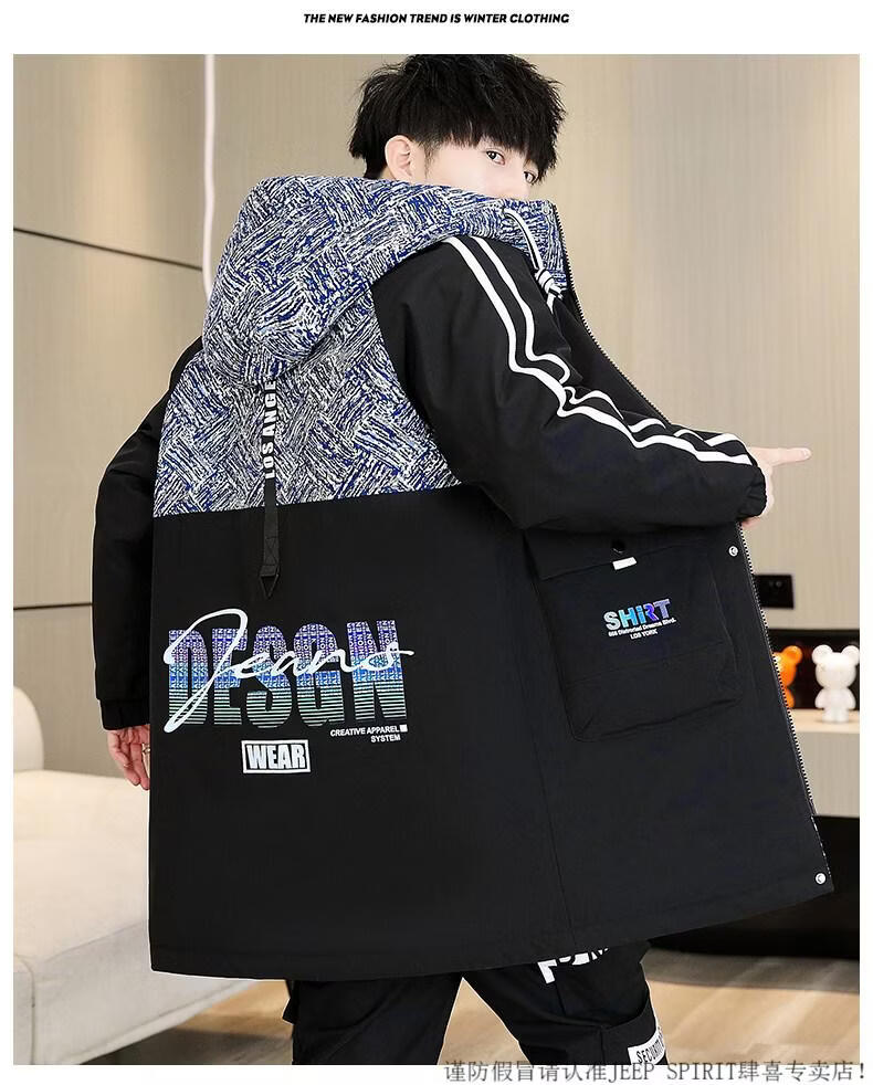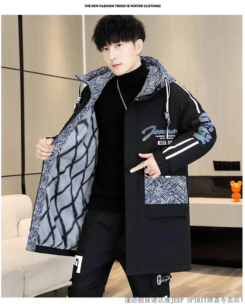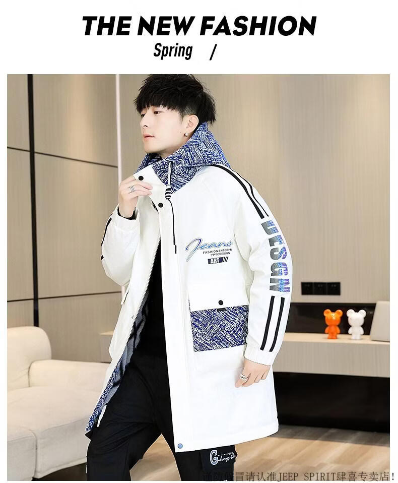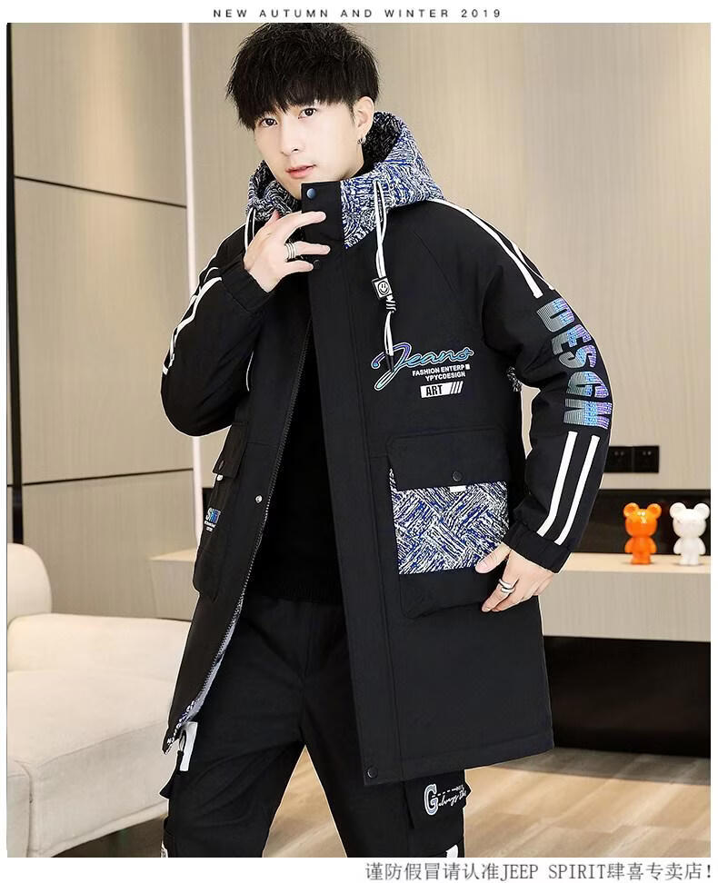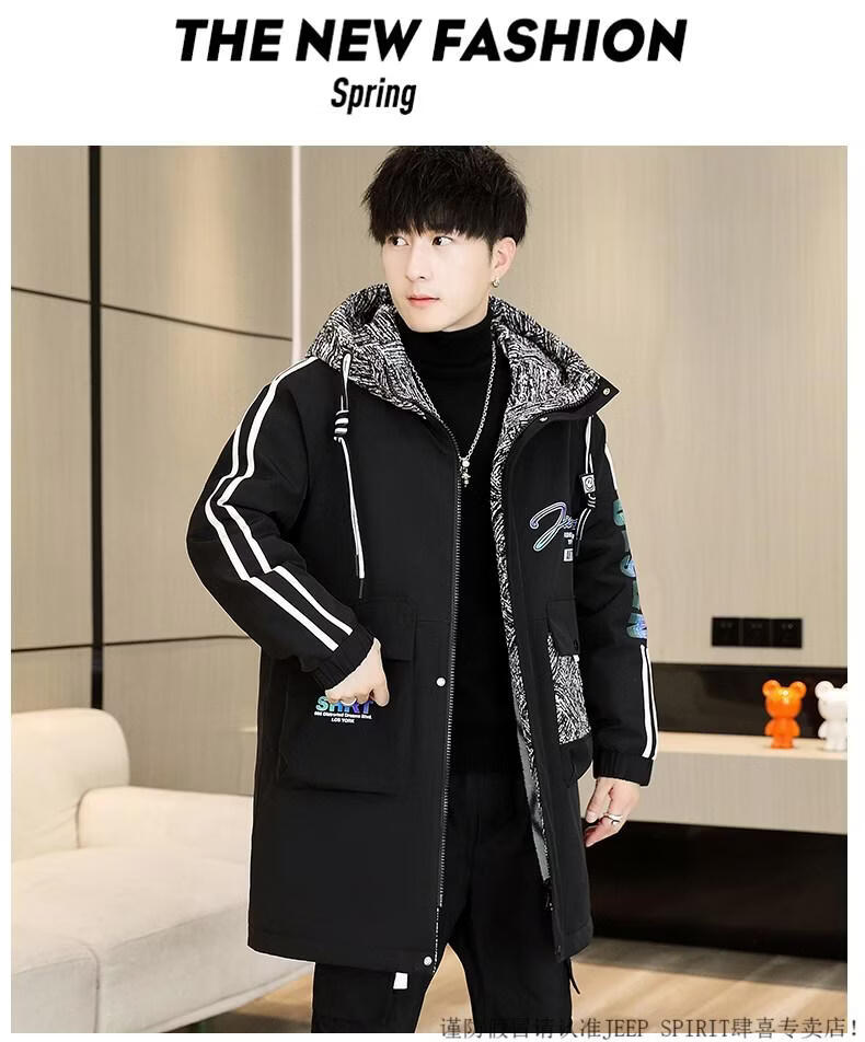 JEEP SPIRIT2025冬季新款加绒外套男中长款风衣帅气男装休闲棉衣派克服 88612S黑灰色【品质保证】 M 105斤以下