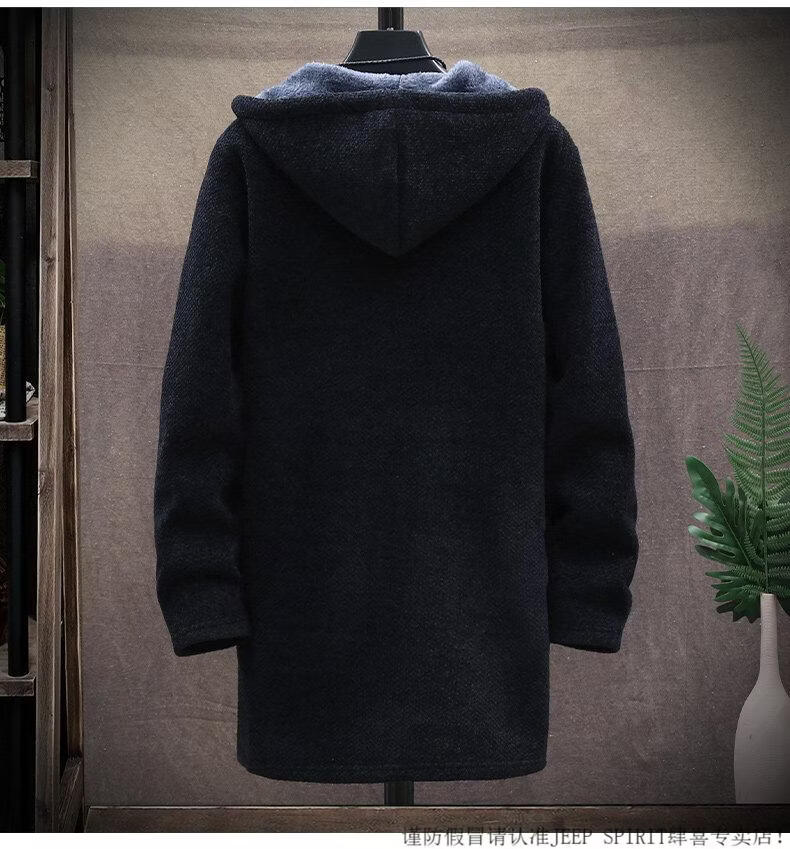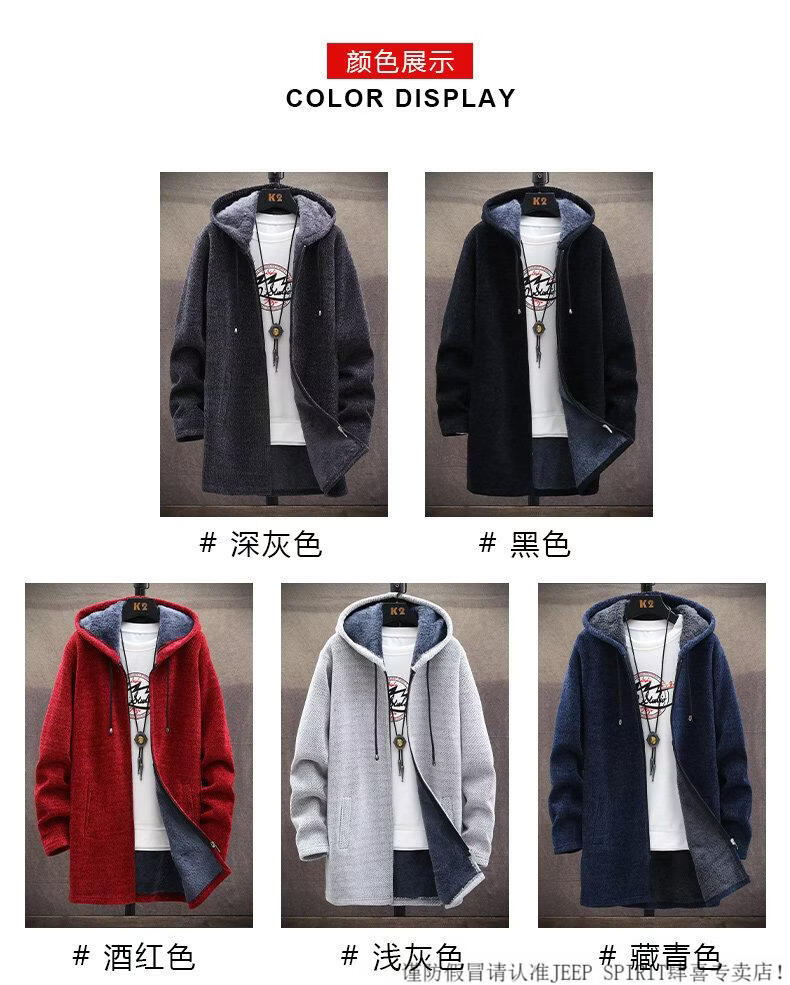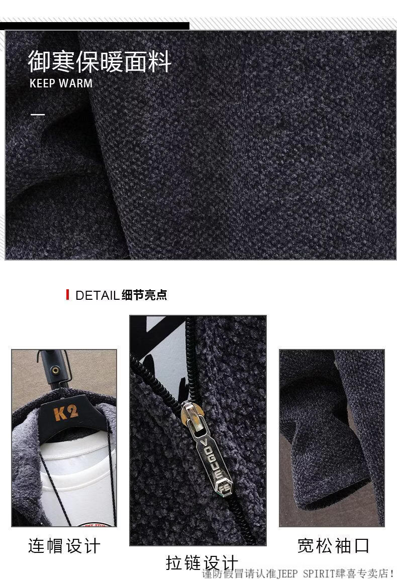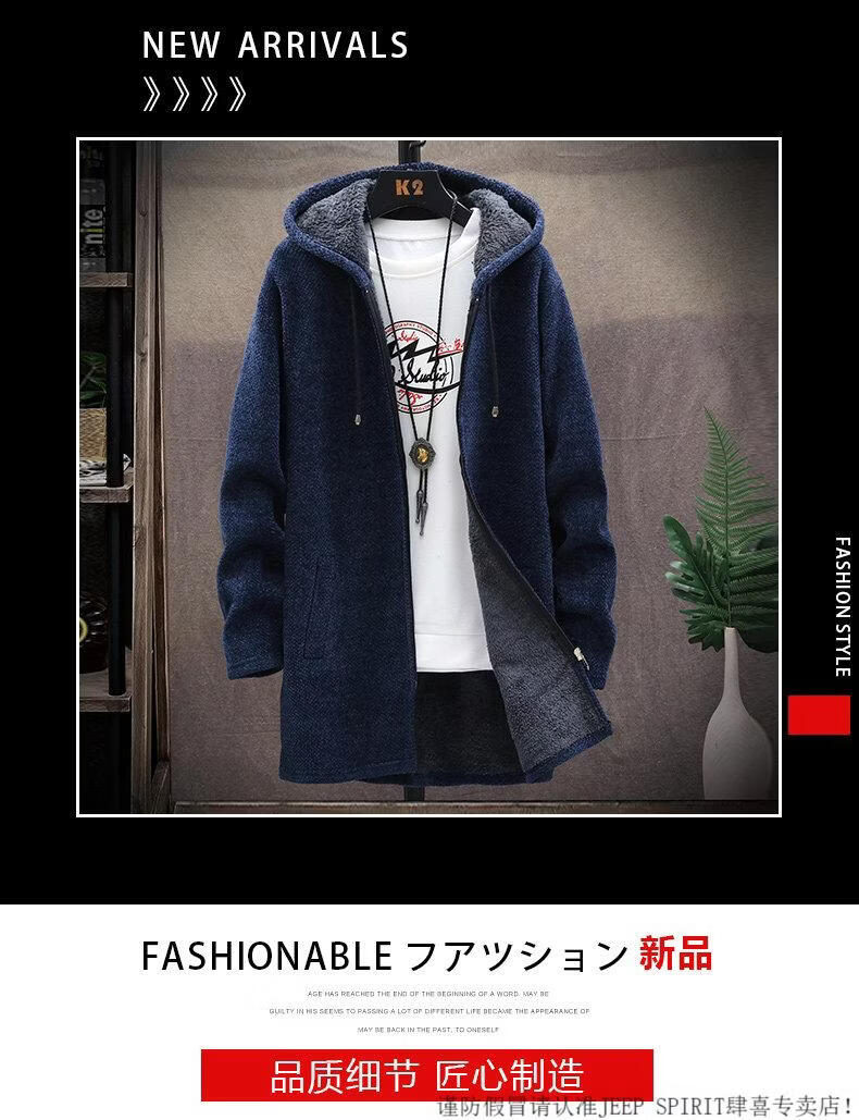 JEEP SPIRIT秋冬季毛衣夹克男士中长版大衣潮流连帽风衣加绒保暖拉炼 炼 8819深灰色【加 绒】中长版 M