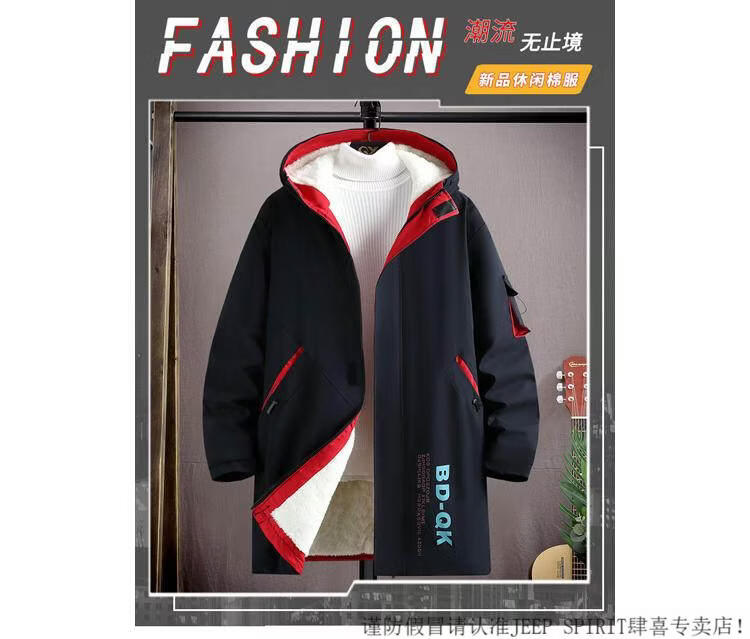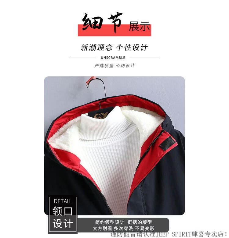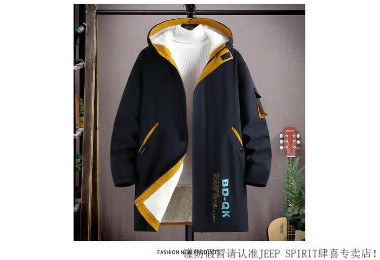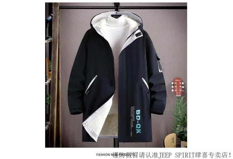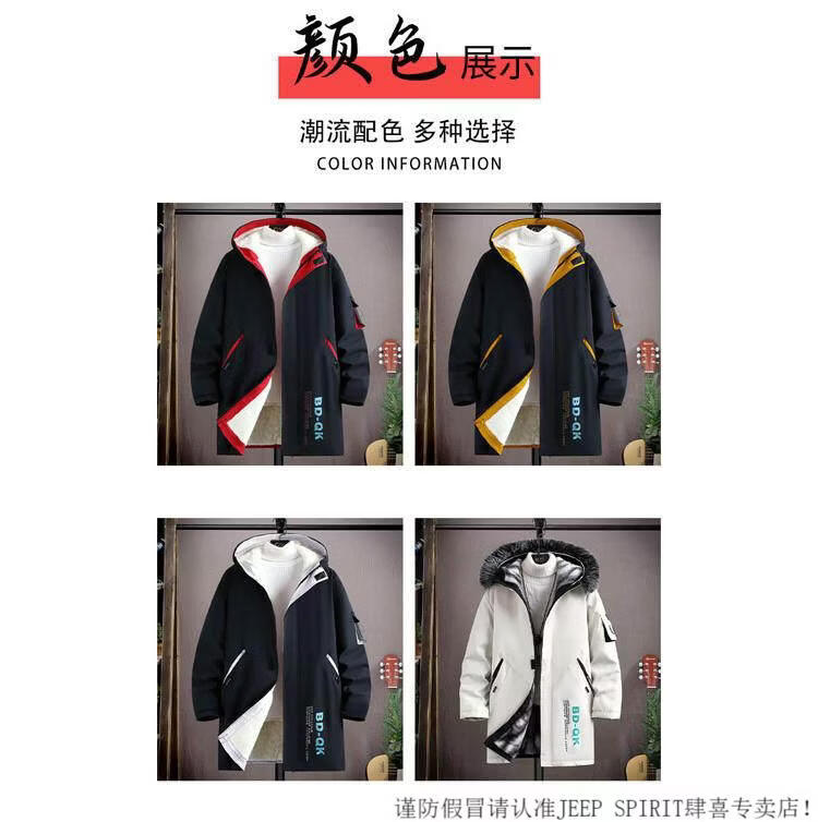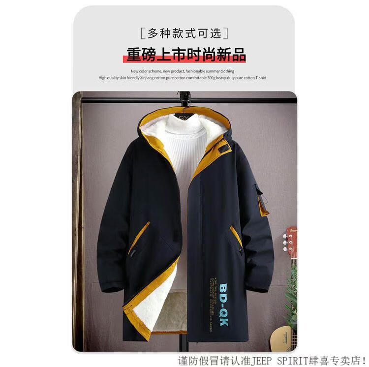JEEP SPIRIT velvet thickened men's jacket mid-length trendy overcoat cotton winter men's jacket 2025 new windbreaker white 3XL