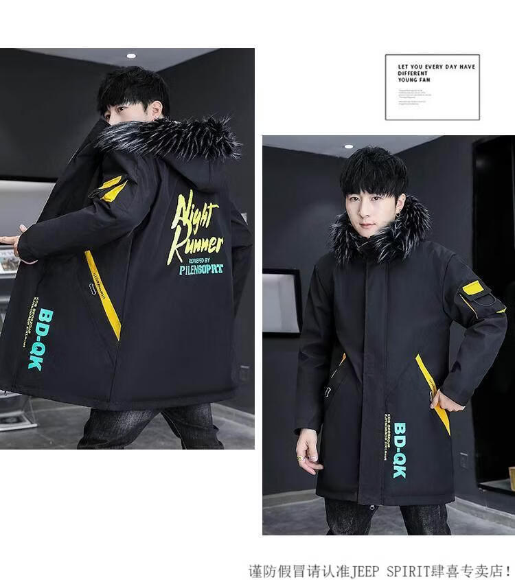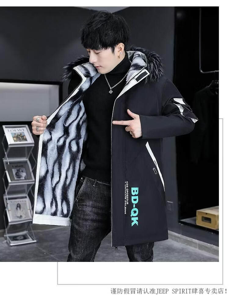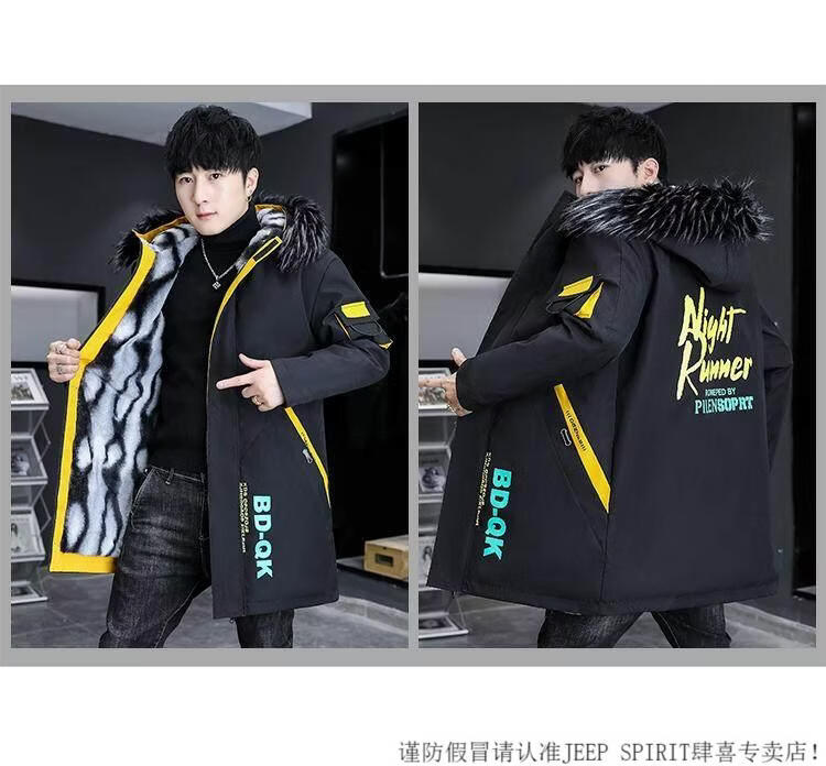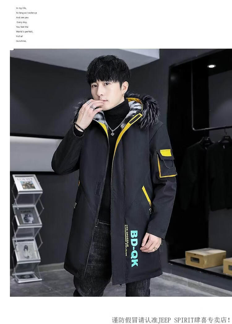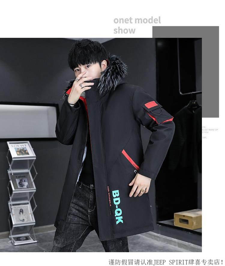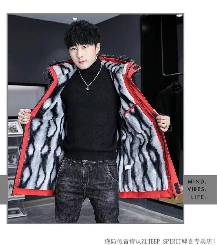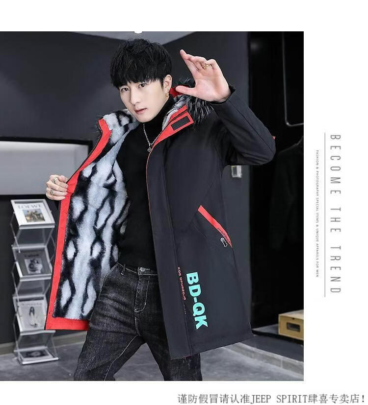 JEEP SPIRIT зимняя парка мужская бархатная утепленная куртка модная зимняя ветровка средней длины теплая хлопковая мужская куртка BDQ черно-красная бархатная плюс толстая с меховым воротником M
