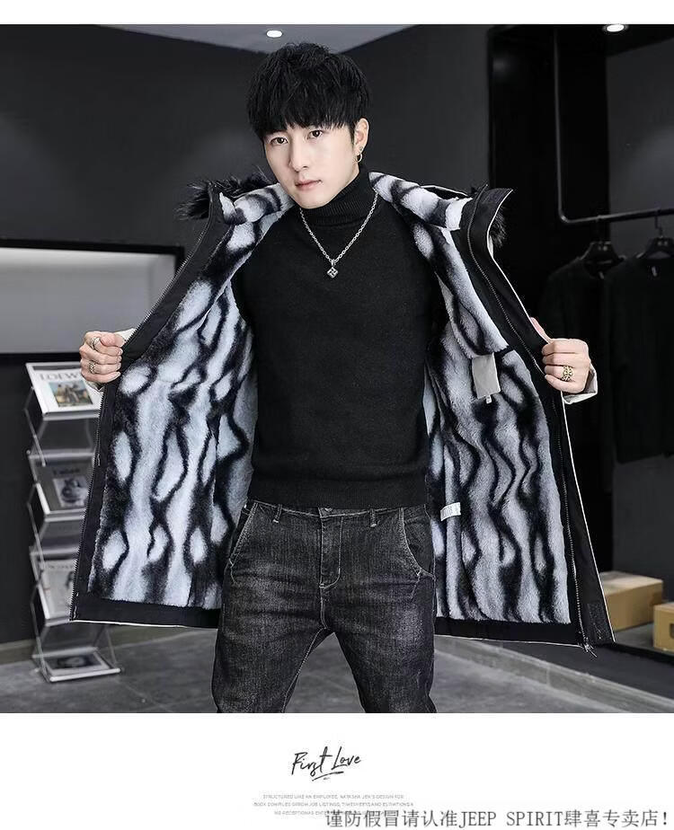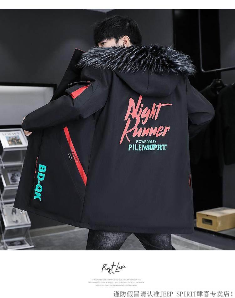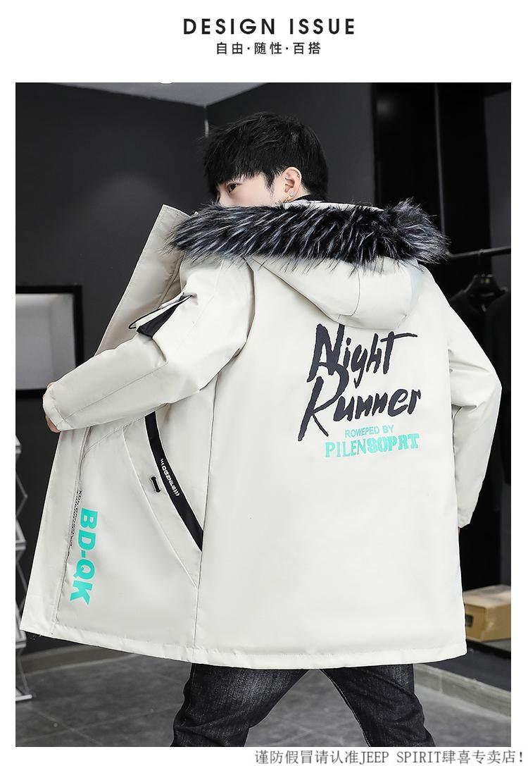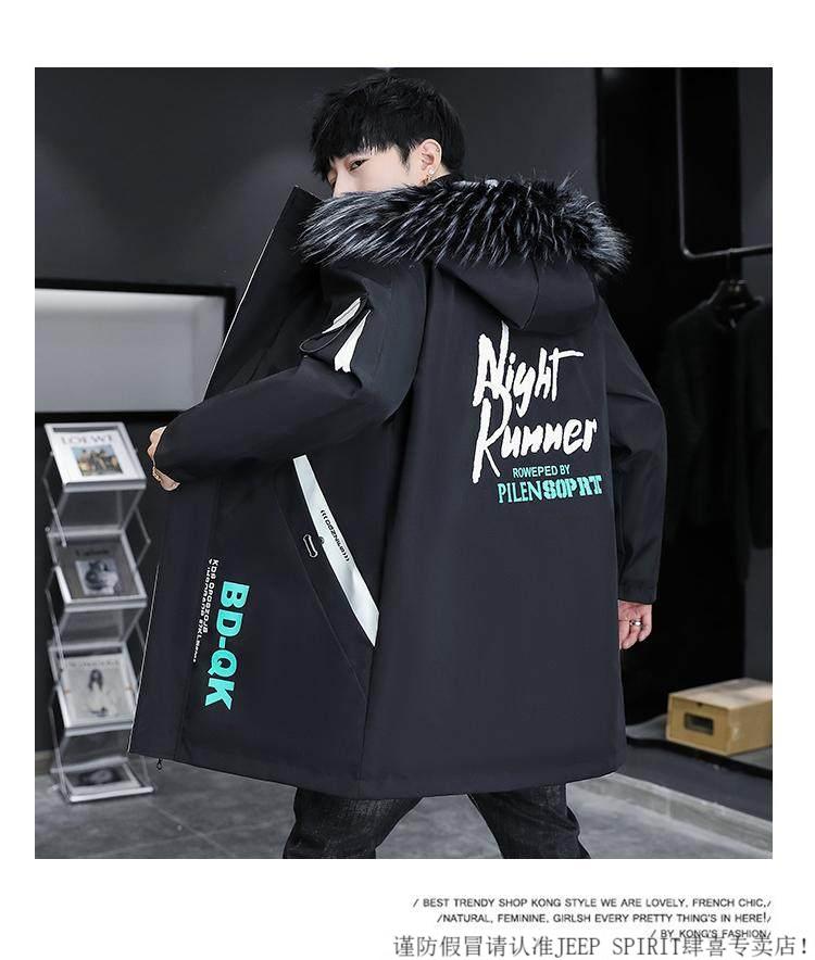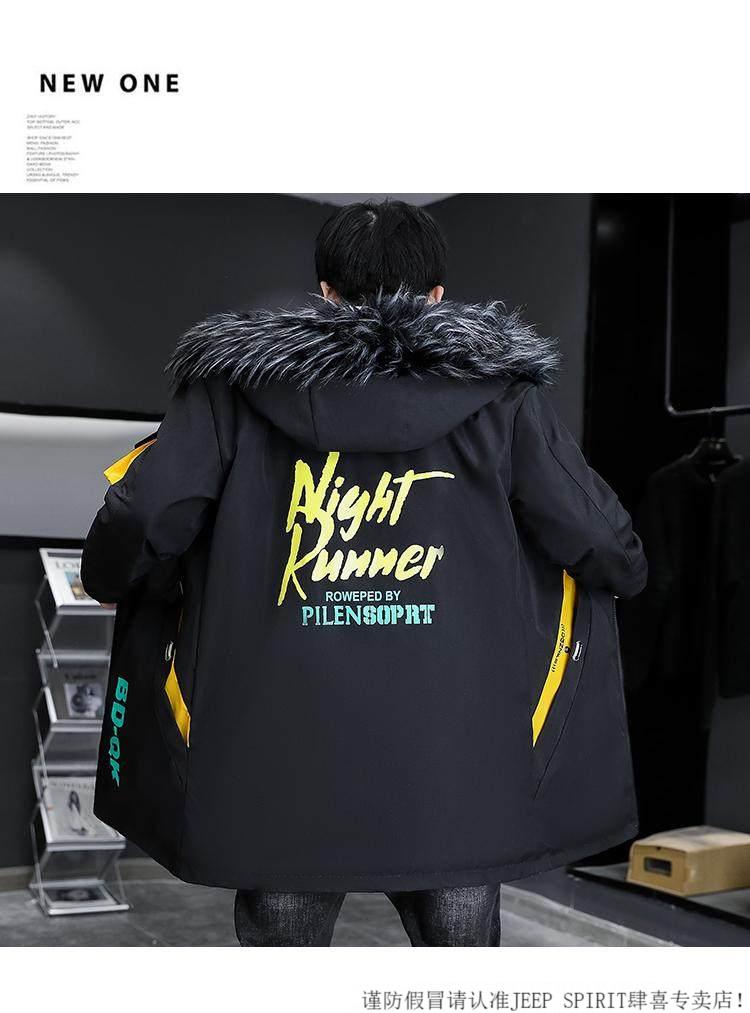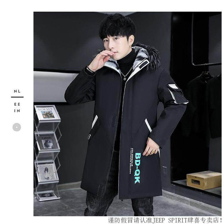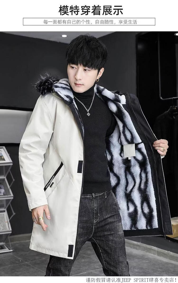 JEEP SPIRIT зимняя парка мужская бархатная утепленная куртка модная зимняя ветровка средней длины теплая хлопковая мужская куртка BDQ черно-красная бархатная плюс толстая с меховым воротником M