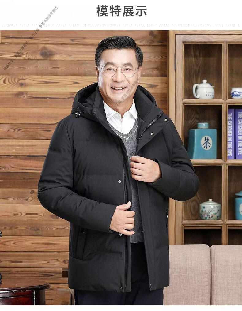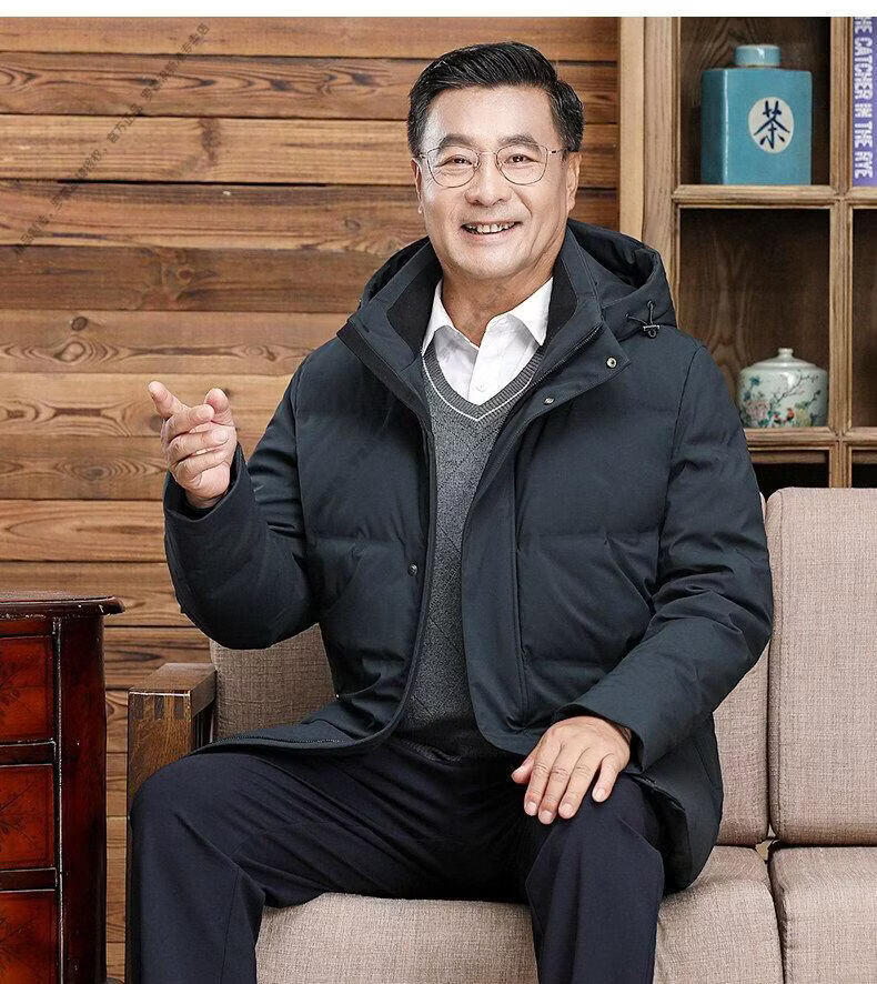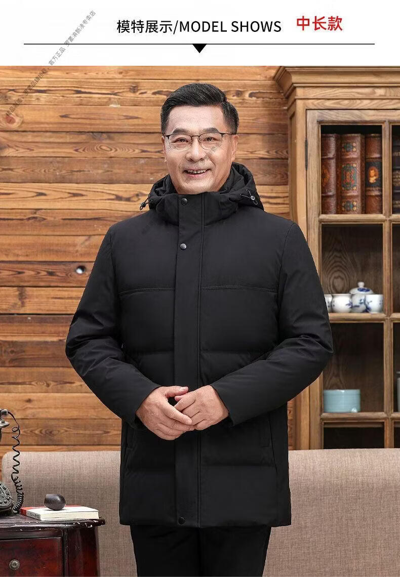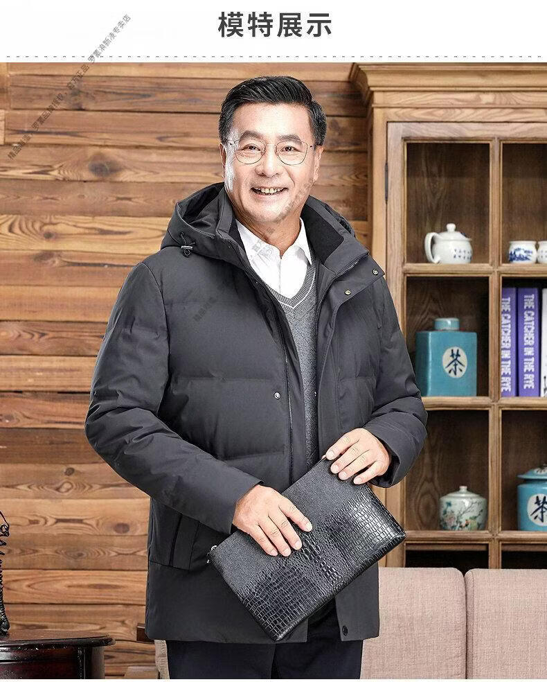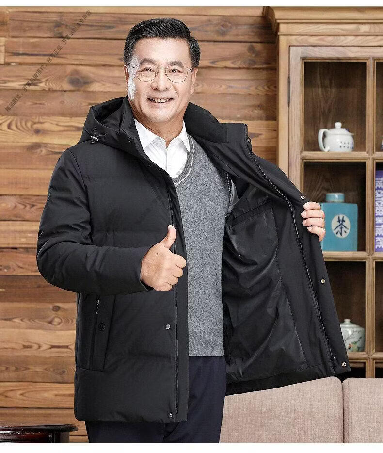 罗蒙(ROMON)中老年羽绒服男中长款爸爸装加厚冬款父亲爷爷装大码短款保暖外套 黑色6808【短款】 M 170 【适合90-115斤】