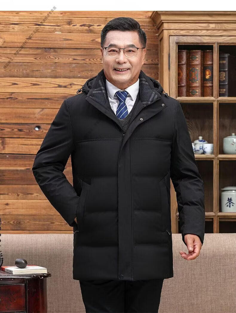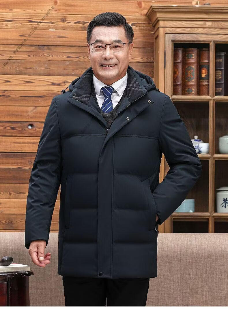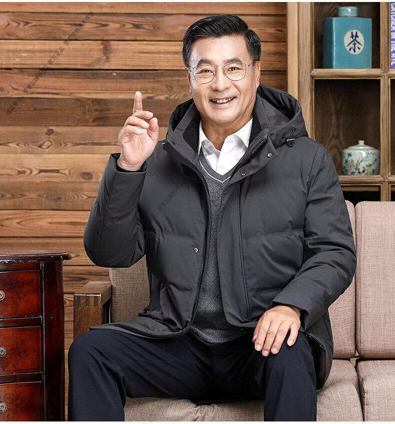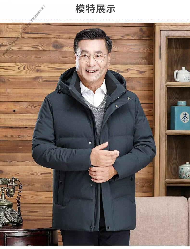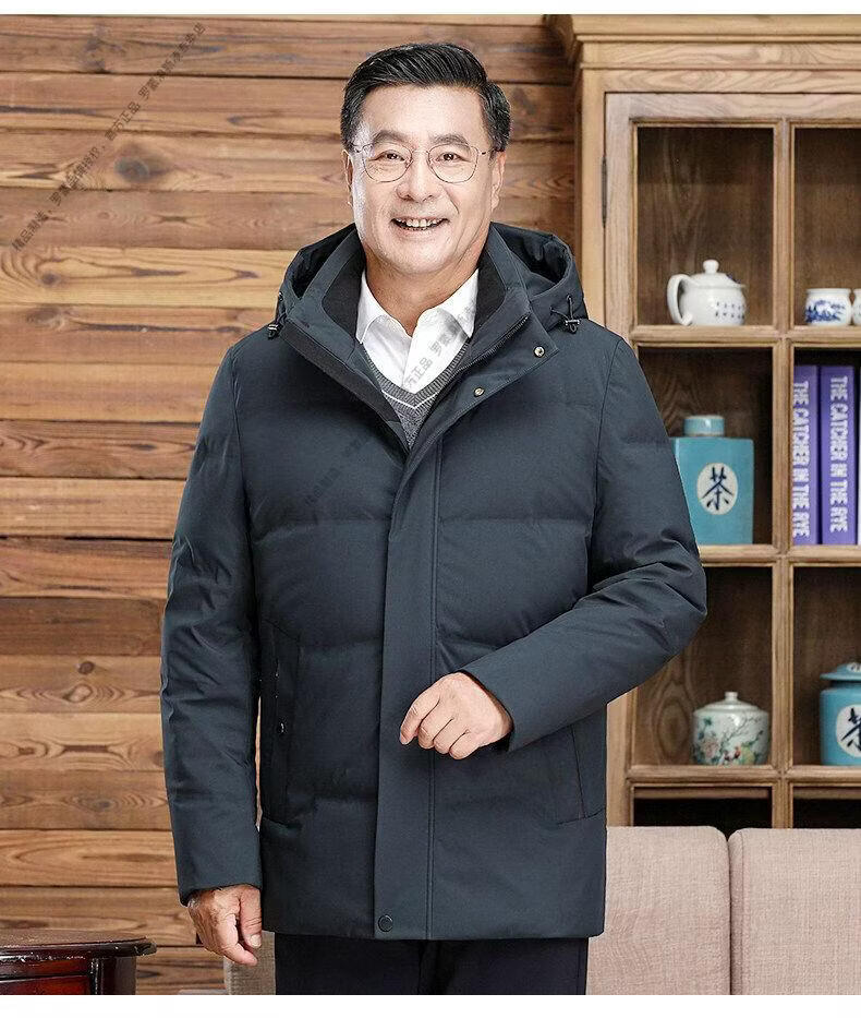 罗蒙(ROMON)中老年羽绒服男中长款爸爸装加厚冬款父亲爷爷装大码短款保暖外套 黑色6808【短款】 M 170 【适合90-115斤】
