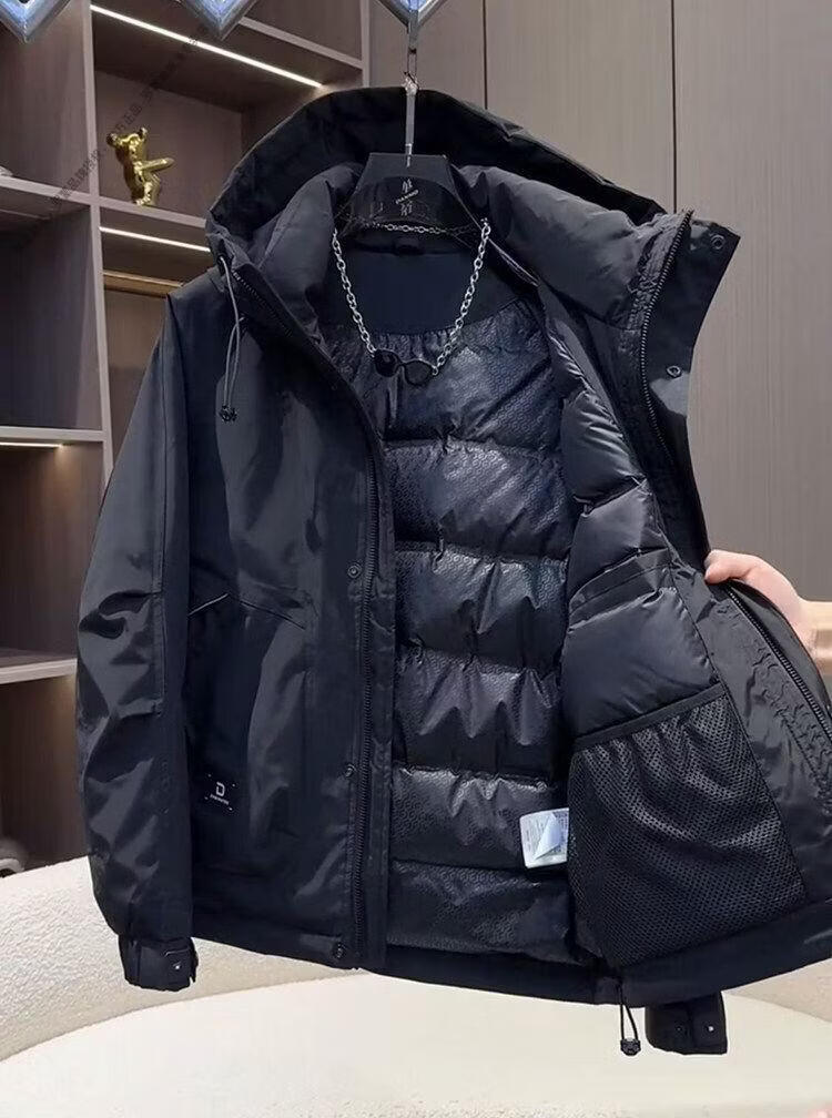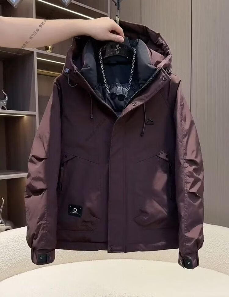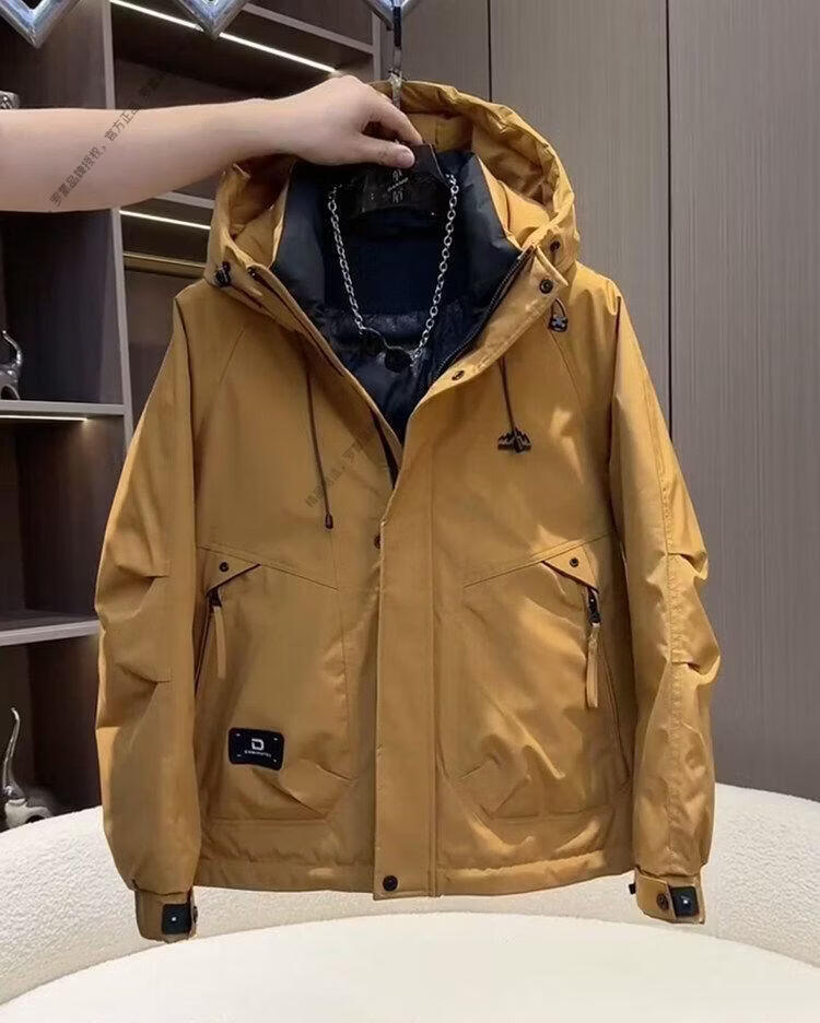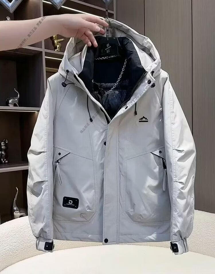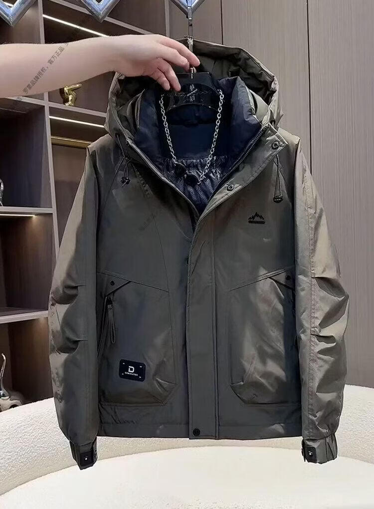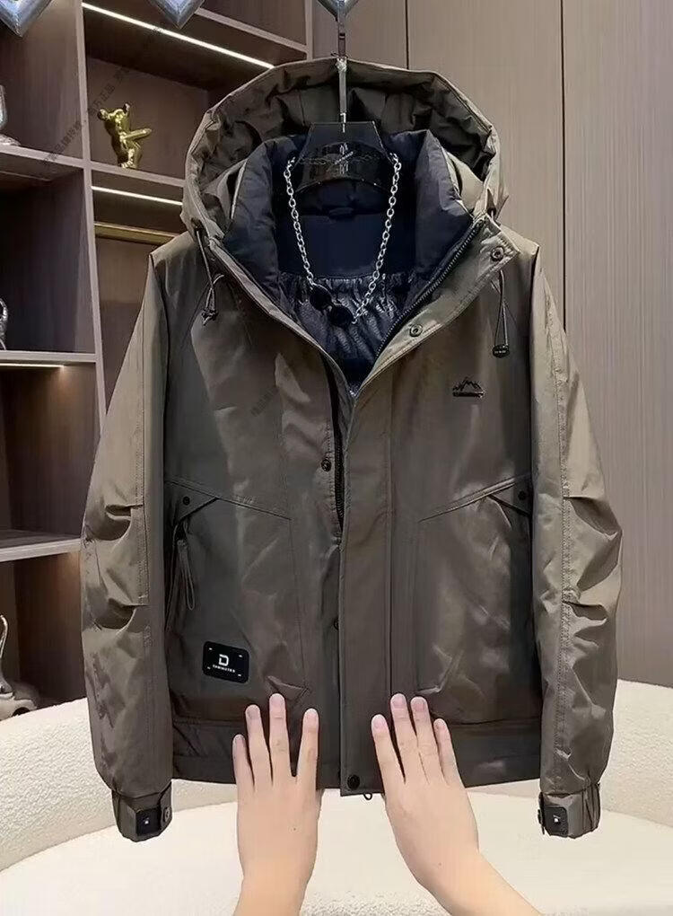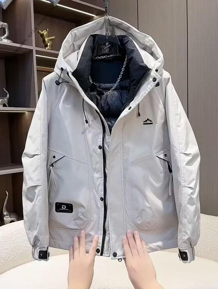 ROMON workwear down jacket men's winter thickened American style jacket duck down hooded jacket men's warm and cold-proof beige XL recommended 140-155Jin Jin equals 0.5 kg