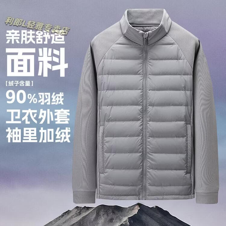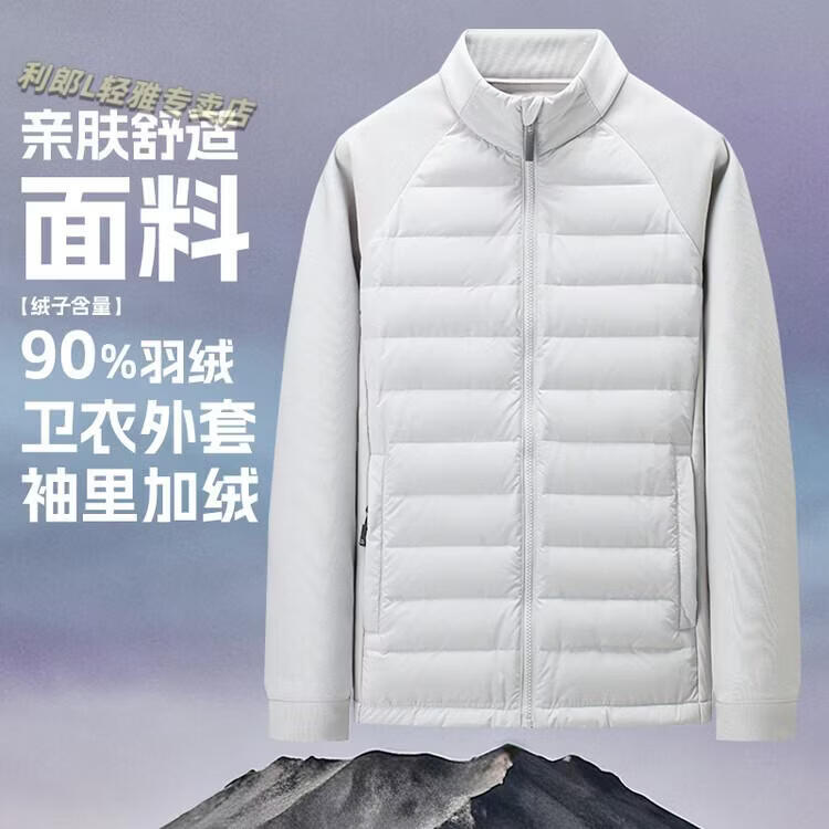 LILANZ thin down jacket men's hooded short 2026 winter new sports knitted splicing light jacket off-white M