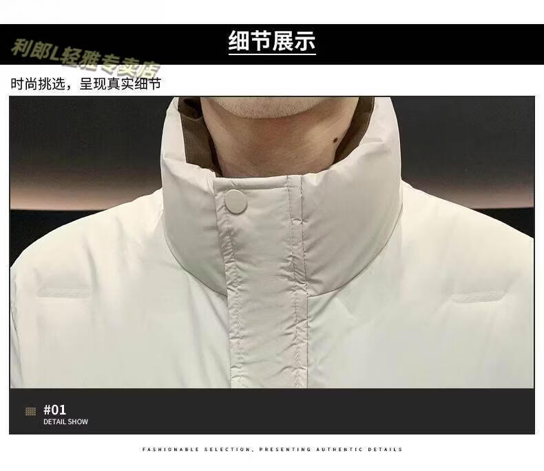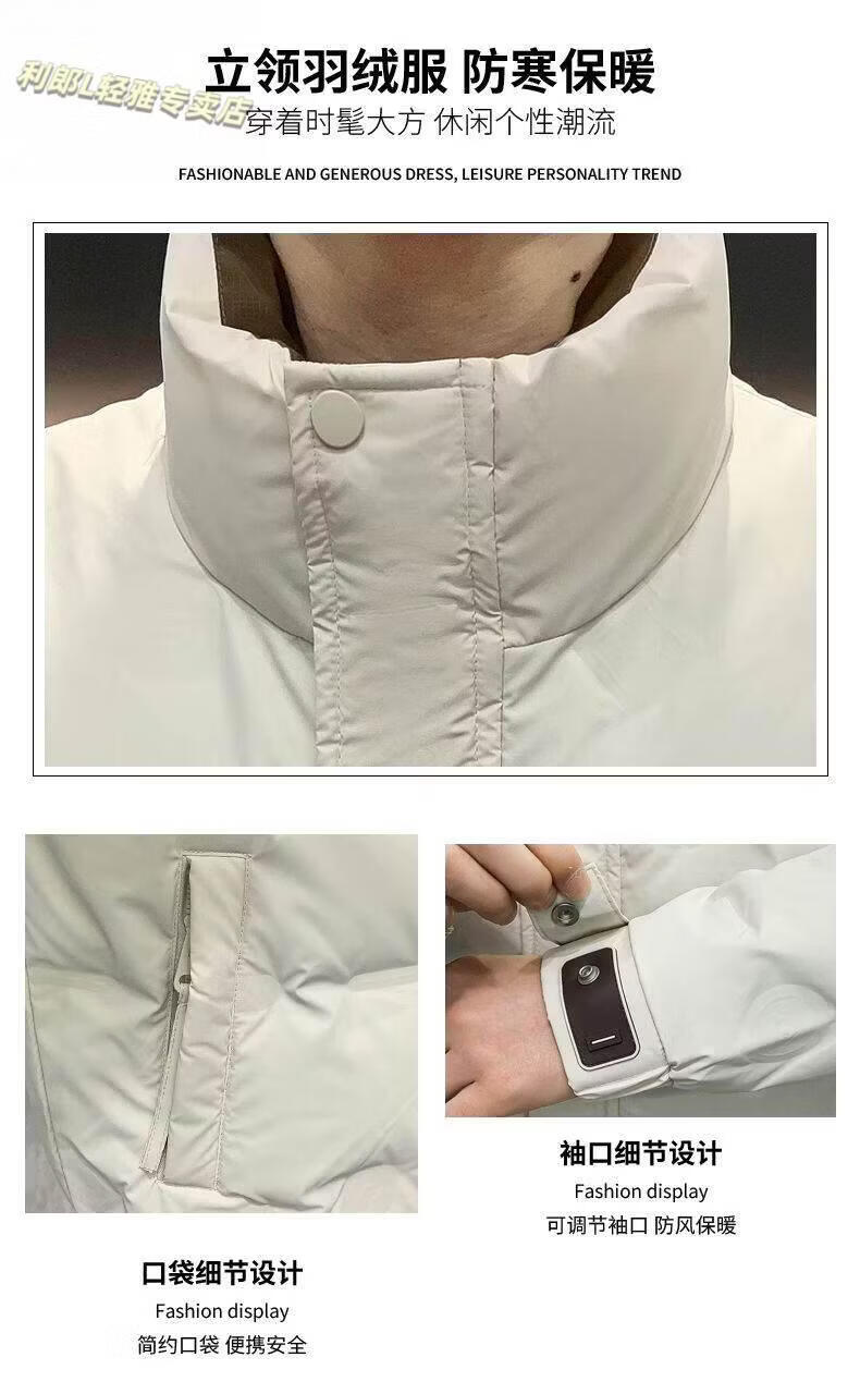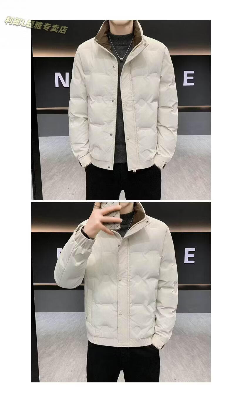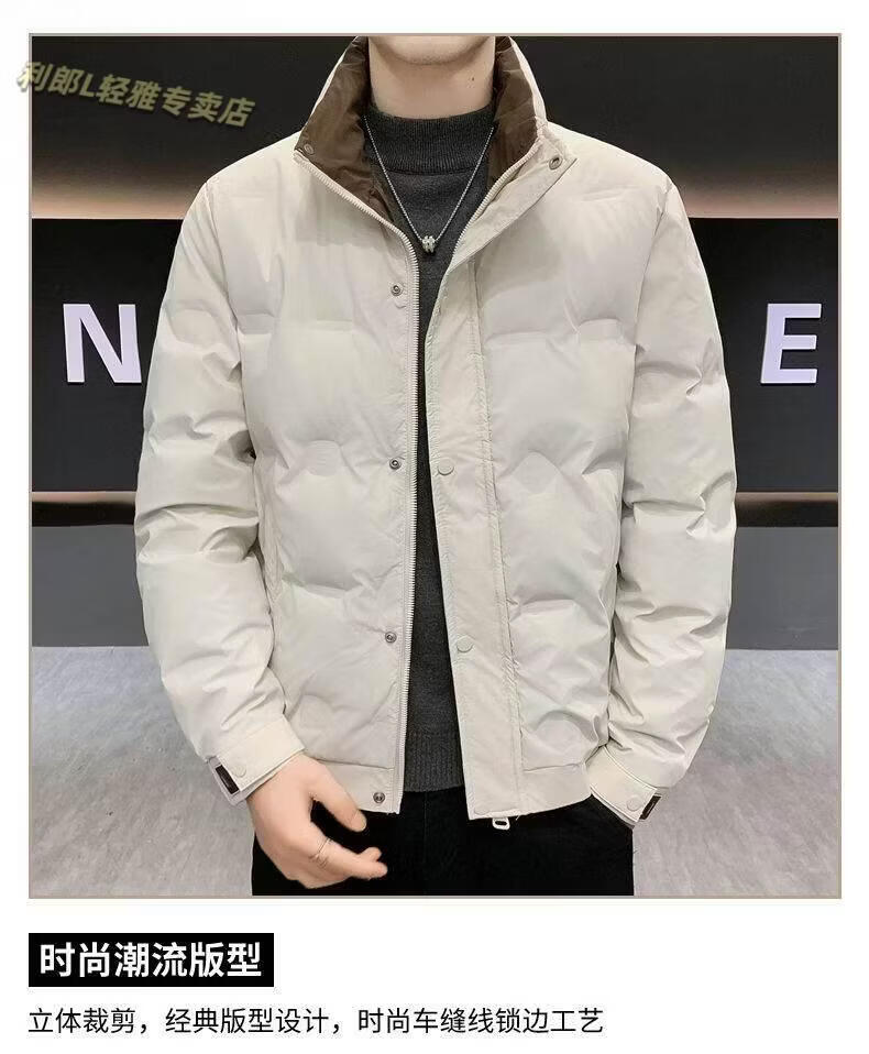 利郎(LILANZ)白鸭绒短款立领羽绒服男设计感加厚保暖青年潮流帅气外套 米白色 L