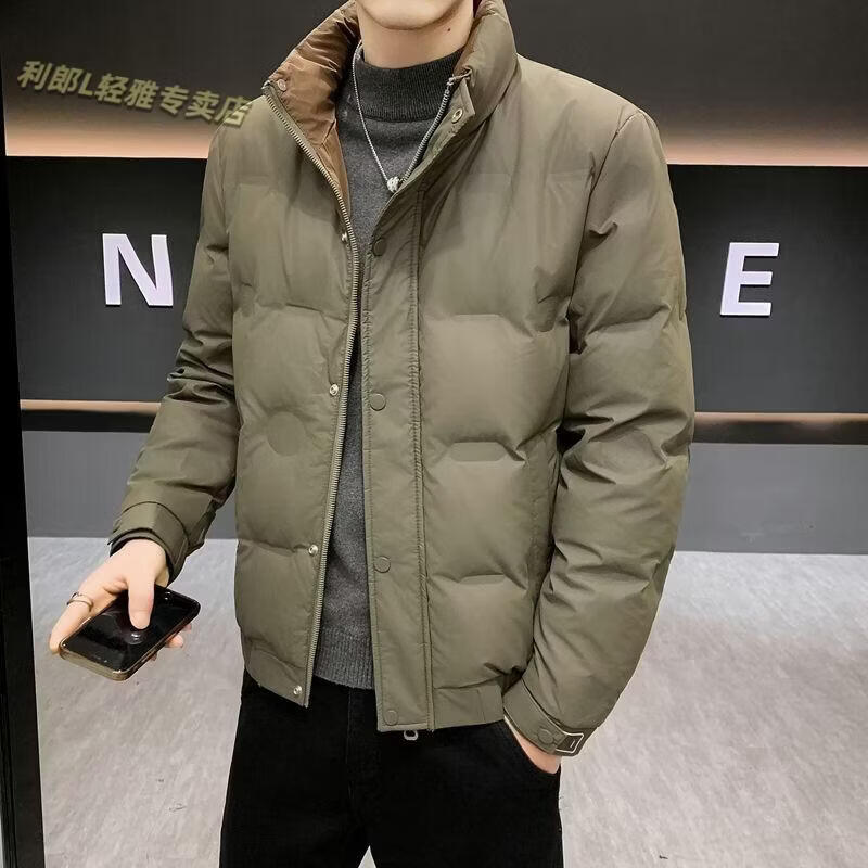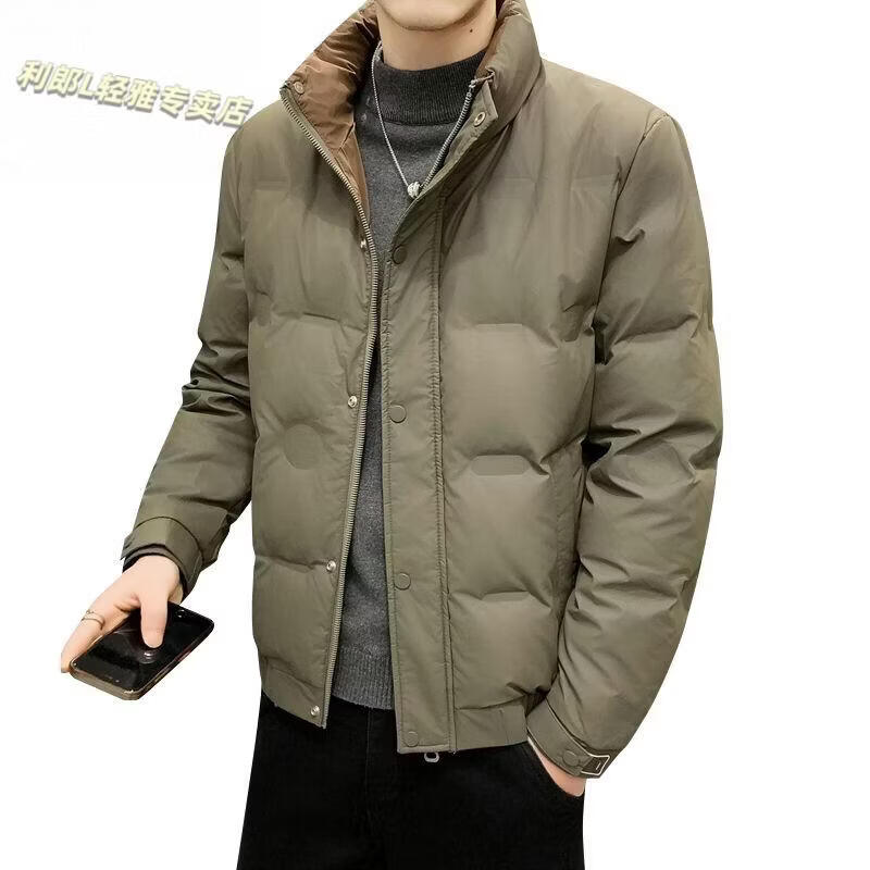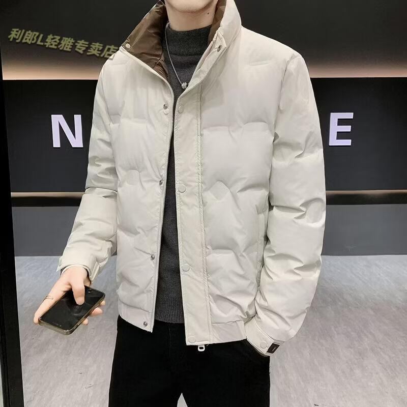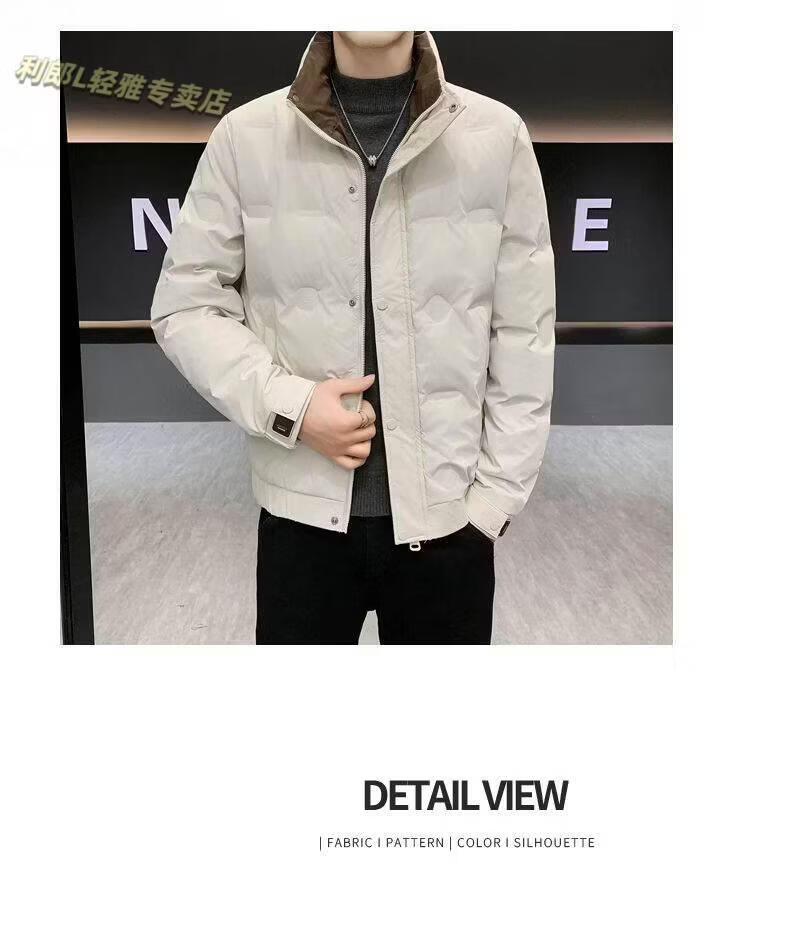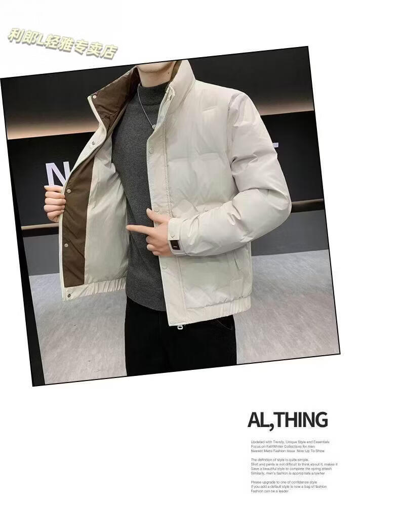 利郎(LILANZ)白鸭绒短款立领羽绒服男设计感加厚保暖青年潮流帅气外套 米白色 L