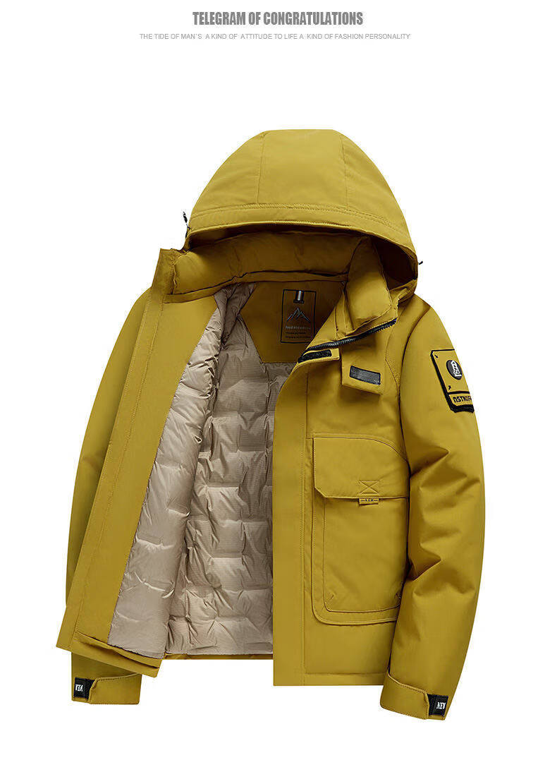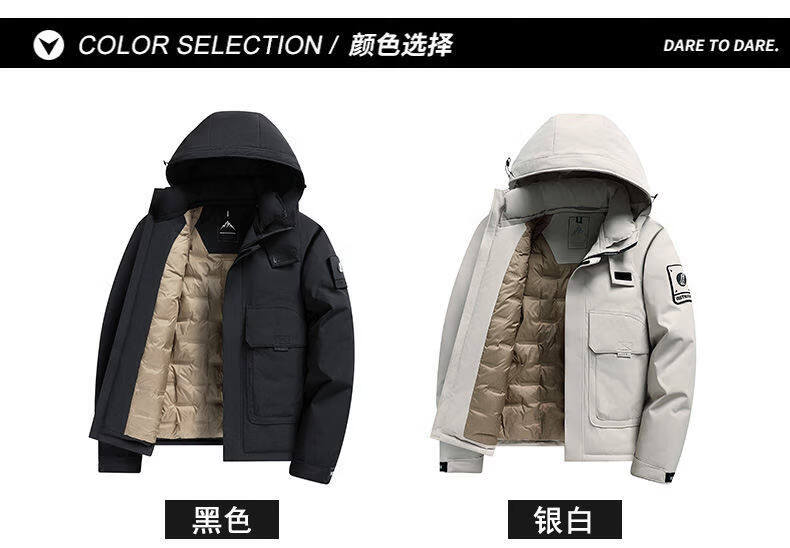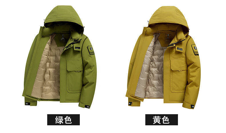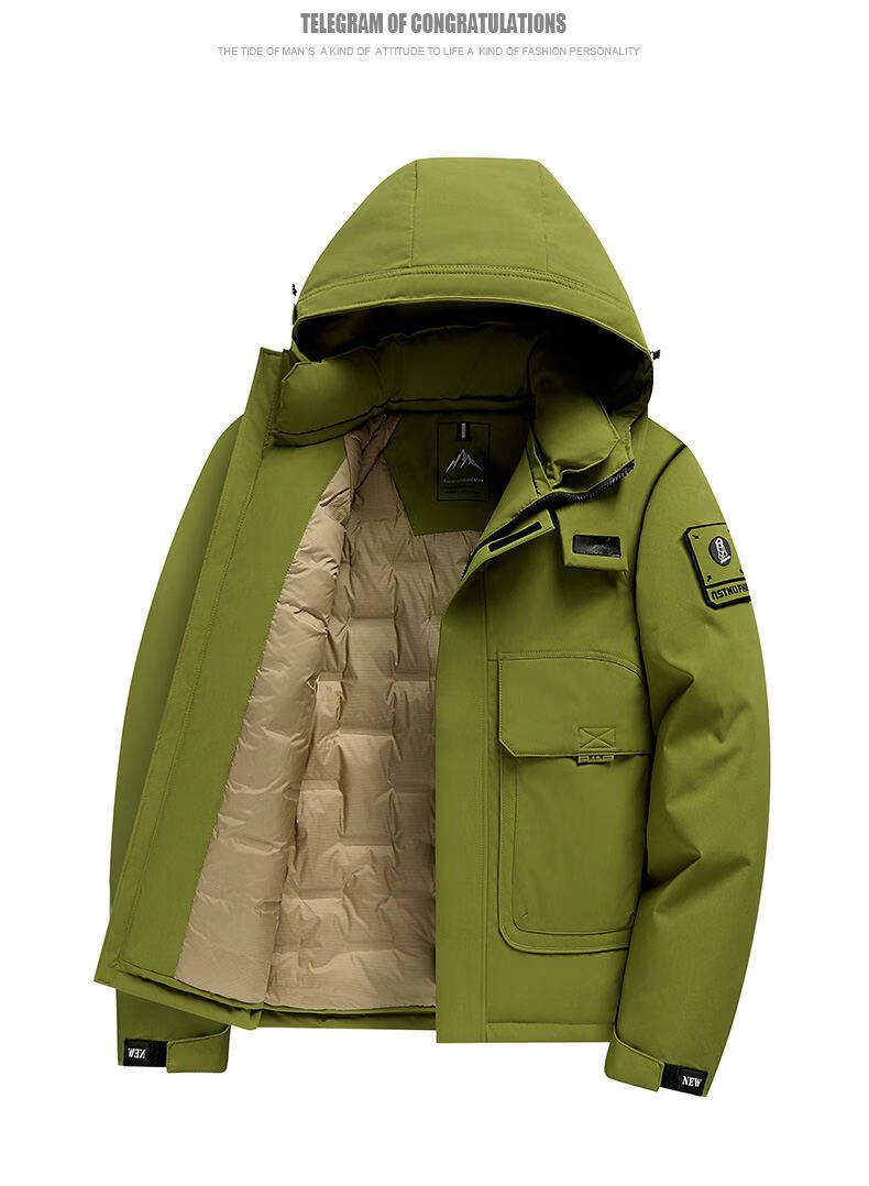 罗蒙(ROMON)冬季男士工装90白鸭绒羽绒服冬连帽冲锋衣户外保暖中青年外套 绿色 XL 180 建议120-135斤