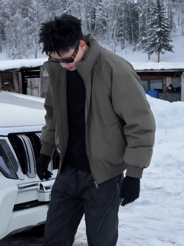 ROMON Army Green Короткий пуховик на утином пуху, мужская зимняя утолщенная теплая и морозостойкая летная куртка цвета хаки M