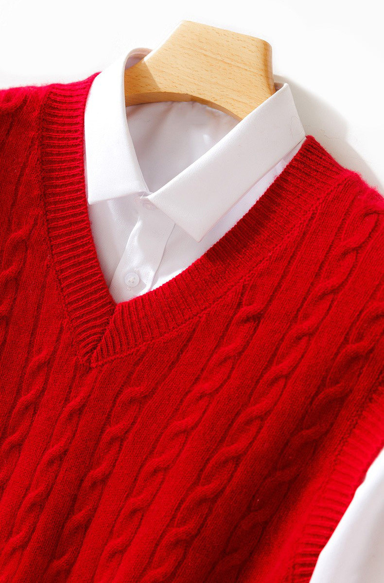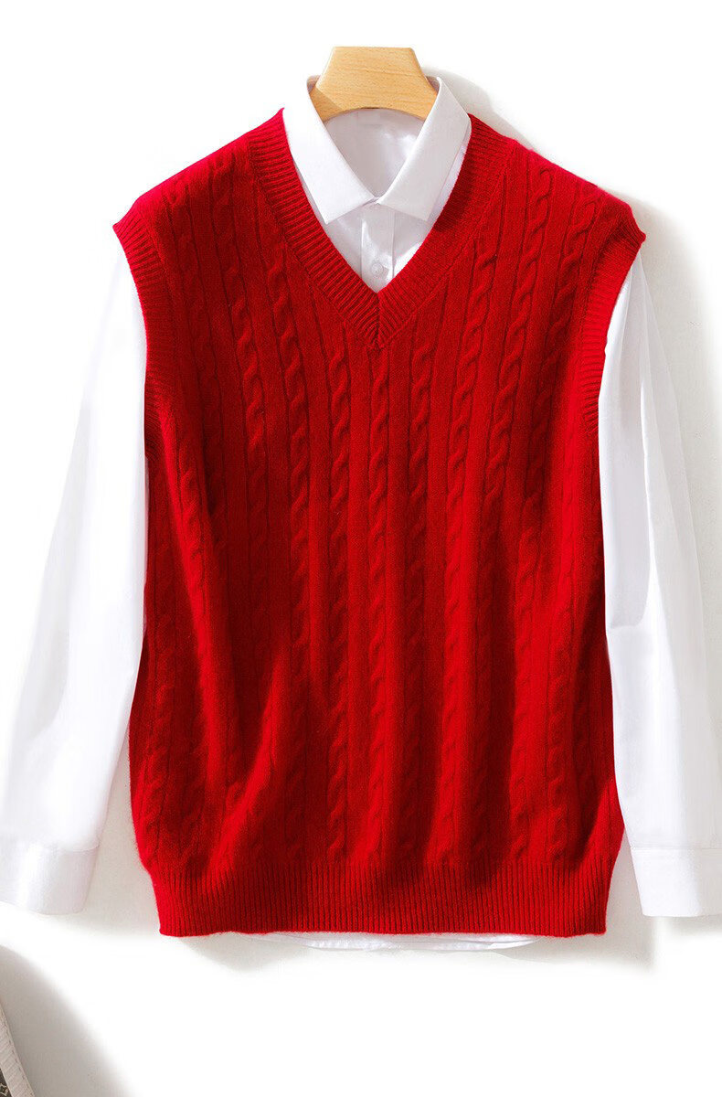 ROMON жилет из чистой шерсти, мужской пуловер с v-образным вырезом, свитер без рукавов, жилет, свободный вязаный жилет, нижняя рубашка, trb, настоящий красный цвет, 3XL