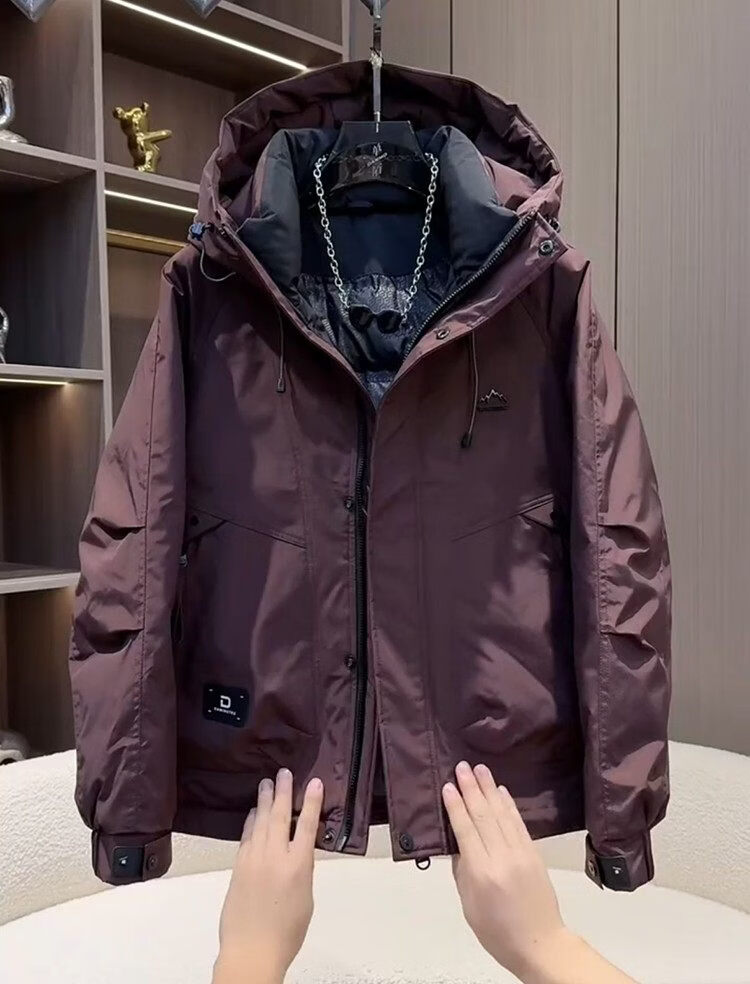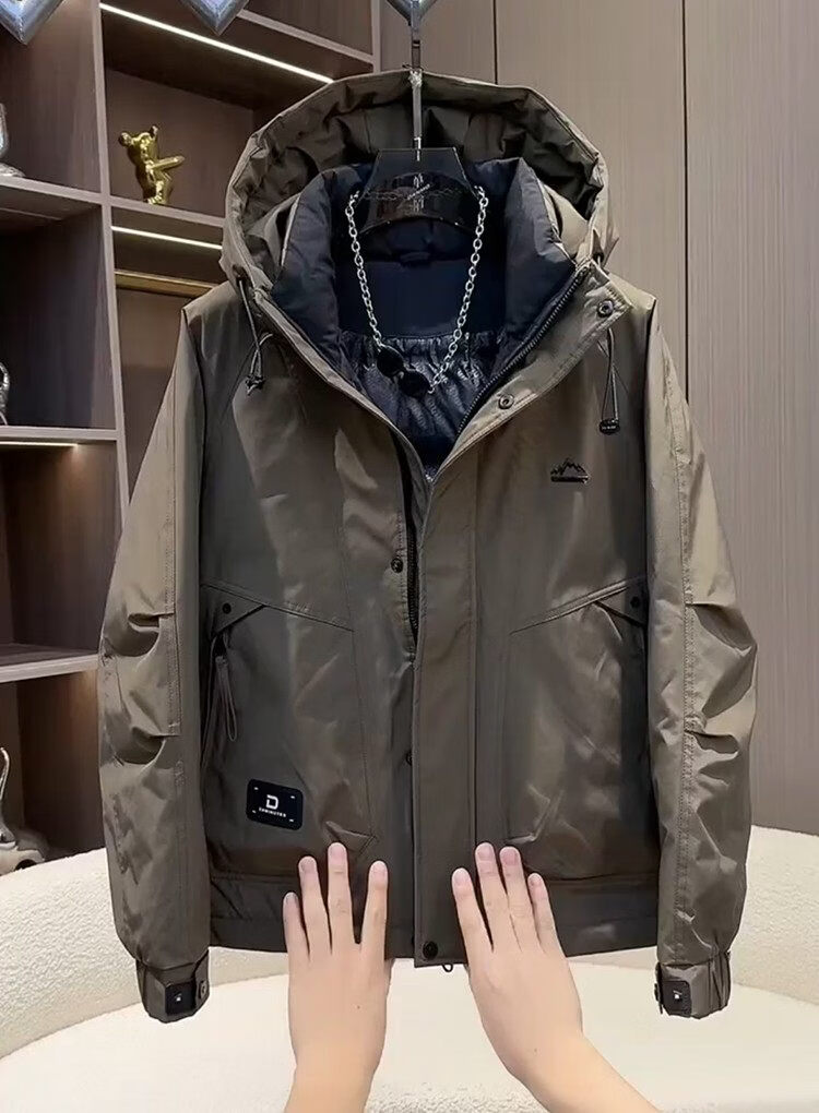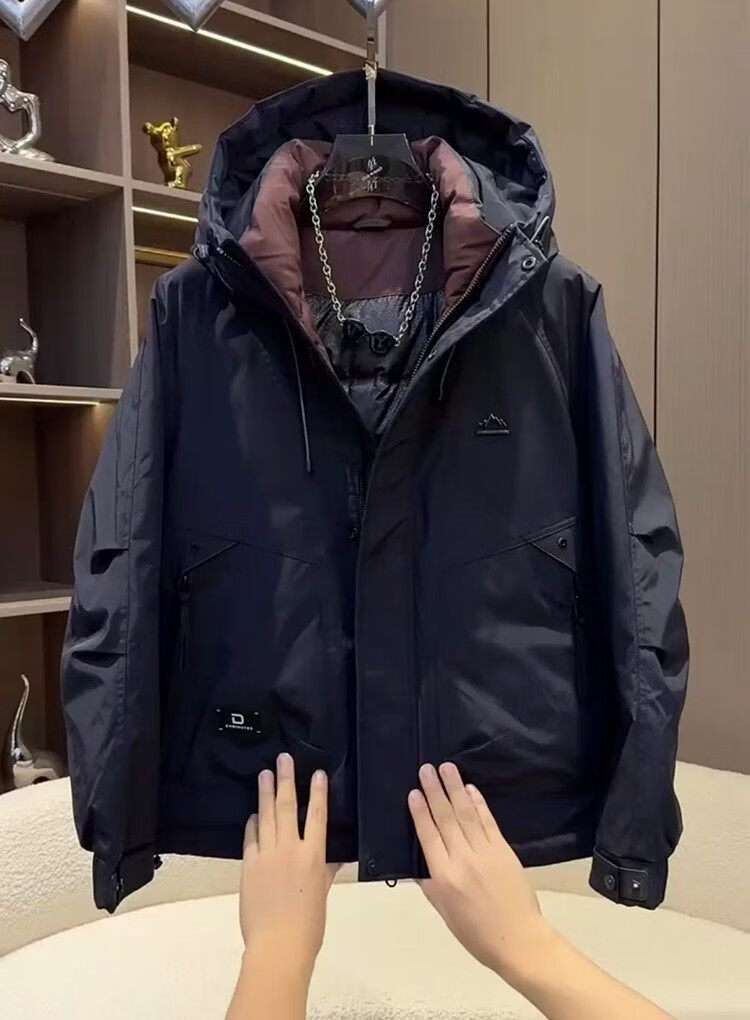 ROMON Рабочая одежда Короткий пуховик Мужская осенне-зимняя утепленная куртка Белая куртка на утином пуху с капюшоном Мужская защита от тепла и холода Рыжий желтый Romon Натуральная M Рекомендуемый вес 100-125 Jin Jin равен 0,5 кг