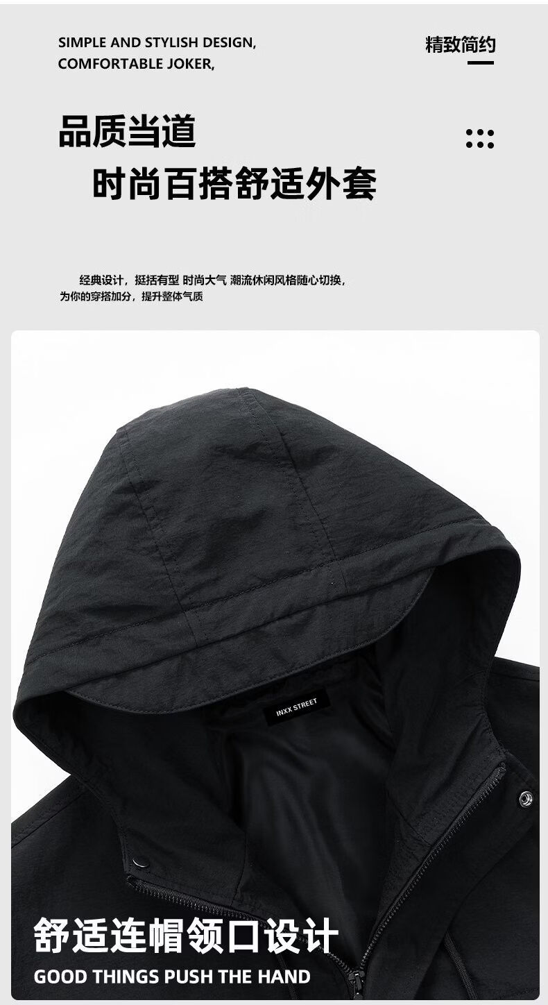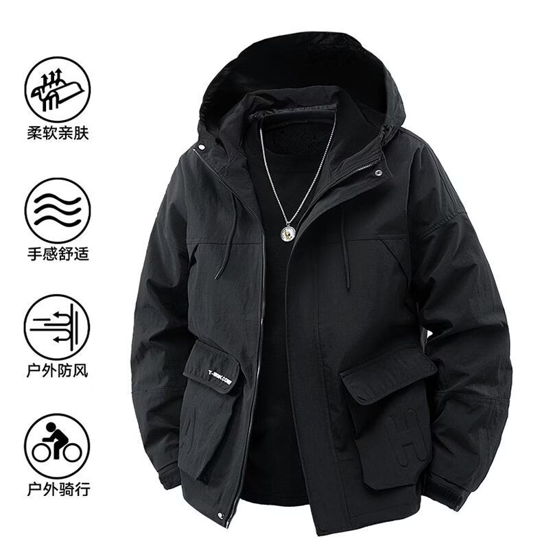 英克斯(inxx)INXX STREET美式连帽工装夹克男士春秋季新款时尚百搭简约外套 黑色 M 建议90-110斤