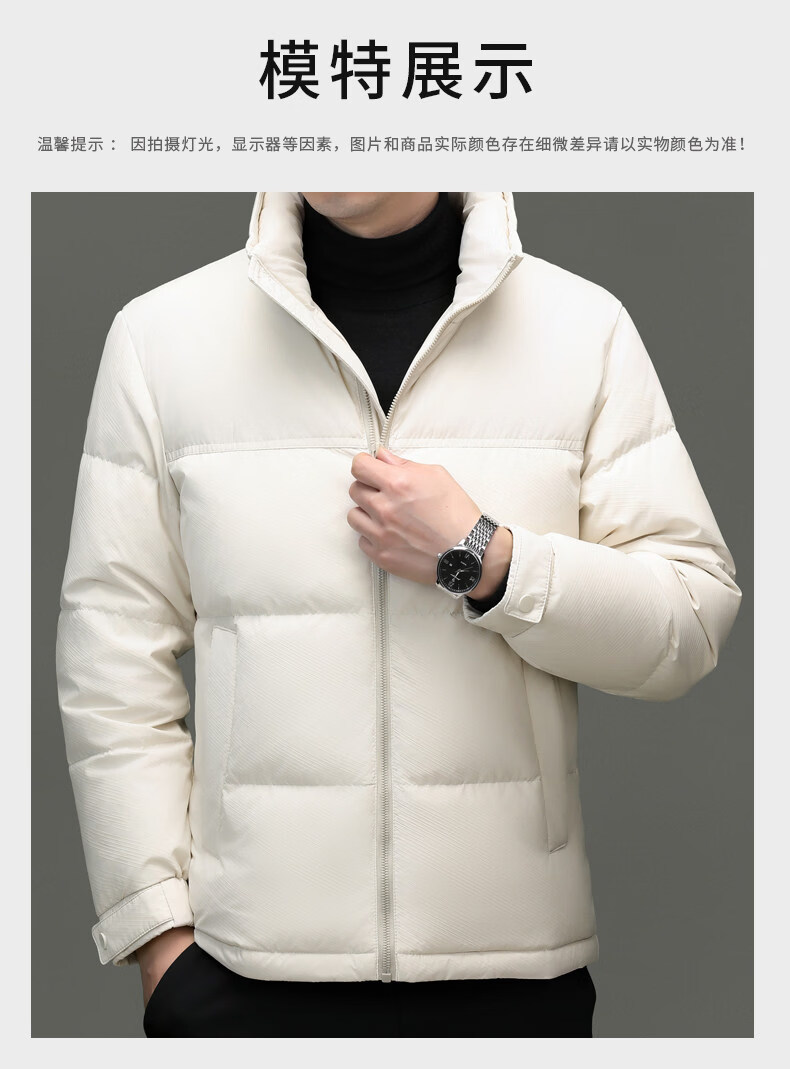 Мужской пуховик LiLang из 90% белого гусиного пуха, новый зимний высококачественный воротник-стойка, морозостойкий мужской утепленный и теплый кремово-белый размер 2XL 185 рекомендуется 150-165Jin Jin равен 0,5 кг