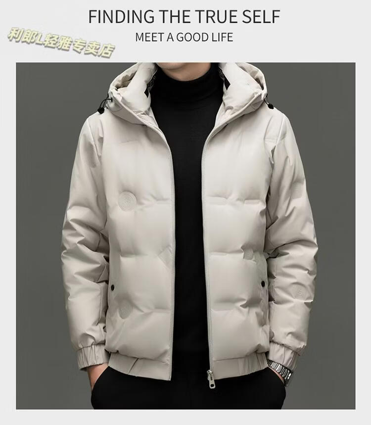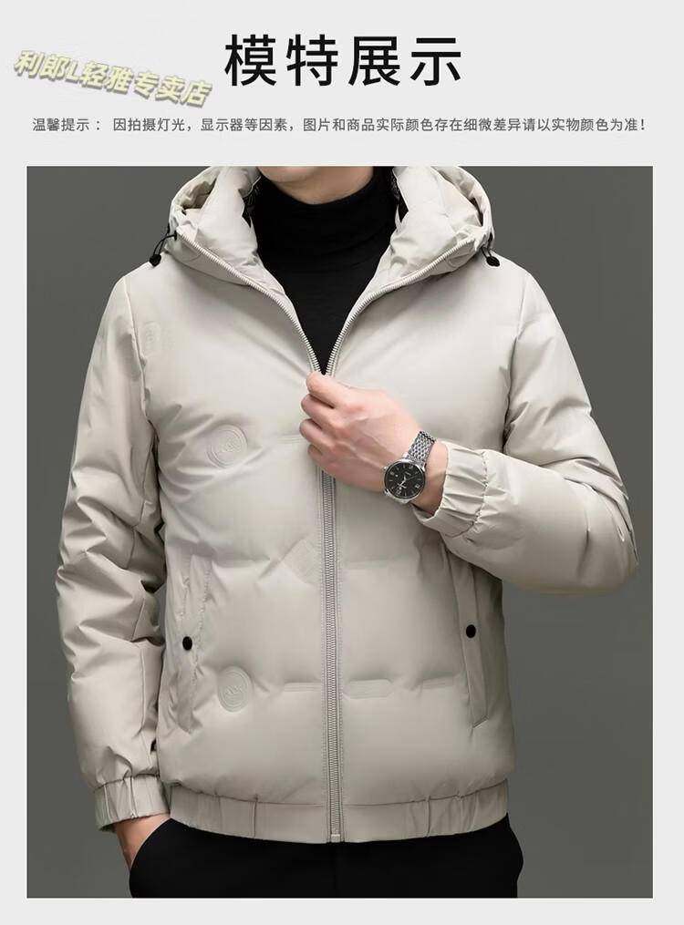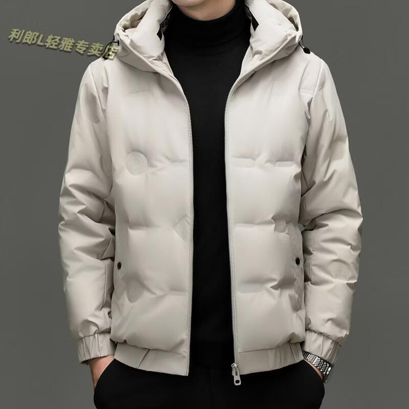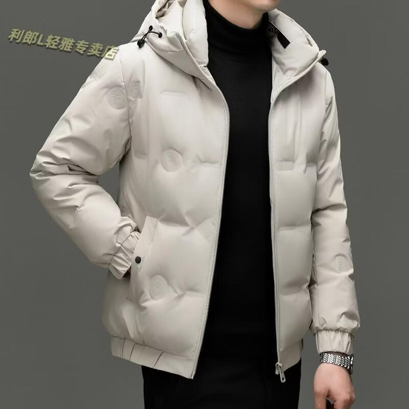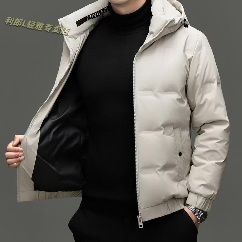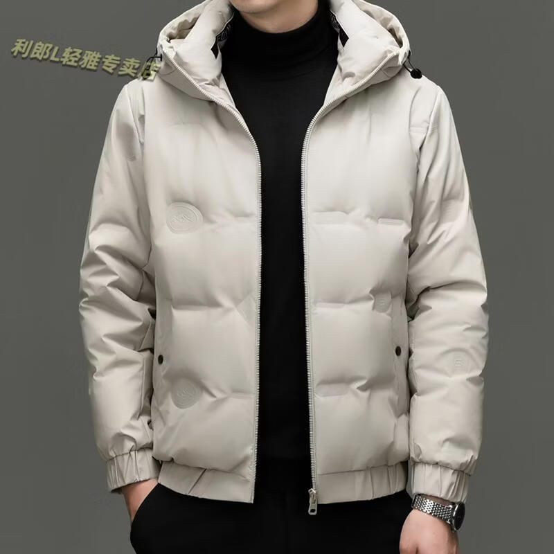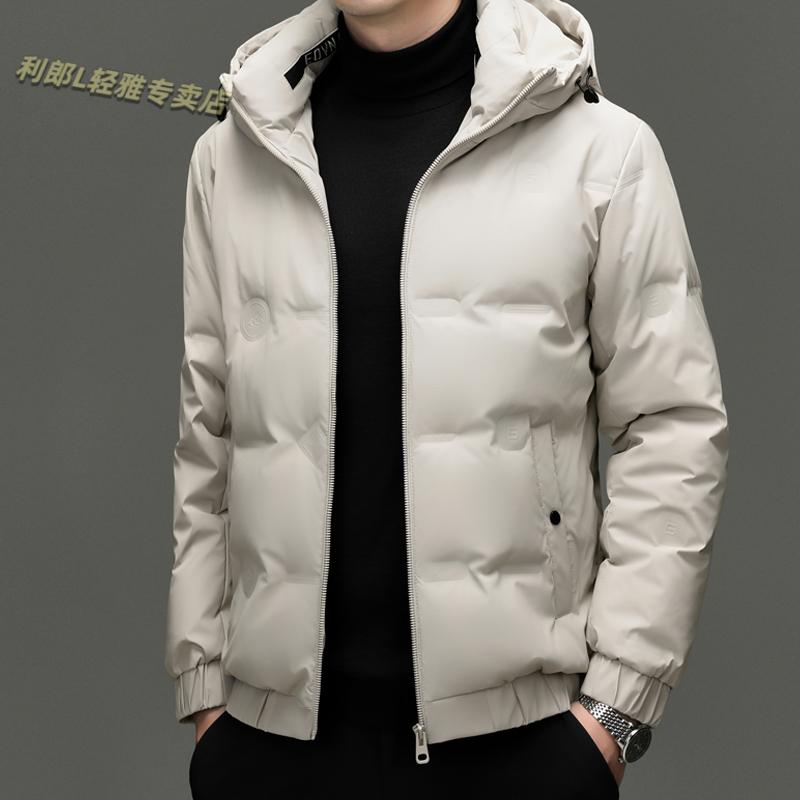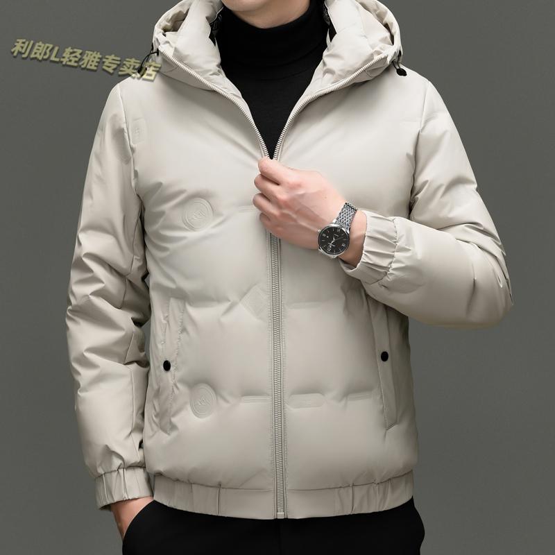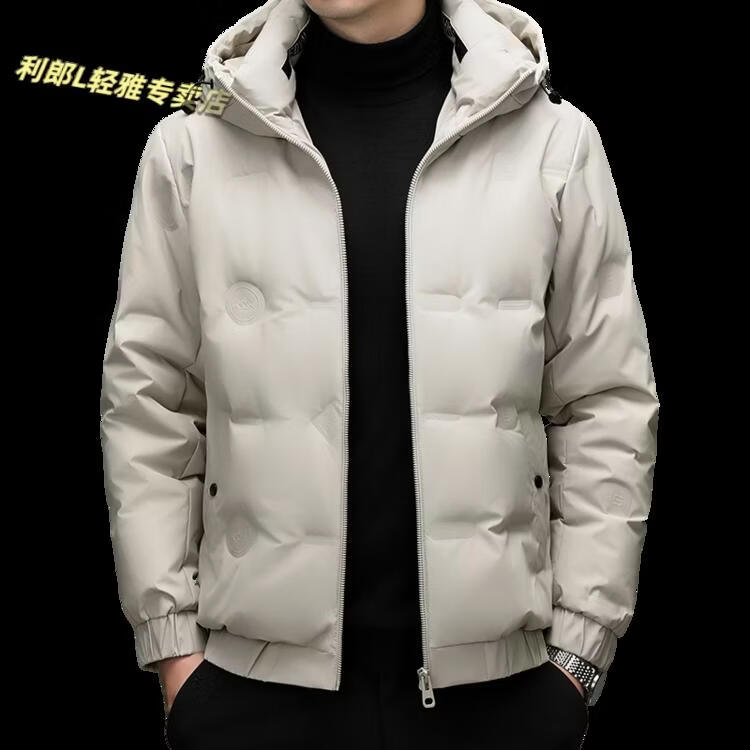 利郎(LILANZ)冬季连帽羽绒服男轻薄保暖防钻绒修身男装鸭绒外套短款休闲防寒服 米白色 4XL