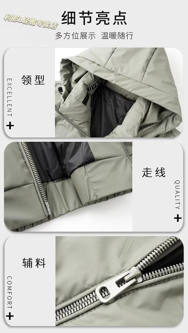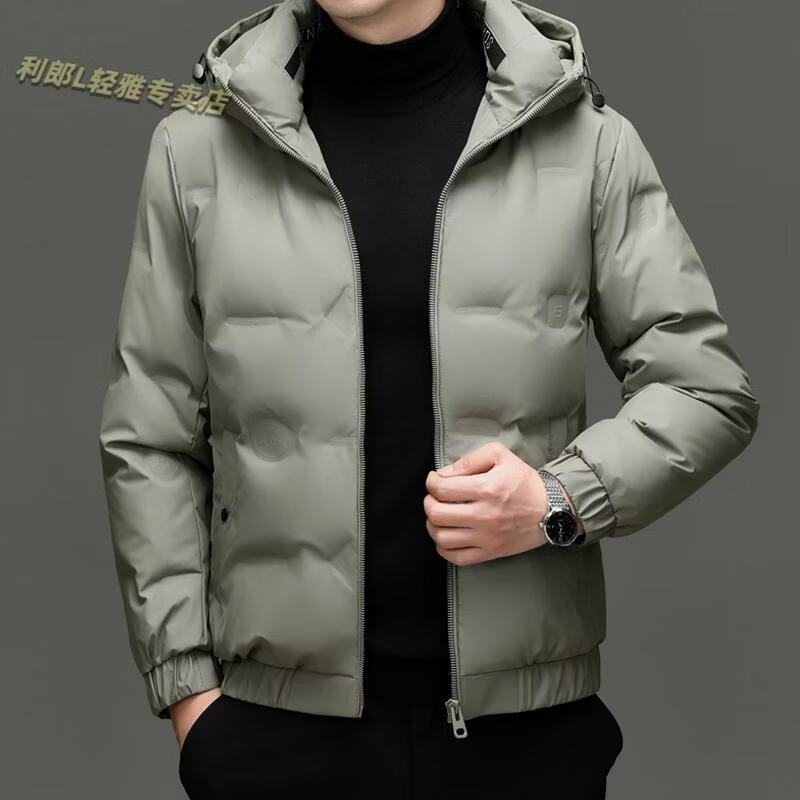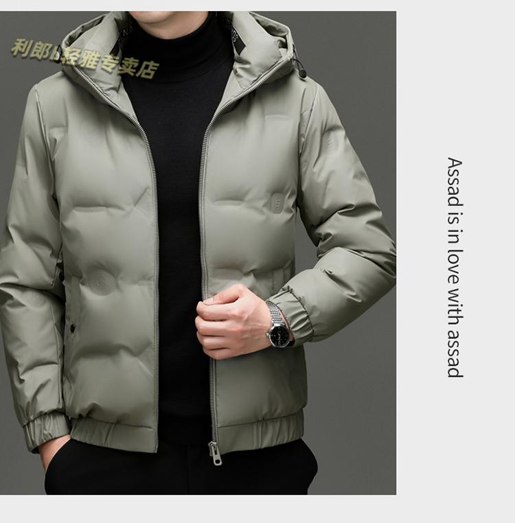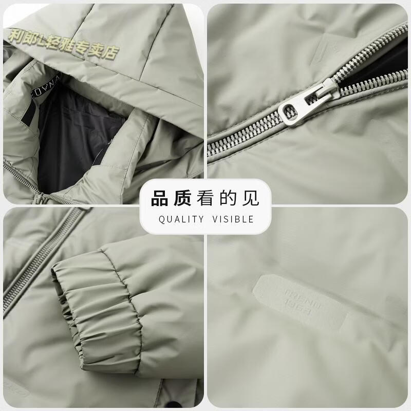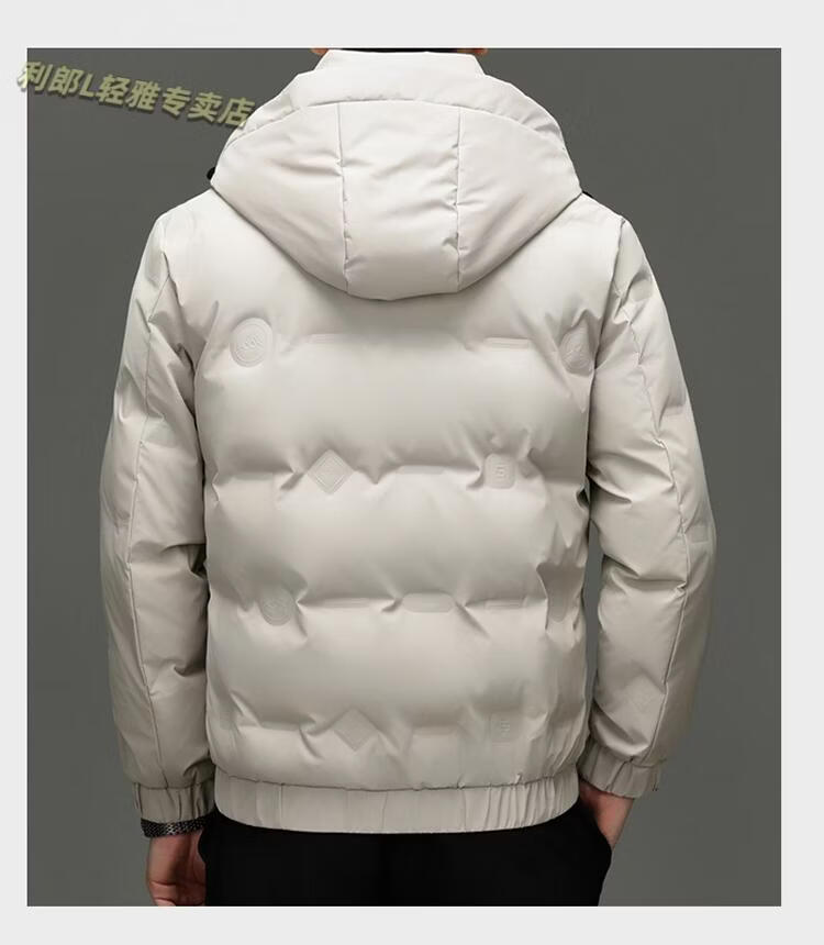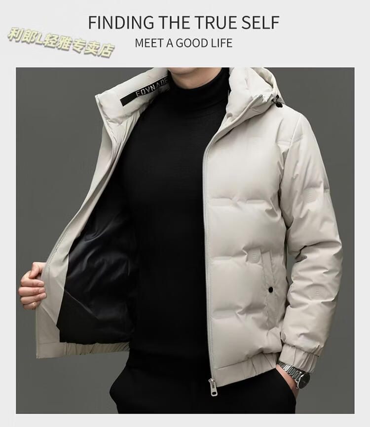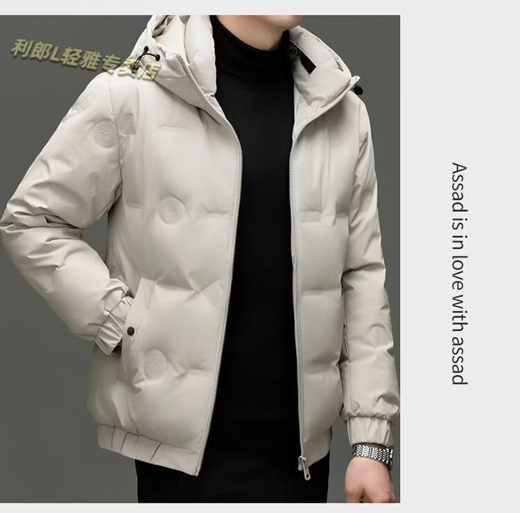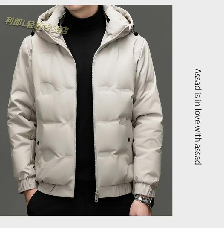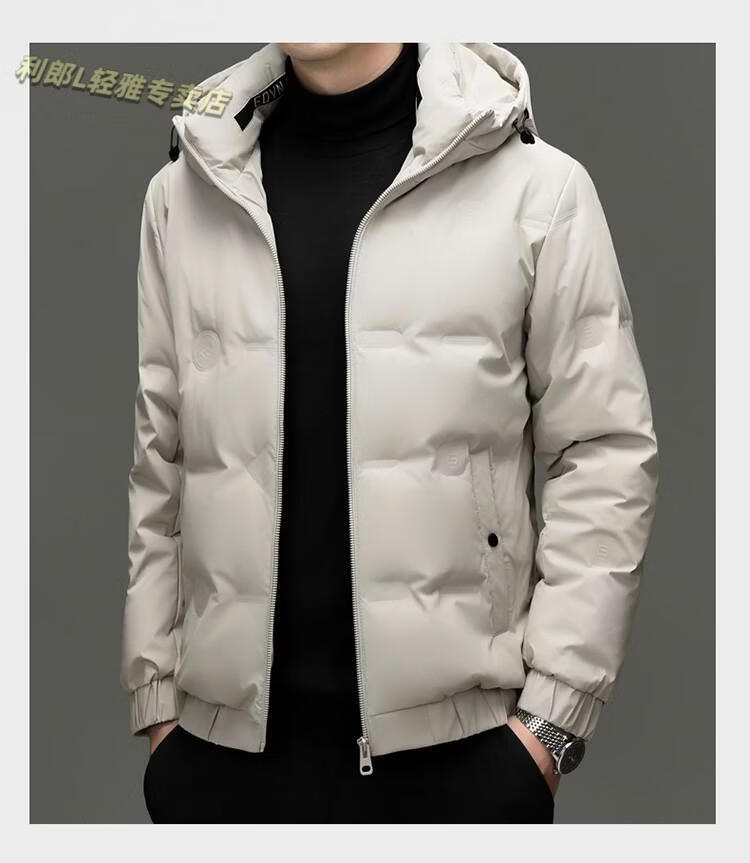 利郎(LILANZ)冬季连帽羽绒服男轻薄保暖防钻绒修身男装鸭绒外套短款休闲防寒服 米白色 4XL