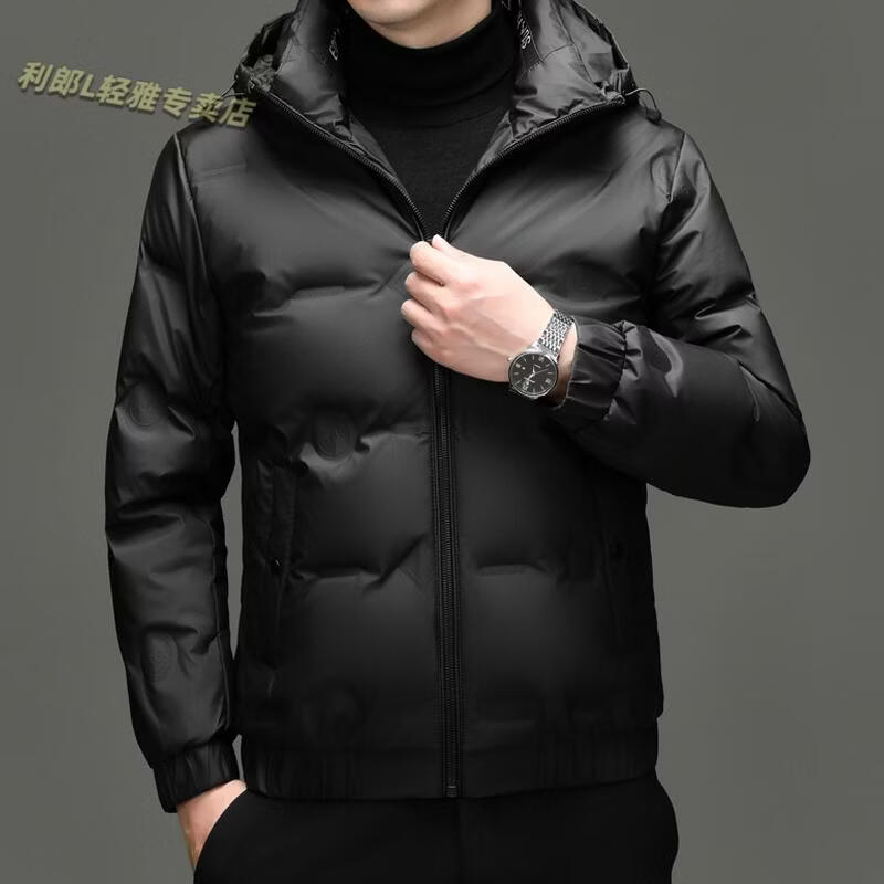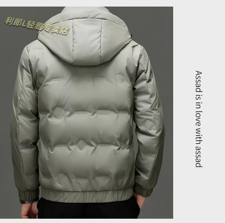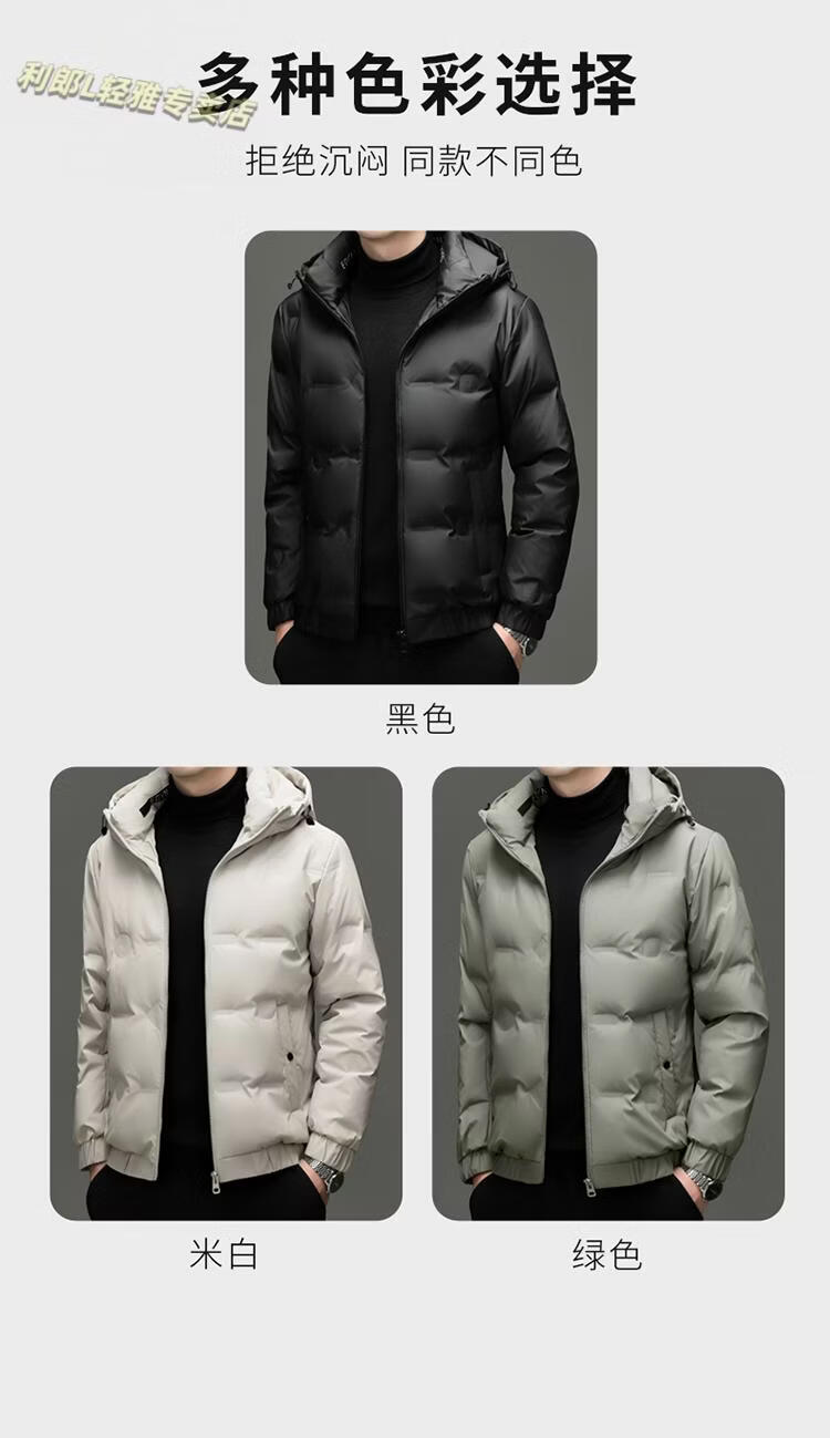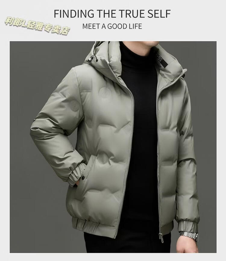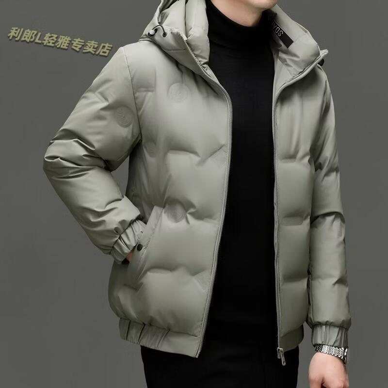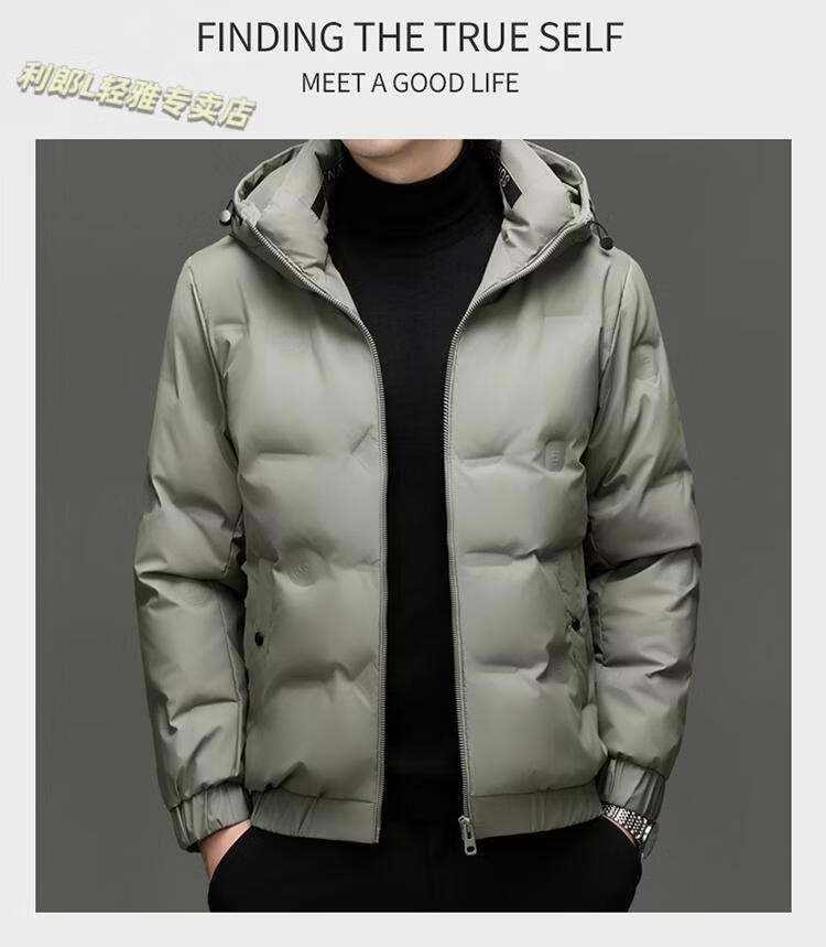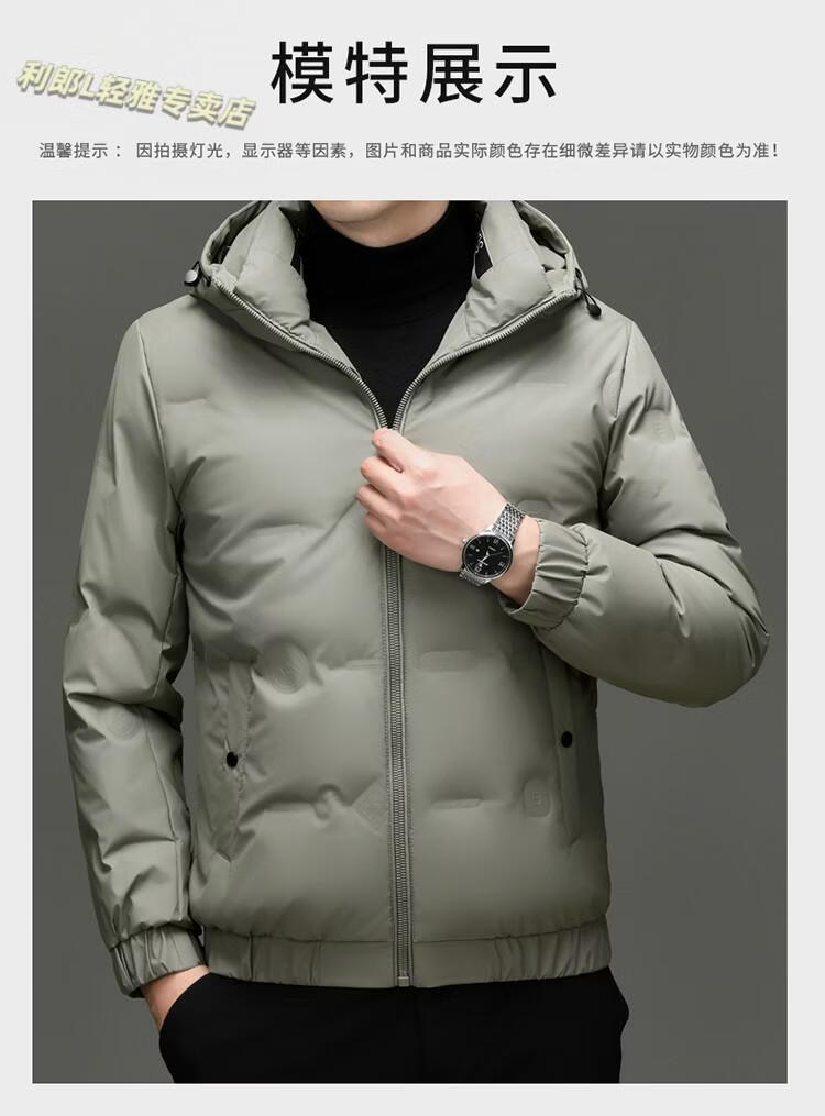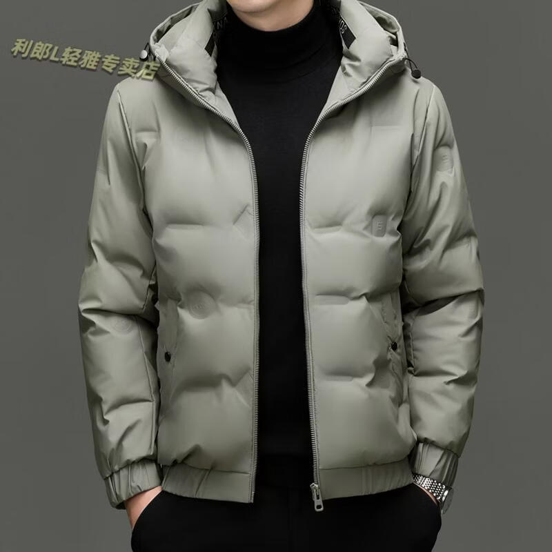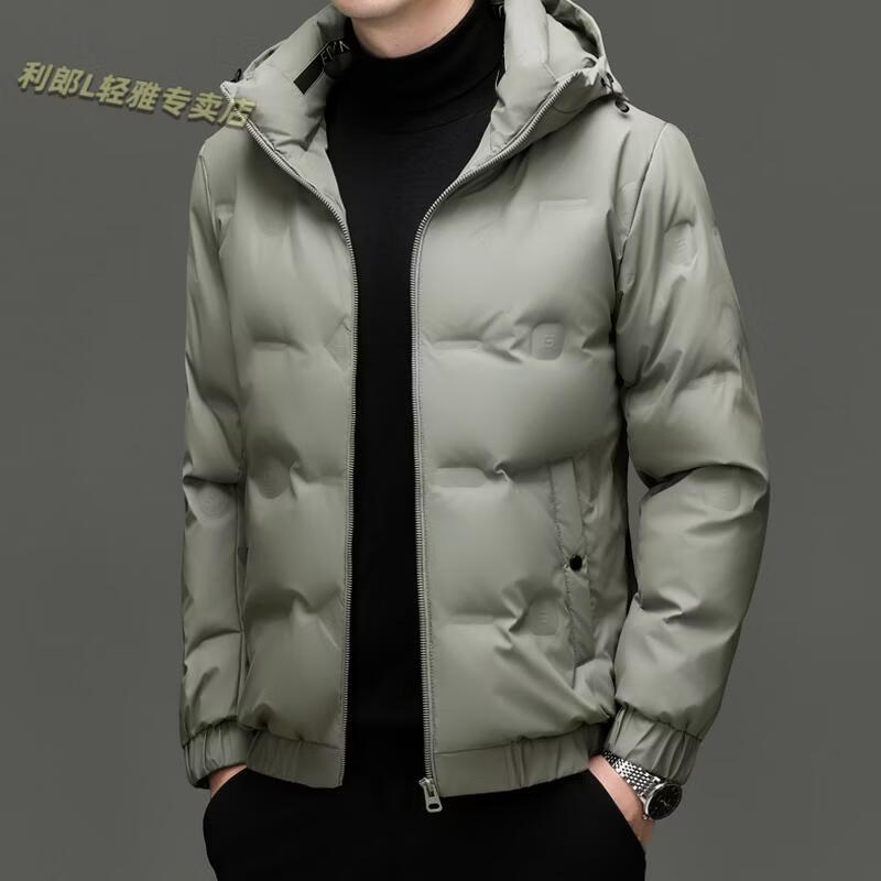 利郎(LILANZ)冬季连帽羽绒服男轻薄保暖防钻绒修身男装鸭绒外套短款休闲防寒服 米白色 4XL