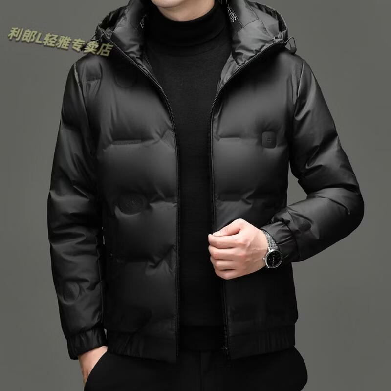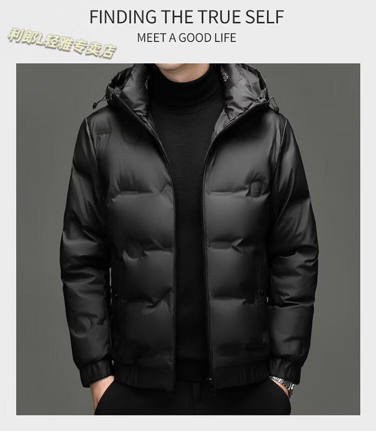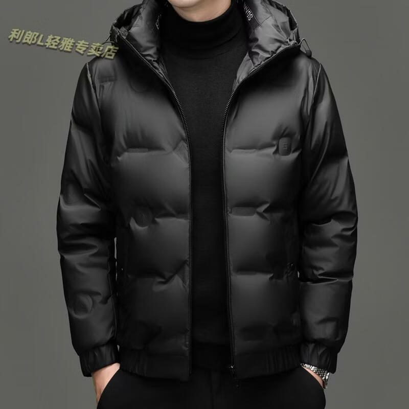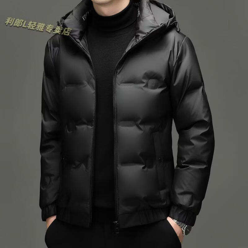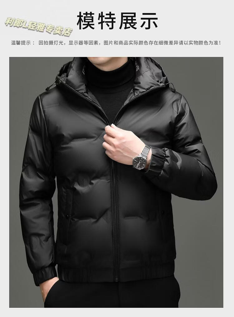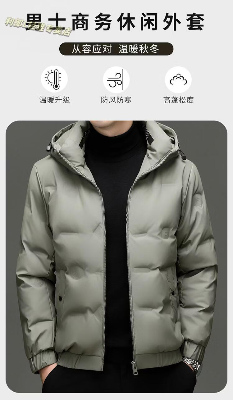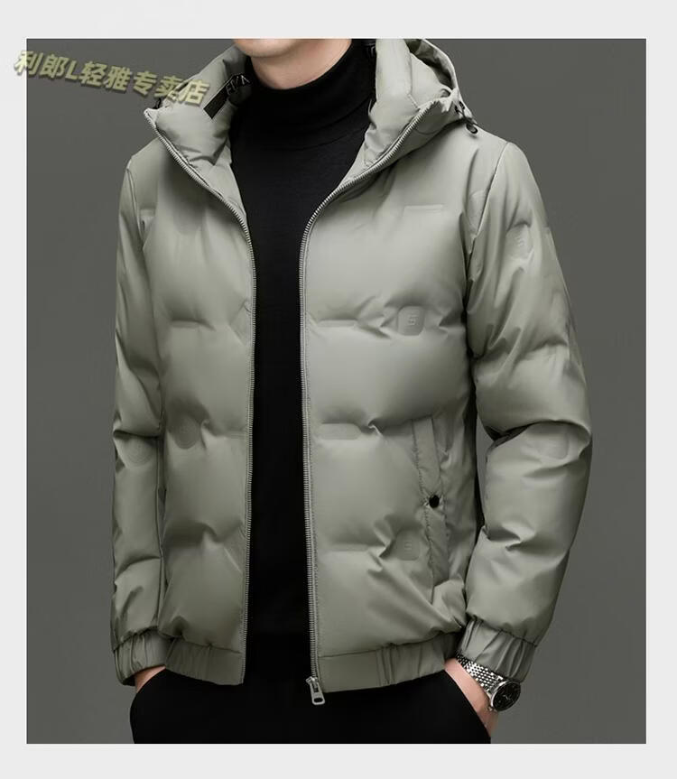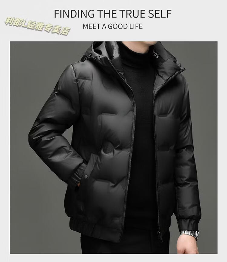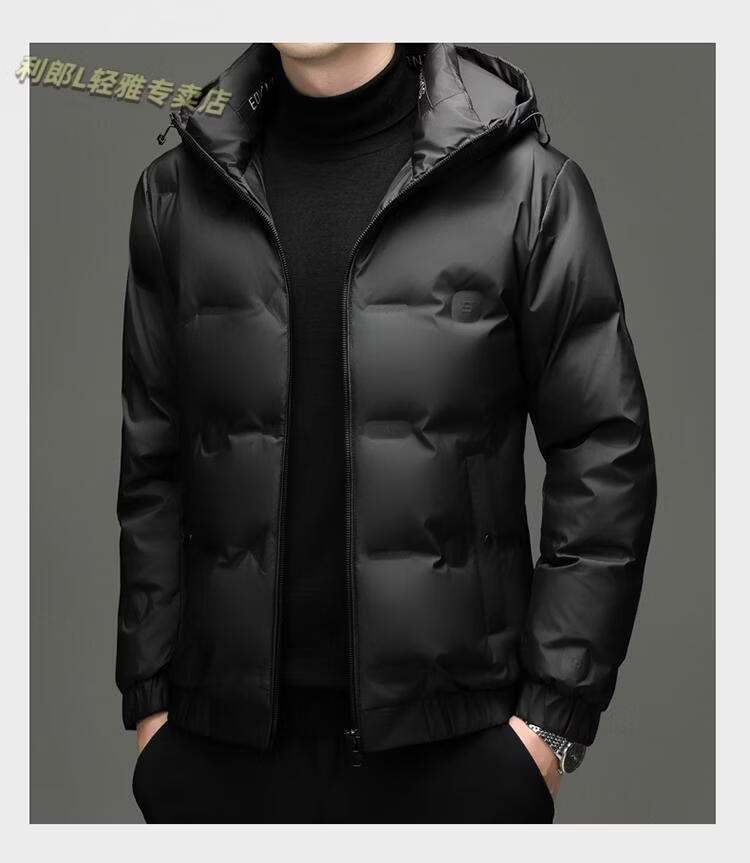 利郎(LILANZ)冬季连帽羽绒服男轻薄保暖防钻绒修身男装鸭绒外套短款休闲防寒服 米白色 4XL