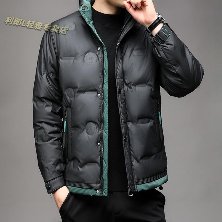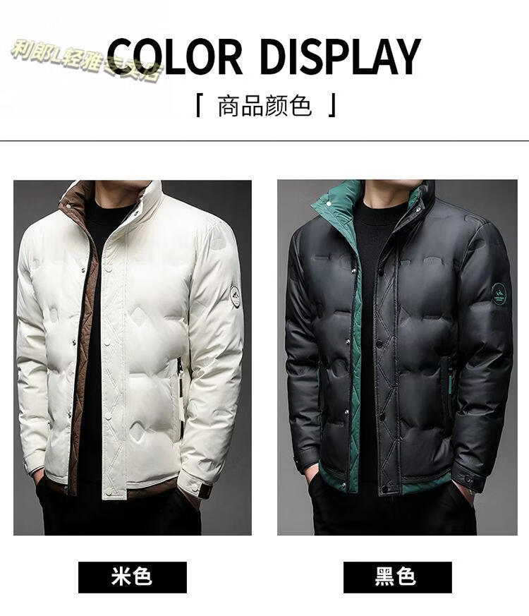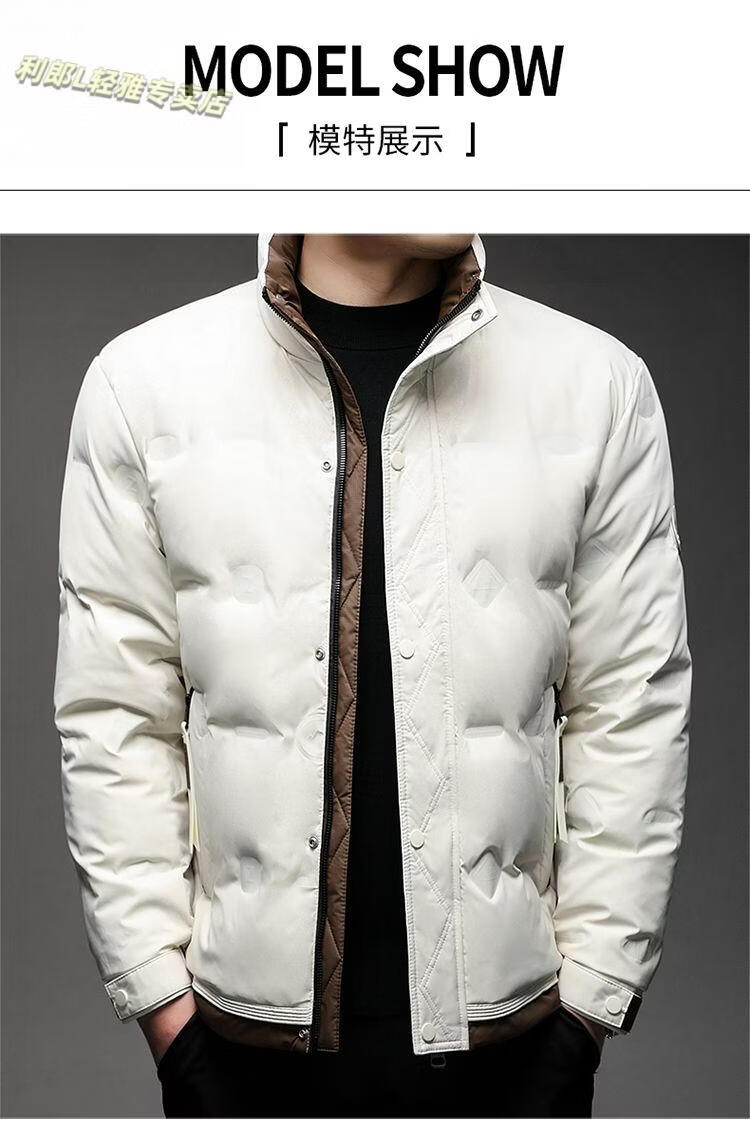 利郎(LILANZ)轻薄羽绒服男士冬季2026潮牌高端痞帅短款立领加厚保暖白鸭绒外套 黑色 M