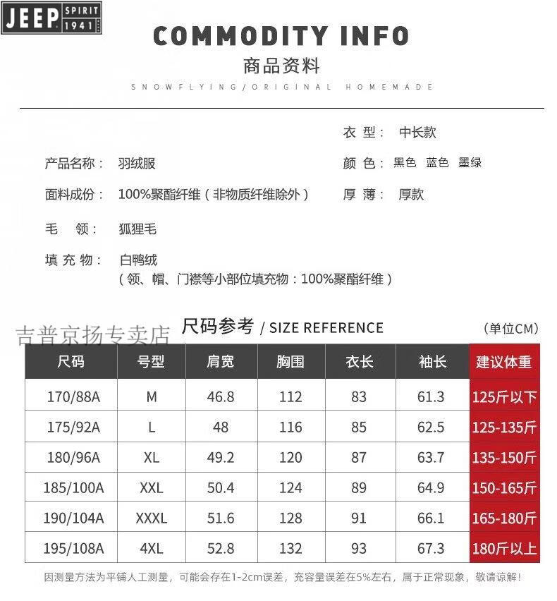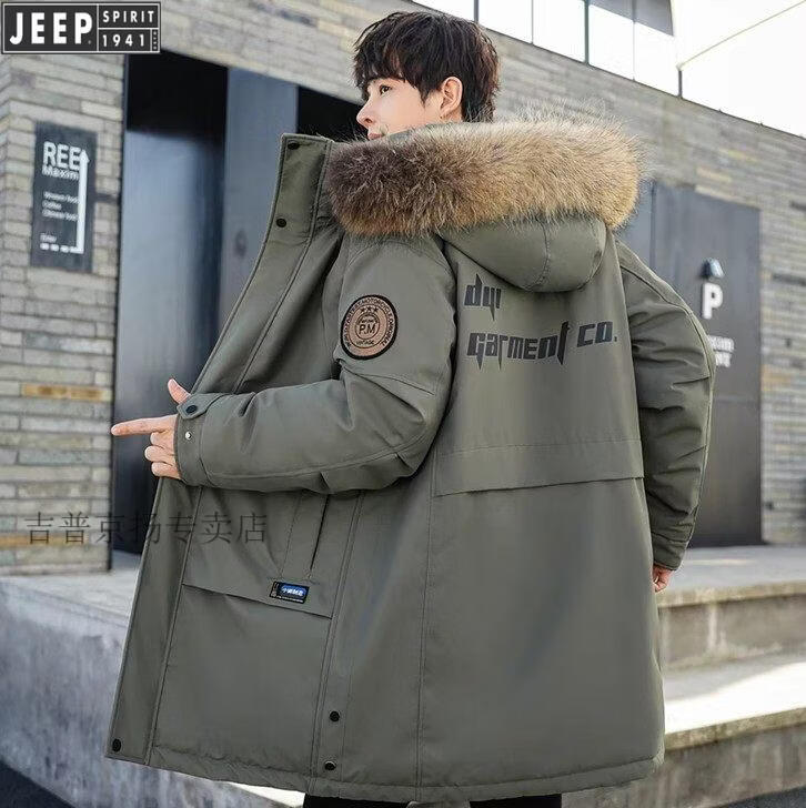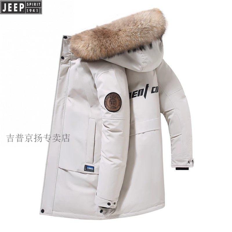 JEEP SPIRIT Пуховик средней длины Jeep международного бренда, мужская зимняя утепленная парка, рабочая одежда, повседневная непромокаемая теплая куртка 656 метров, белый PR L рекомендуется 125-135 Jin Jin равен 0,5 кг