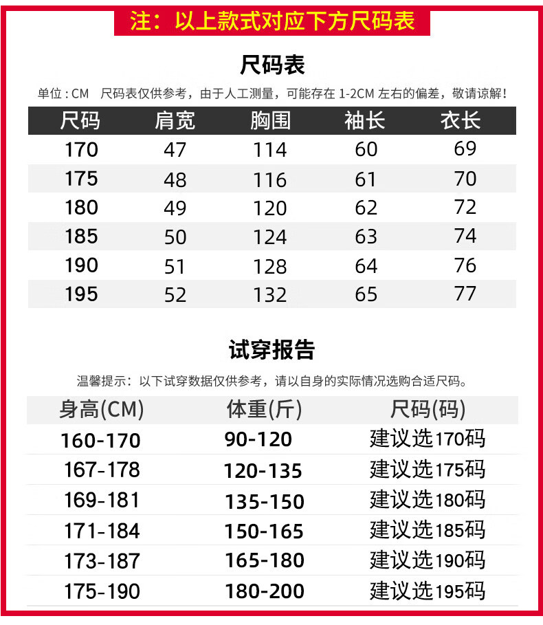 China (cm) 160-165/84-86 165-170 / 88-90 167-172 / 92-96 168-173 / 98-102 170-176 / 106-110