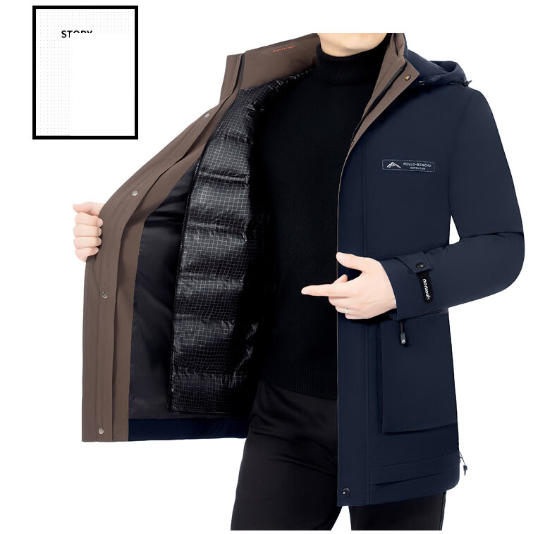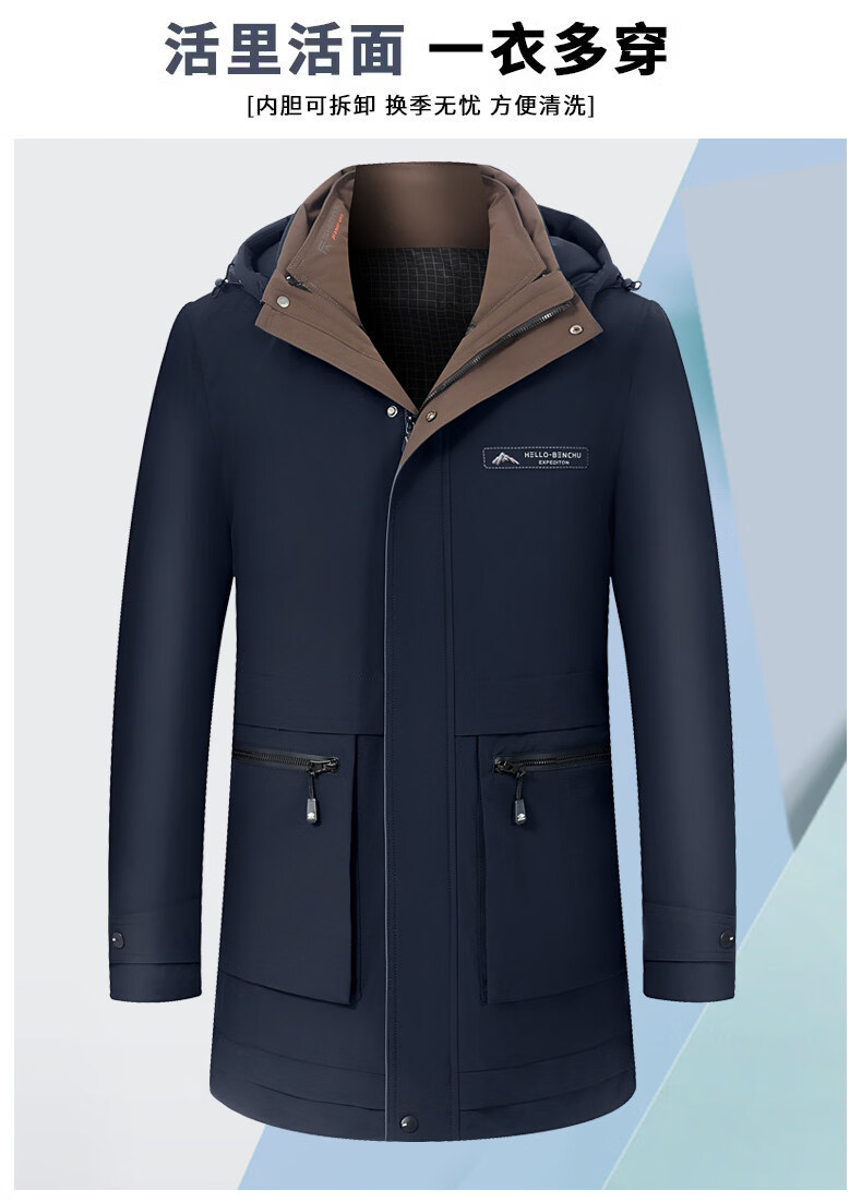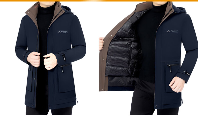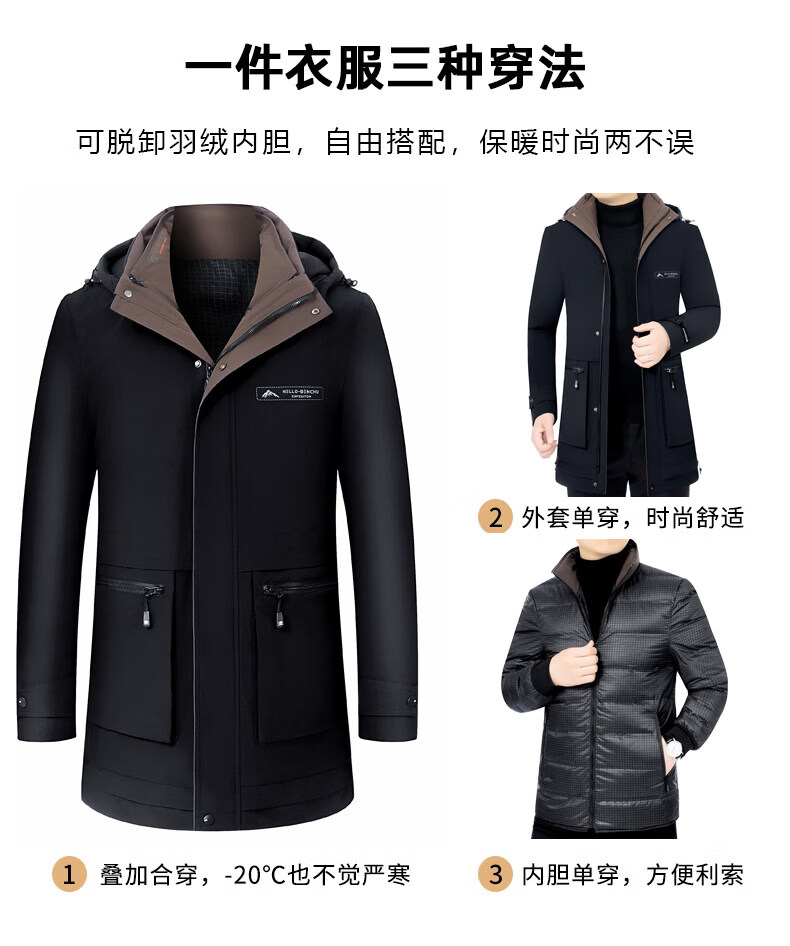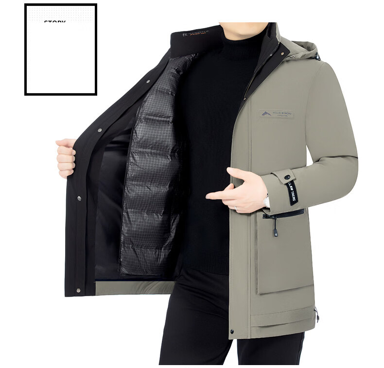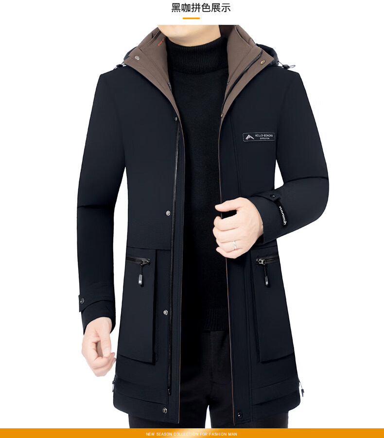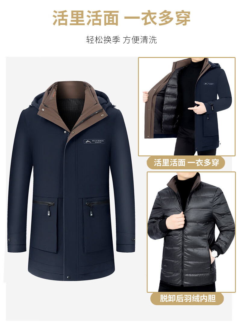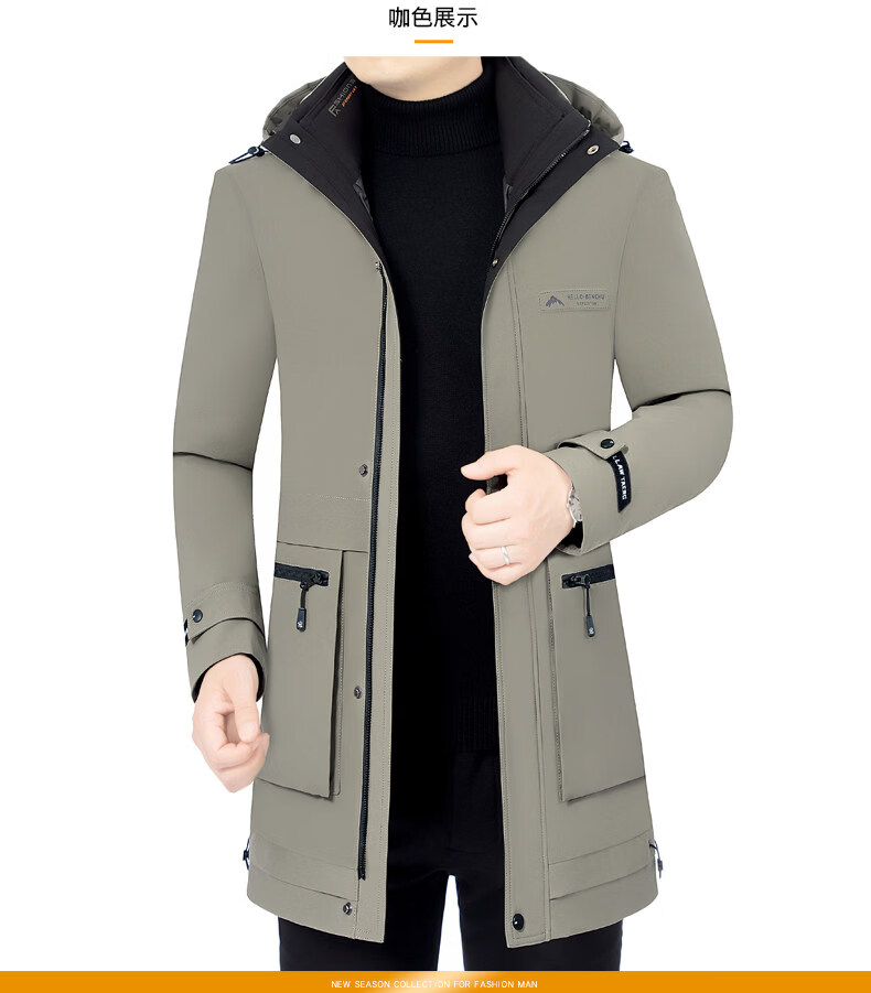 ROMON 2026 Новый мужской зимний пуховик средней длины, мужская осенне-зимняя куртка «три в одном» на гусином пуху для мужчин 6200 Зеленый кофейный L 175л