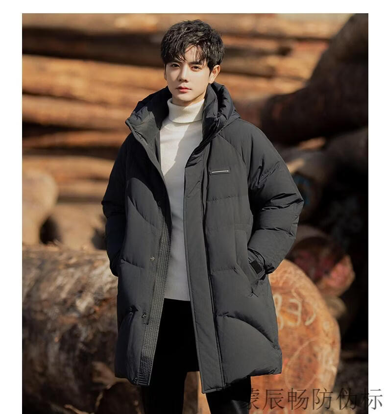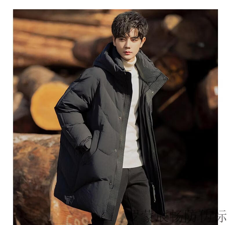罗蒙(ROMON)男子羽绒服冬季2026年新的中长连帽高端外套男生加厚保暖情侣外套 黑色 L (135-155斤)