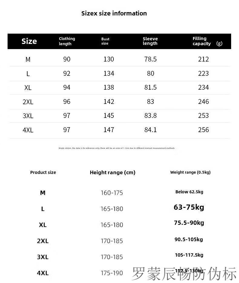 China (cm) 165 / 88-90 170 / 96-98 175 / 108-110 180 / 118-122 185 / 126-130