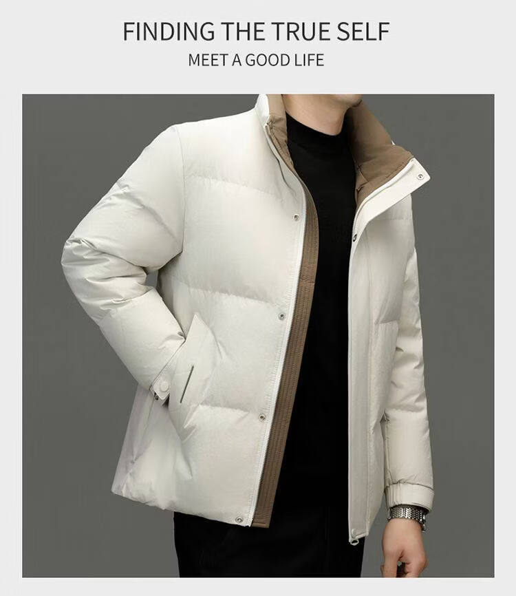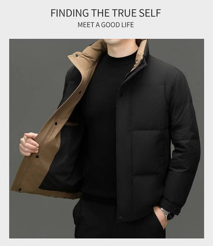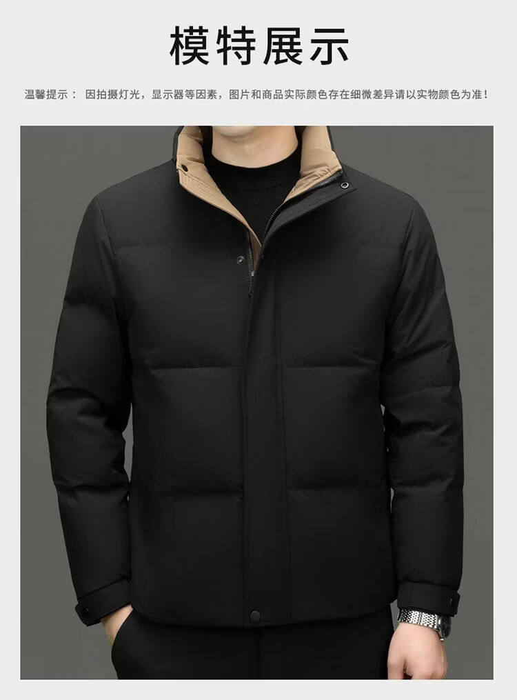 利郎商场同款男装立领羽绒服90白鸭绒加厚保暖冬季新款中青商务绅士外 宇宙黑 M 170