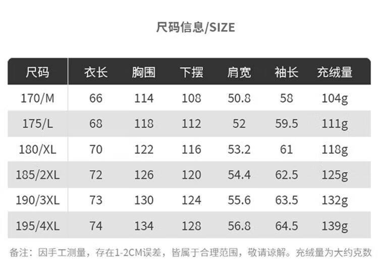 China (cm) 165 / 88-90 170 / 96-98 175 / 108-110 180 / 118-122 185 / 126-130