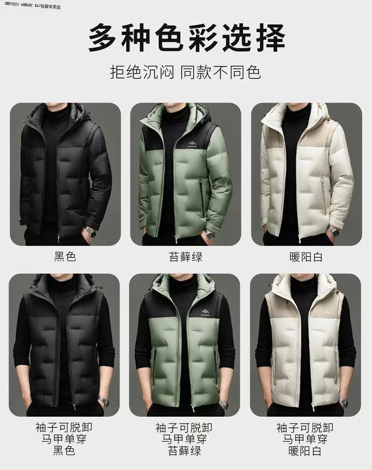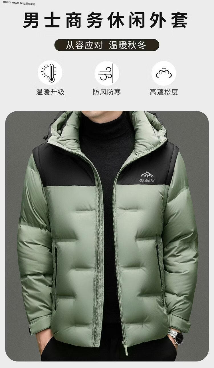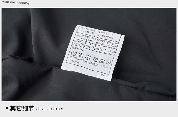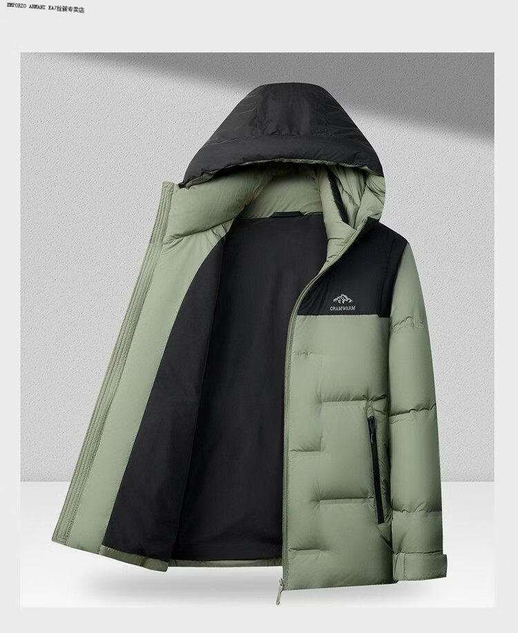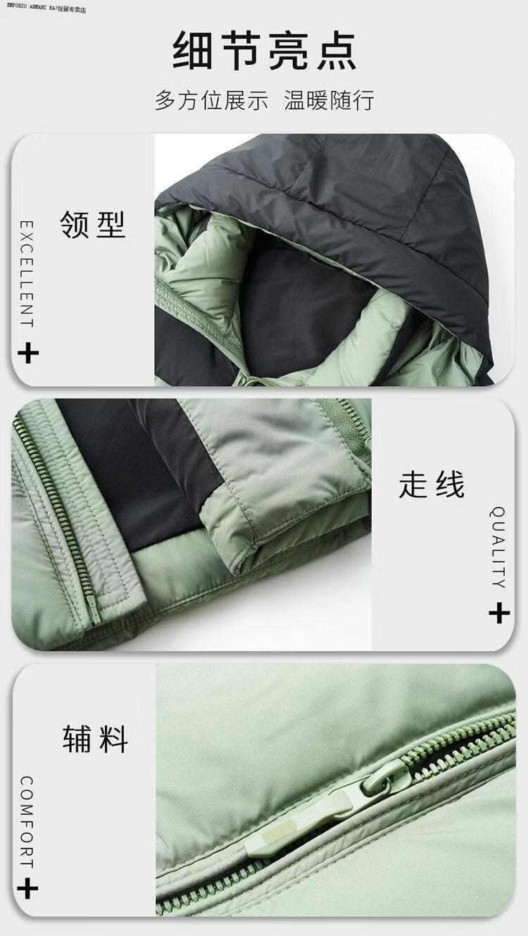 Emporio Armani EA7阿玛尼连帽羽绒服男款2026冬季新款男装休闲加厚保暖鸭绒外套男 黑色 M 170