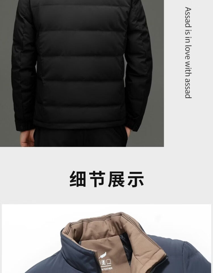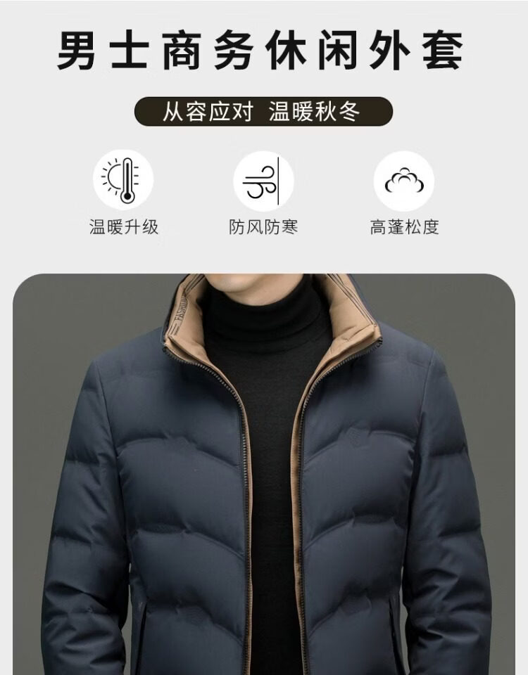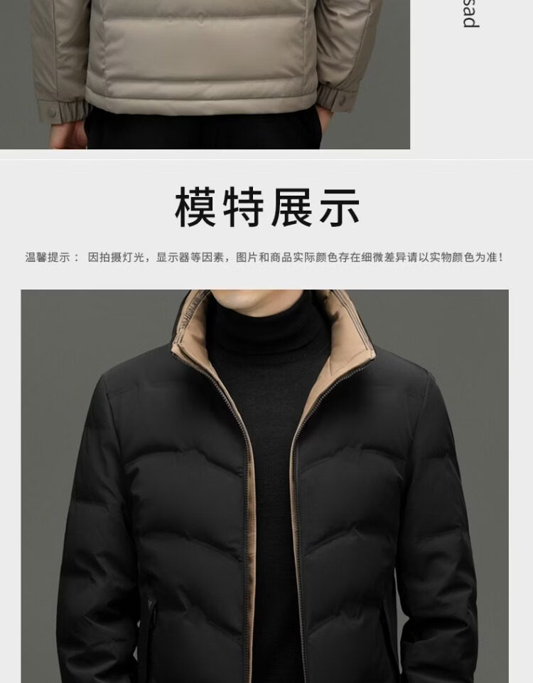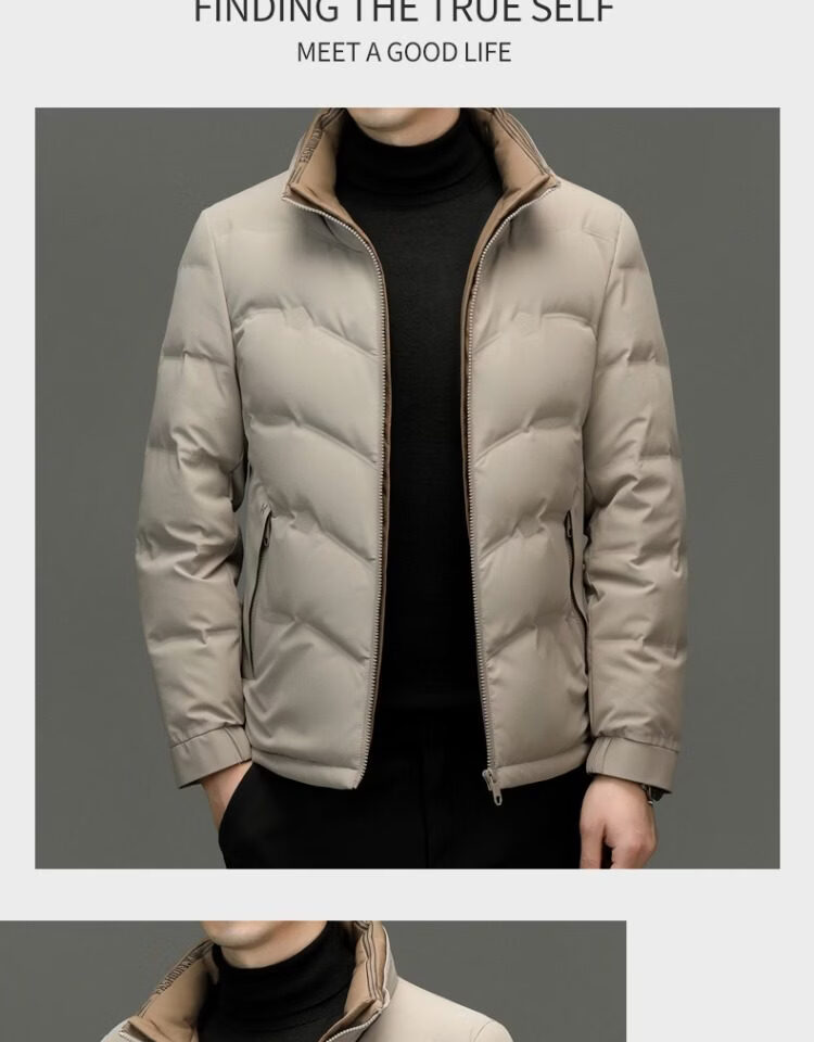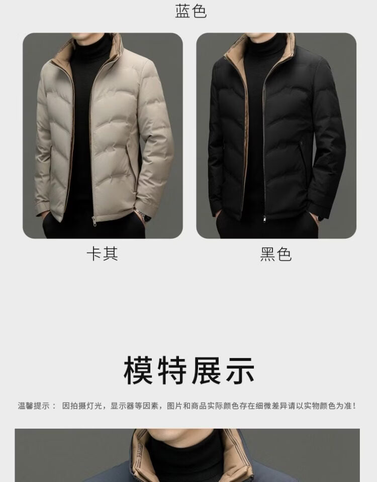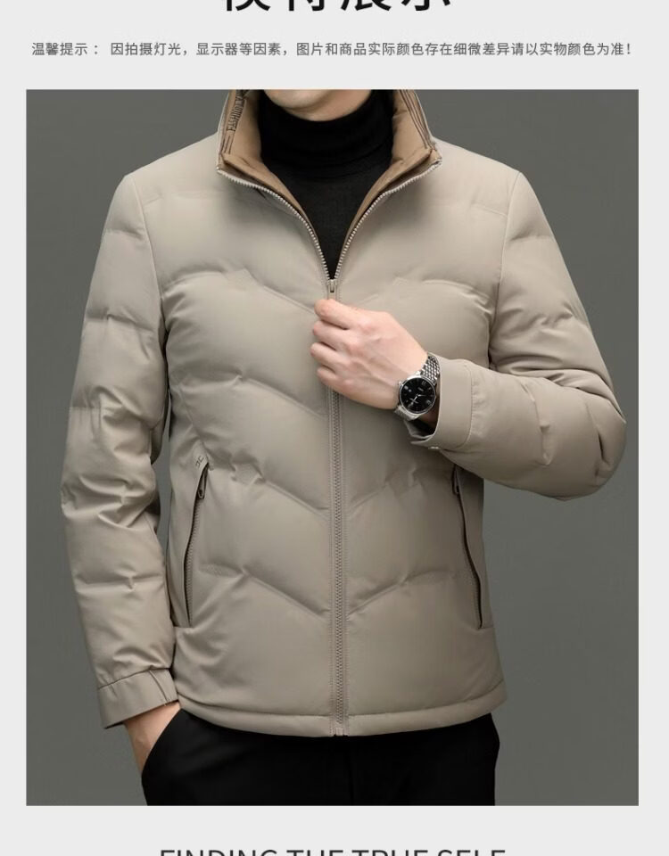 EMPORIO ARMANI Armani Winter Casual Lightweight Down Jacket Men's Stand Collar Thickened Warm Jacket Trendy Korean Men's Duck Down Khaki L 175 Suitable for 116-135 Jin Jin equals 0.5 kg