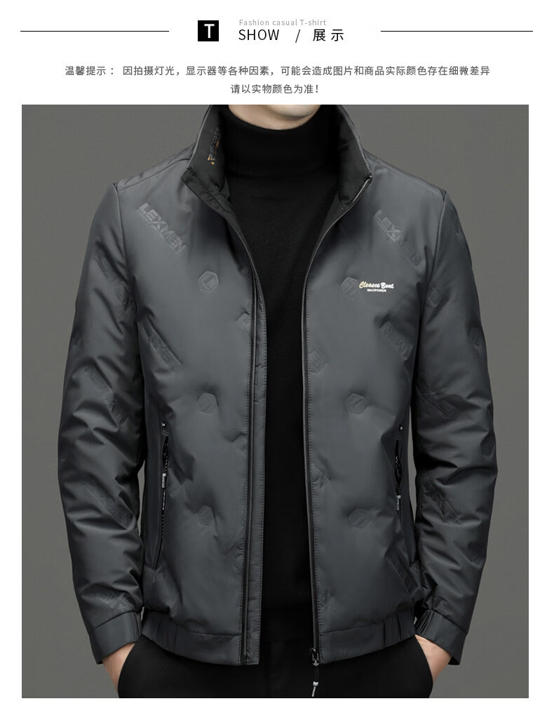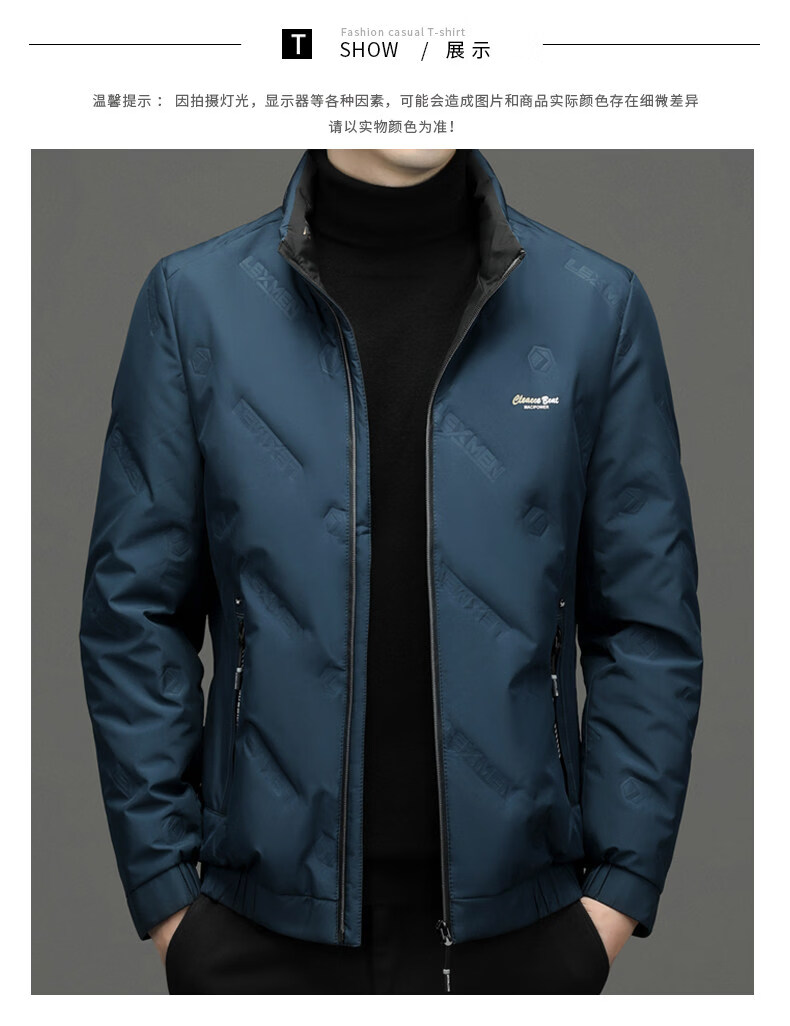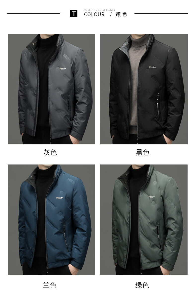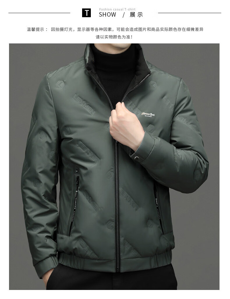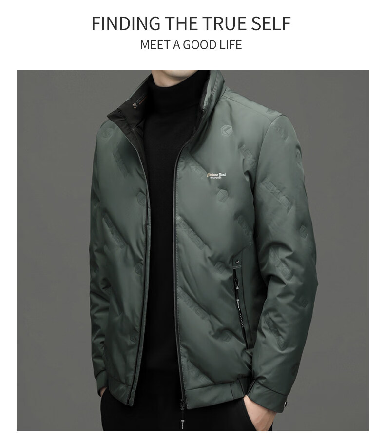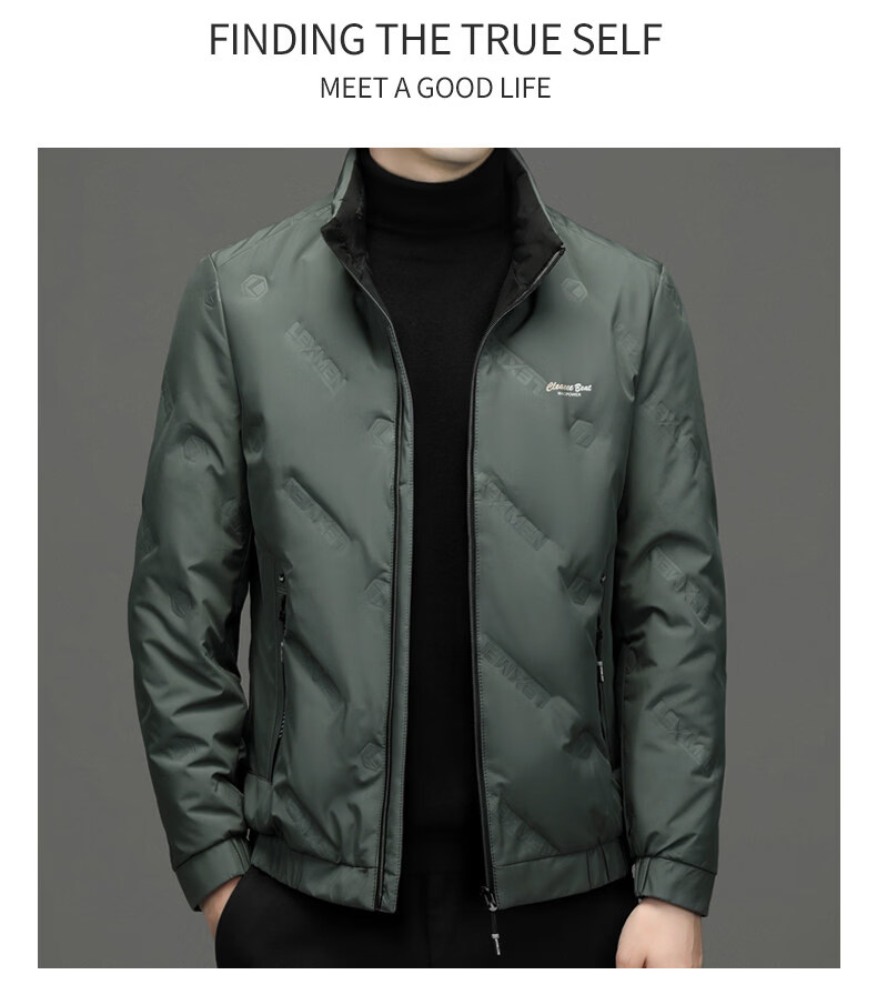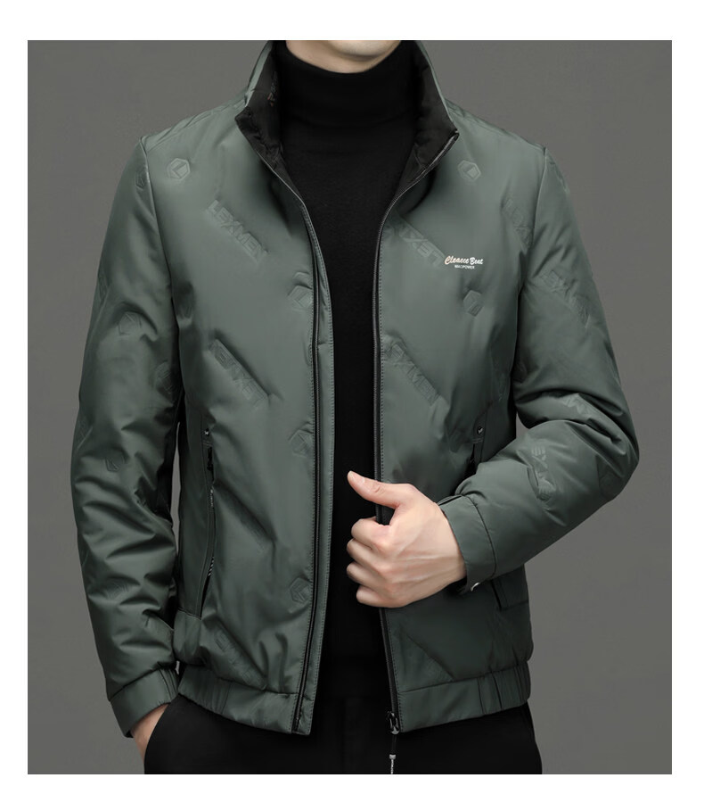 EMPORIO ARMANI阿玛尼羽绒服男士保暖立领上衣冬季新款男装商务休闲潮流白鸭绒轻 绿色 XL 180 建议体重130-150斤