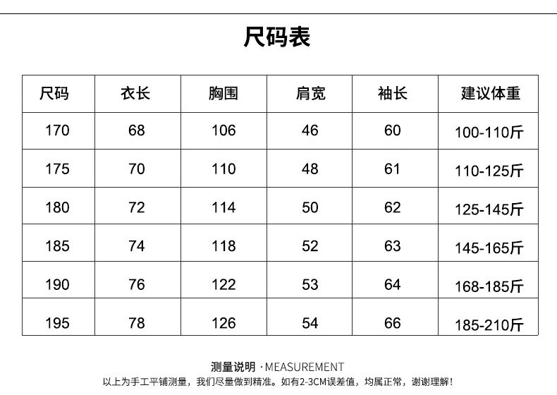 China (cm) 165 / 88-90 170 / 96-98 175 / 108-110 180 / 118-122 185 / 126-130
