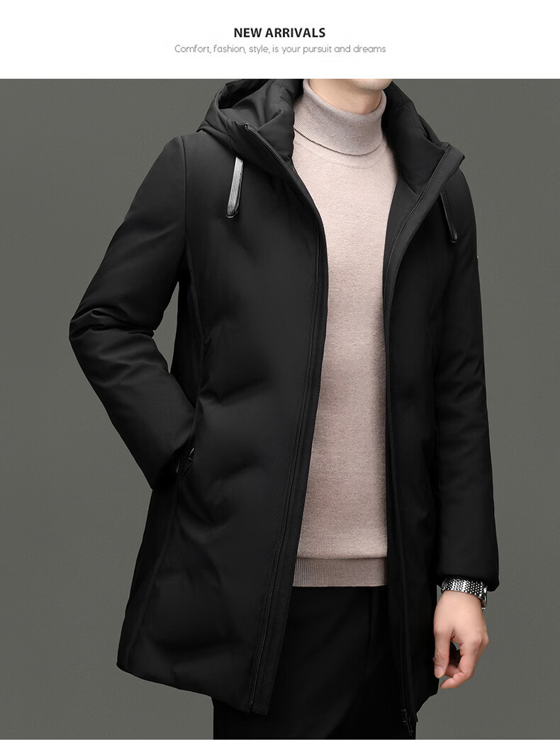 EMPORIO ARMANI阿玛尼高端羽绒服男2026秋冬季新款加厚防寒保暖男士外套中长款男 黑色 XL 180