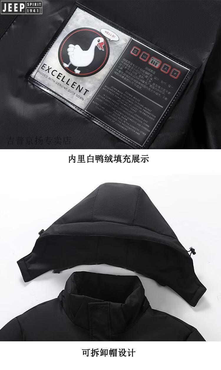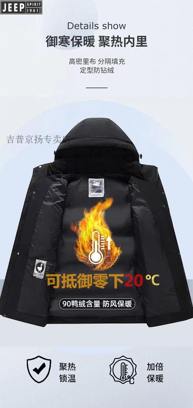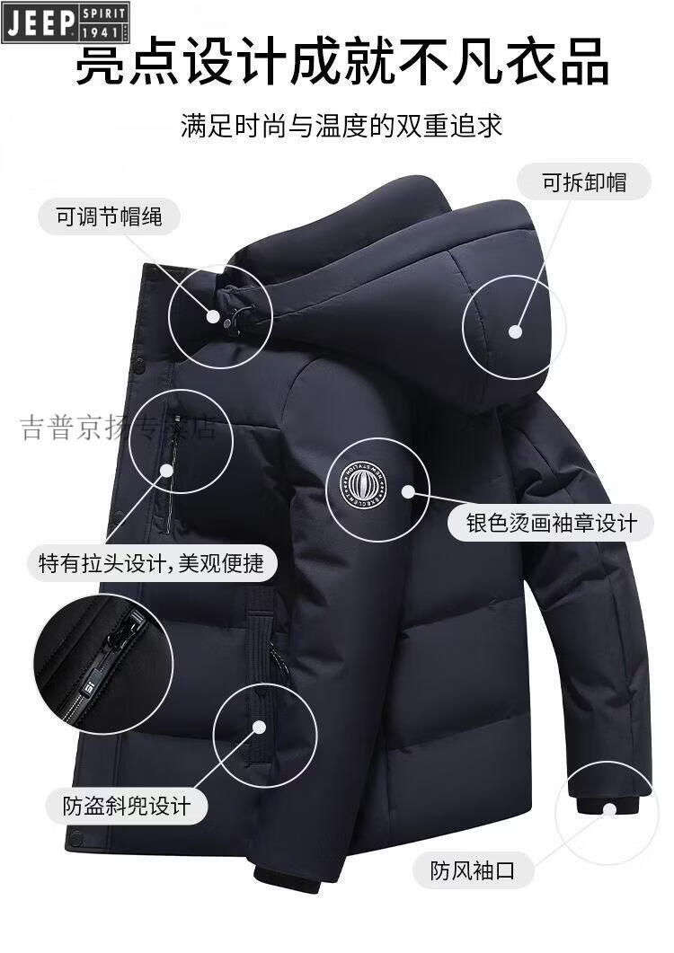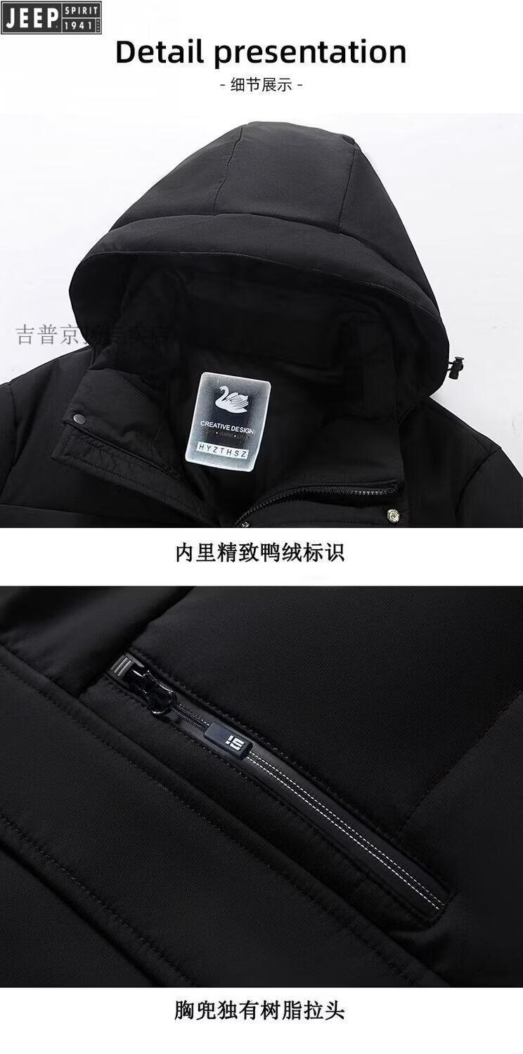 JEEP SPIRIT Jeep International Brand Men's Down Jacket Winter Thickened Removable Hood White Duck Down Warm Jacket Middle-aged Dad Black New National Standard 90 White Duck Down M Recommended 95-115 Jin Jin equals 0.5 kg