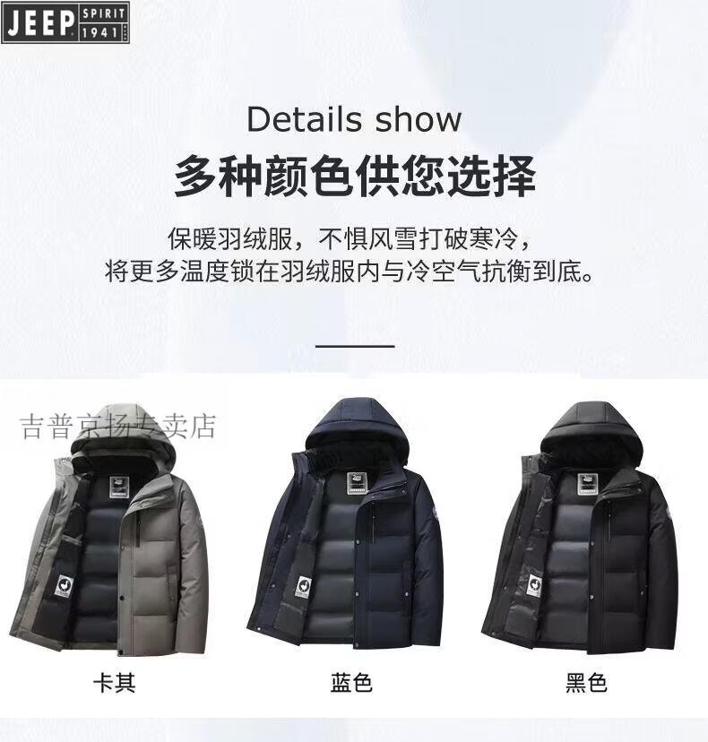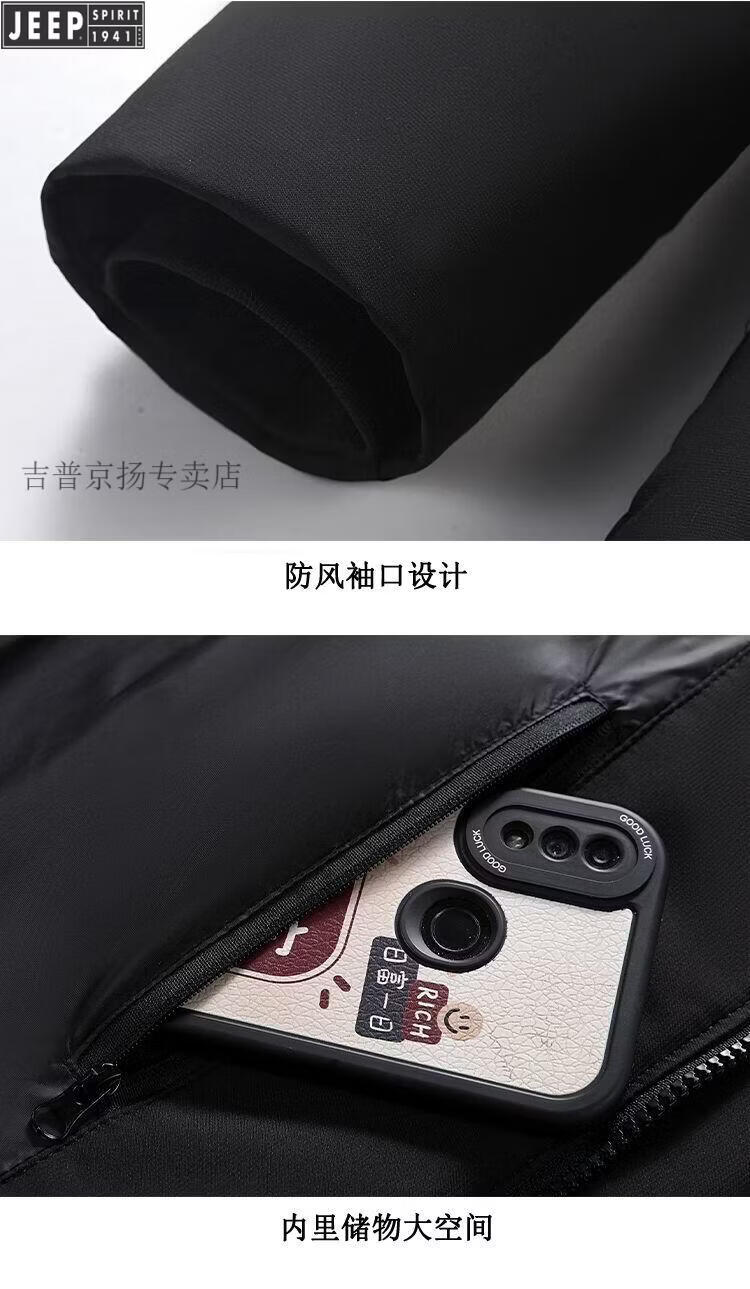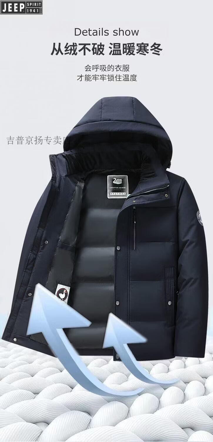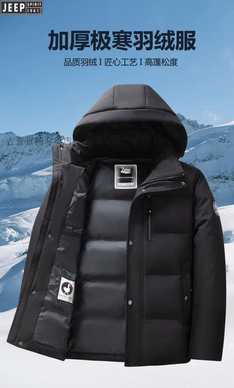 JEEP SPIRIT Jeep International Brand Men's Down Jacket Winter Thickened Removable Hood White Duck Down Warm Jacket Middle-aged Dad Black New National Standard 90 White Duck Down M Recommended 95-115 Jin Jin equals 0.5 kg