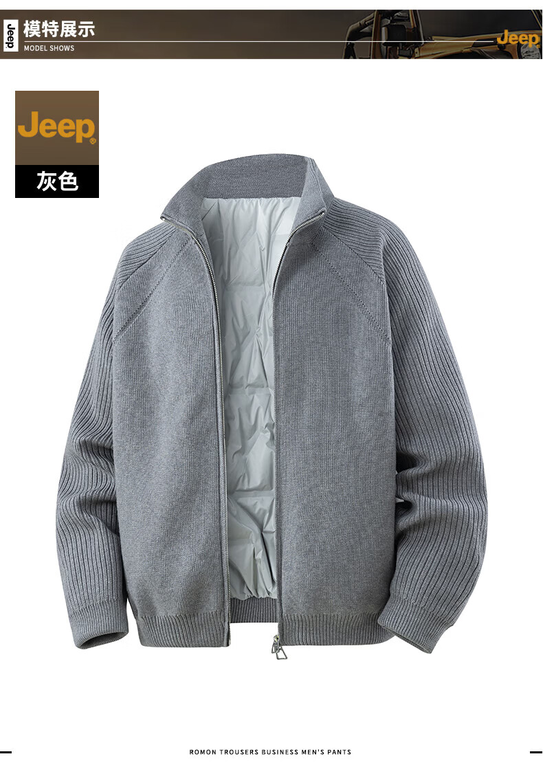 JEEP American genuine high-end lightweight knitted down jacket winter warm and cold-proof men's casual stand-up collar trendy jacket royal blue international big brand XL