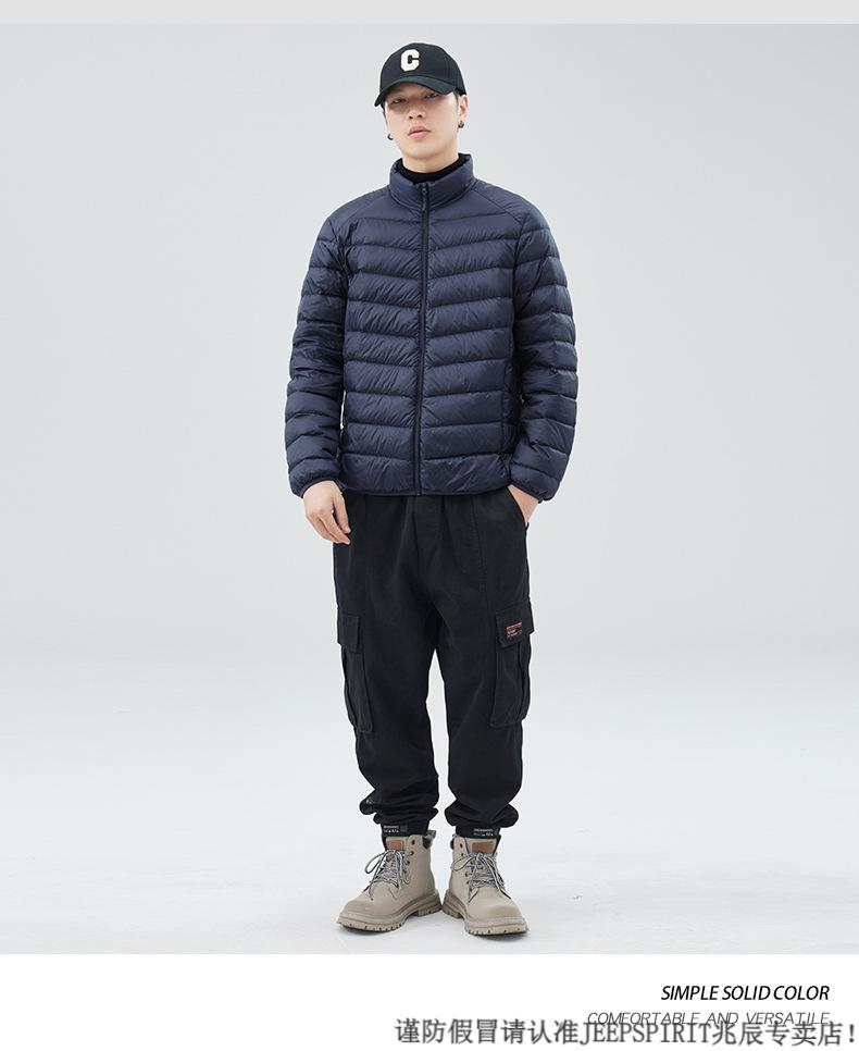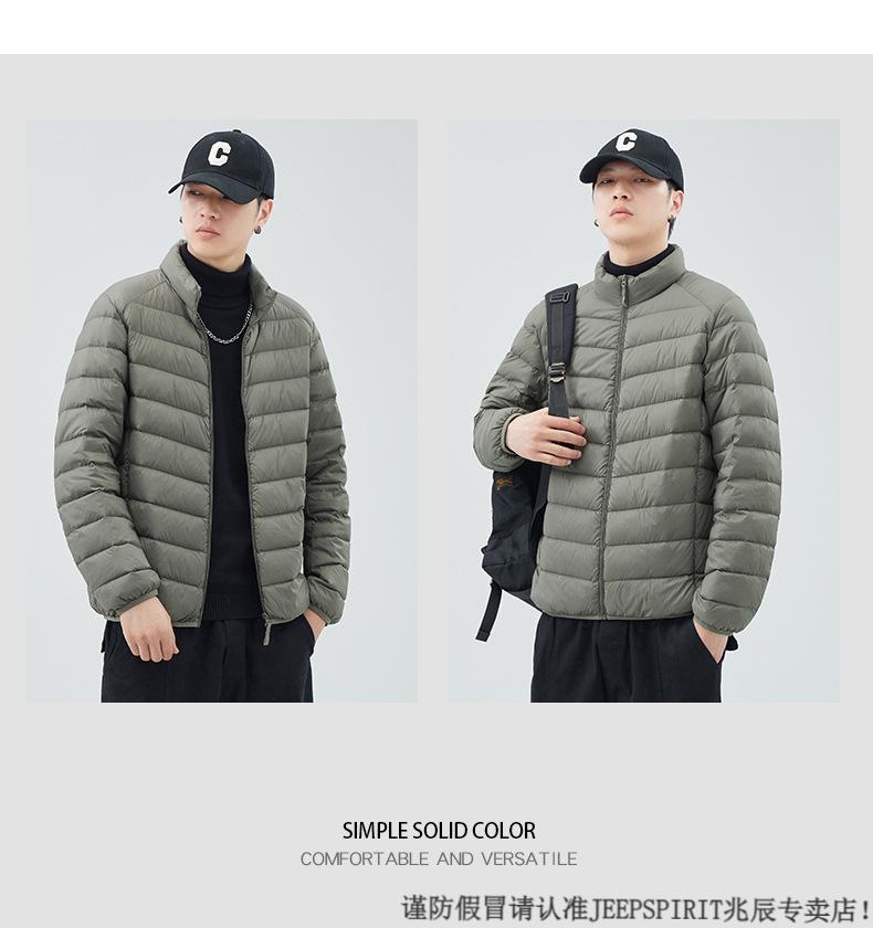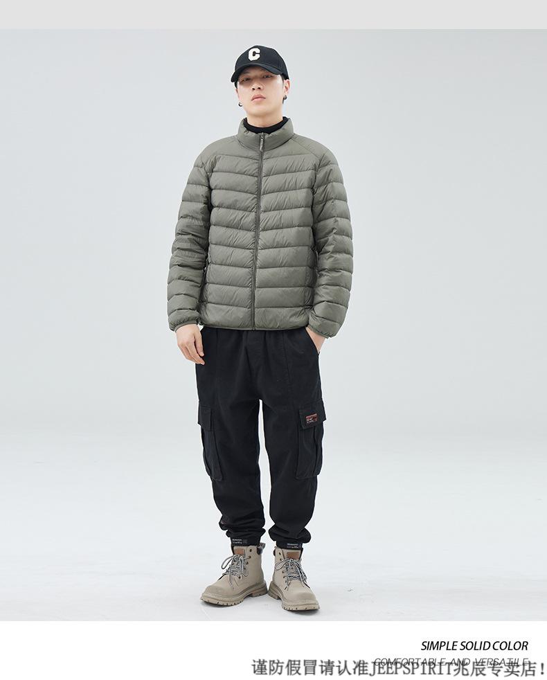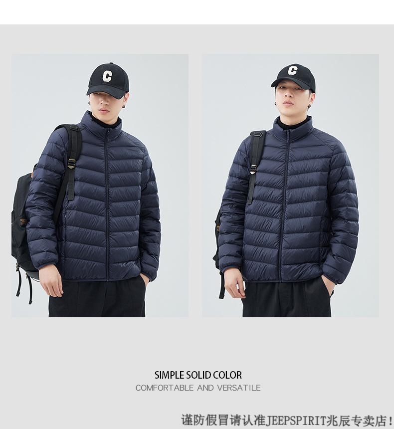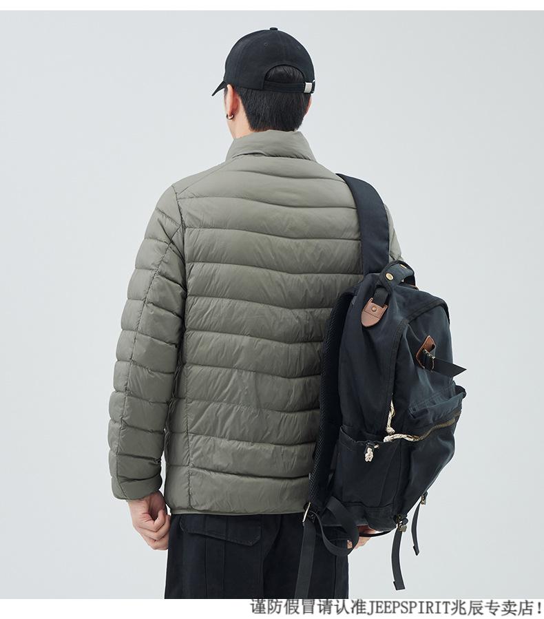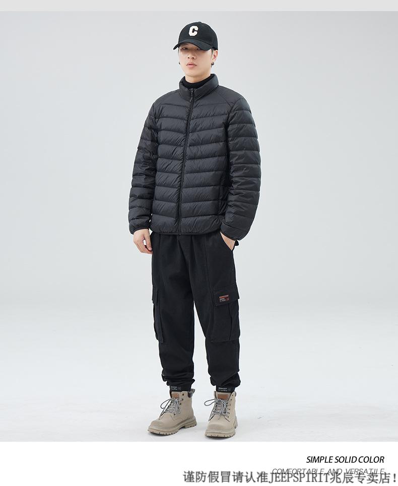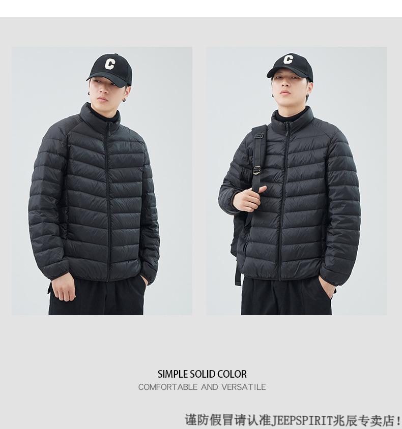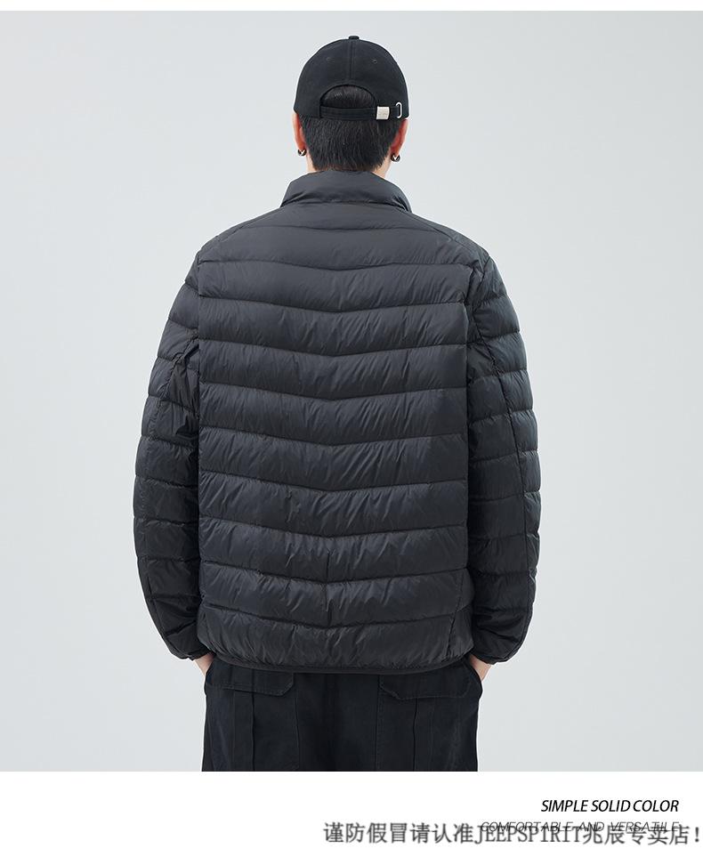 JEEP SPIRIT短款轻薄便携羽绒服男士2025冬季新款鸭绒立领保暖排骨内胆外套潮 黑色 M 适合90-110斤